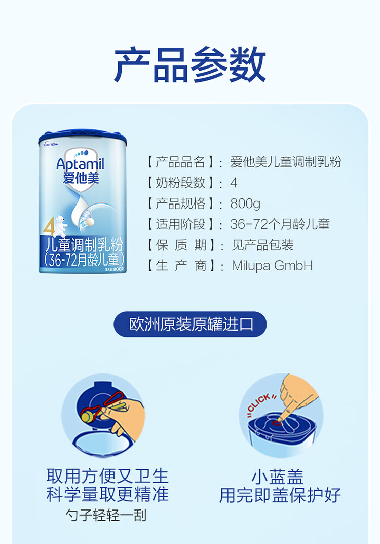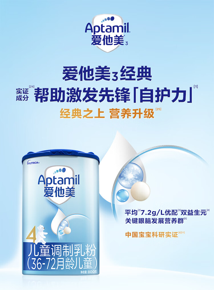 爱他美(Aptamil)新老国标随机发经典儿童奶粉调制乳粉(3-6岁)800g【优配益生元】