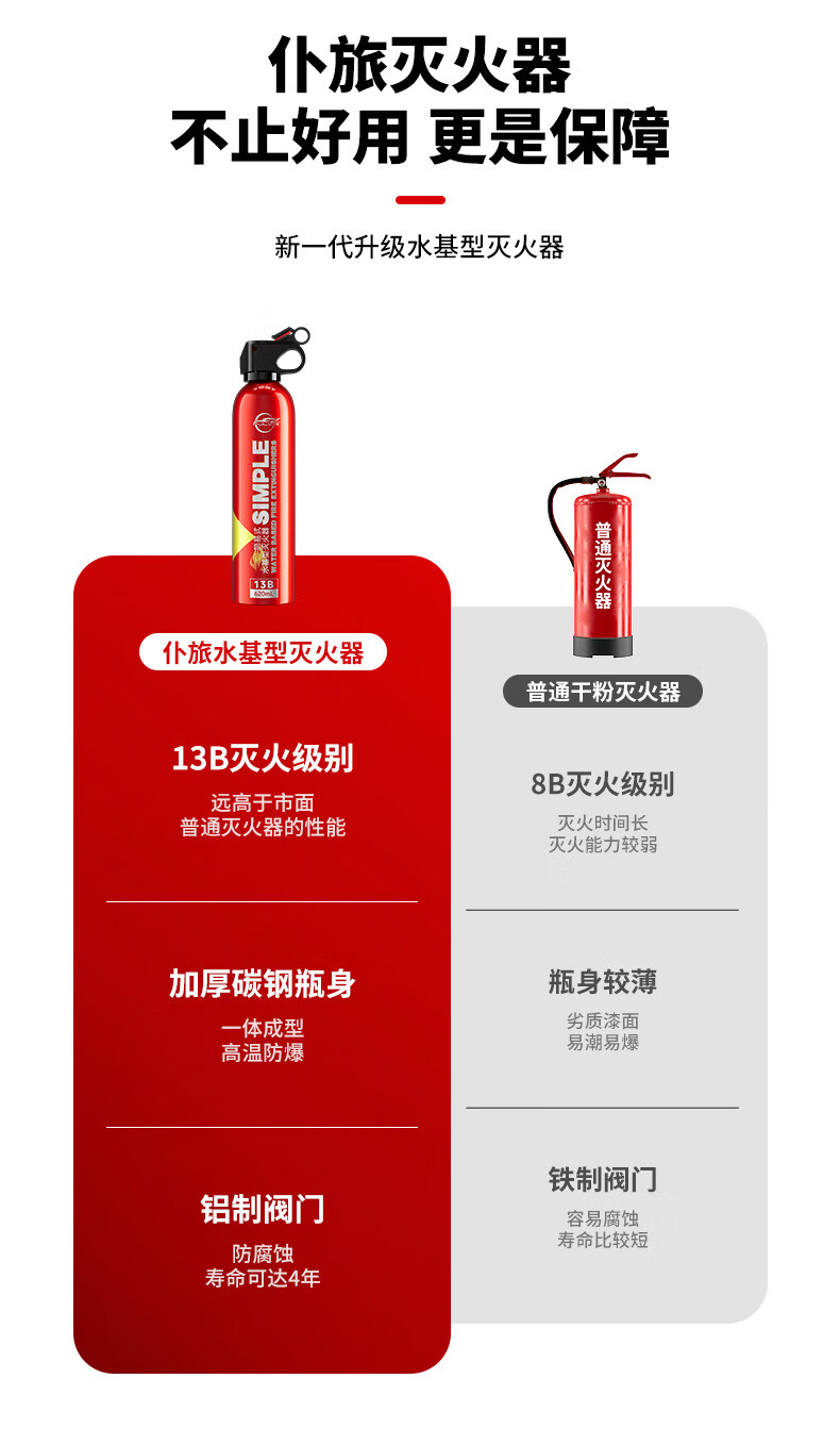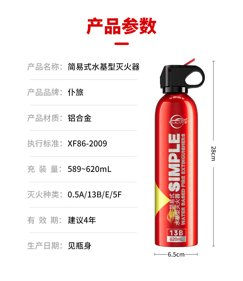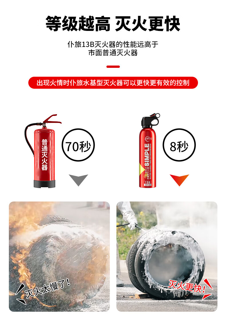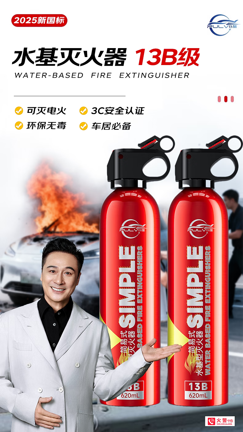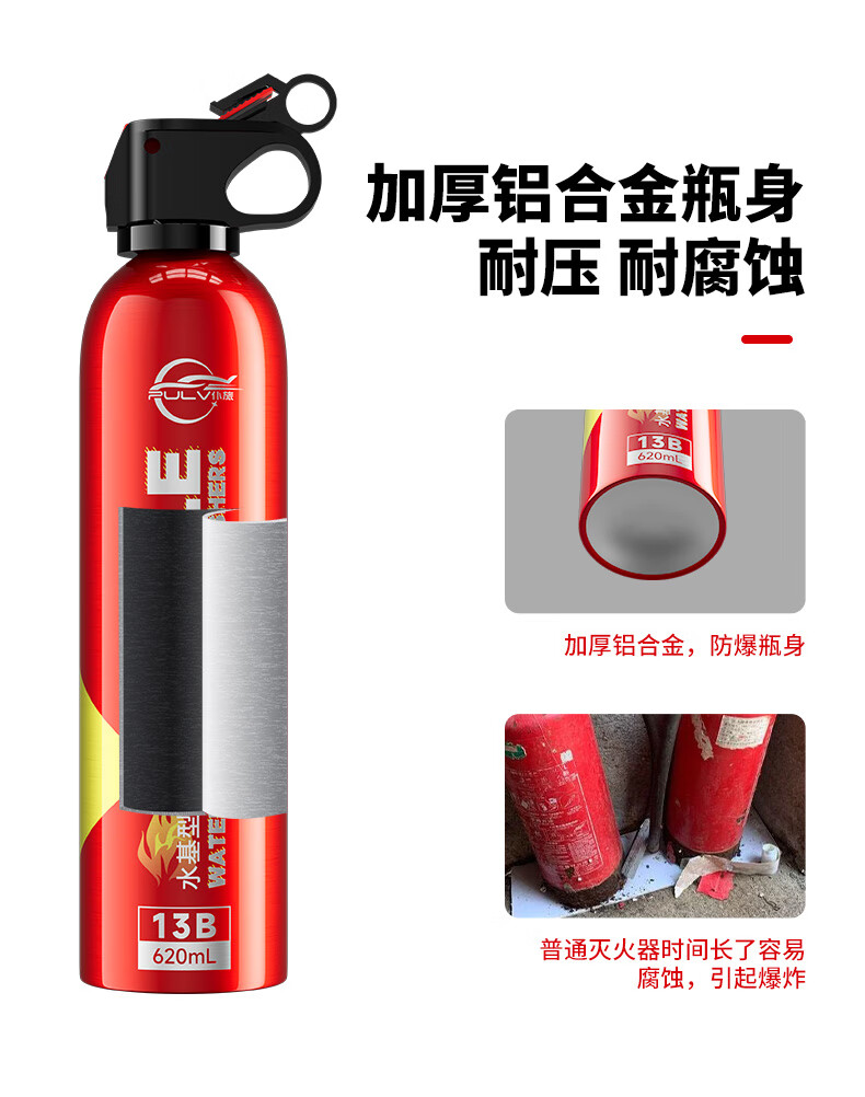 仆旅车载灭火器水基耐高温防爆小型便携式3c认证13B车家两用消防器材 620ml 水基 2瓶【防高温必备装】