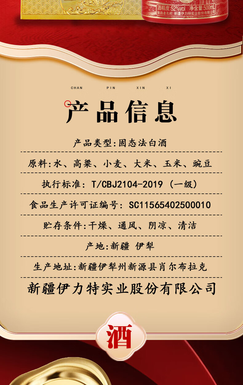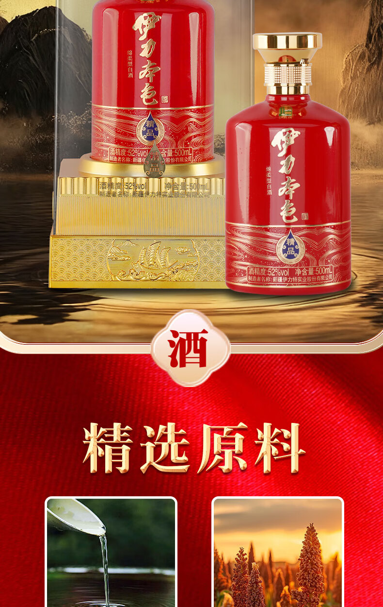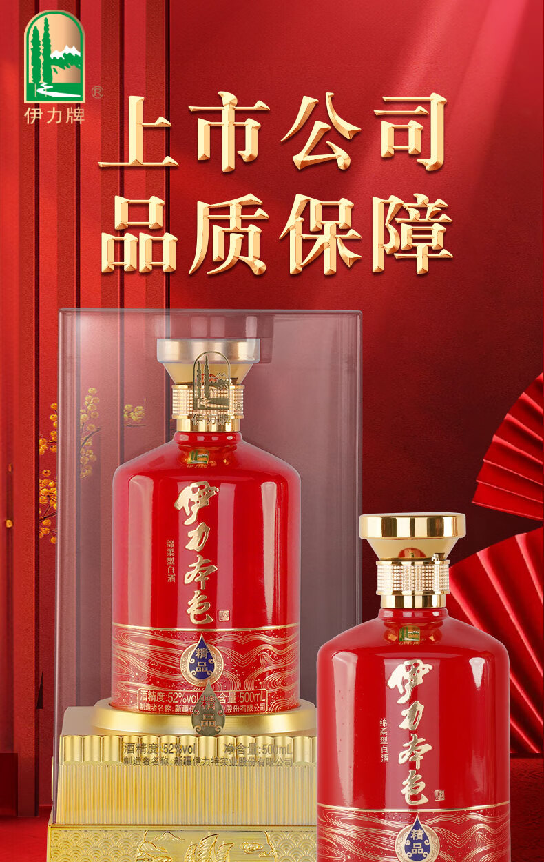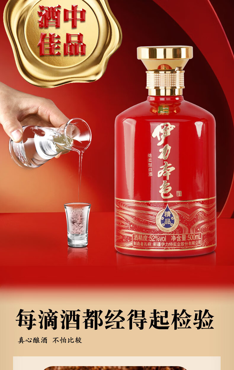 伊力牌新疆伊力特 酒厂直销 新疆发货 纯粮酿造 绵柔型 52度 500mL 6瓶 精品 整箱