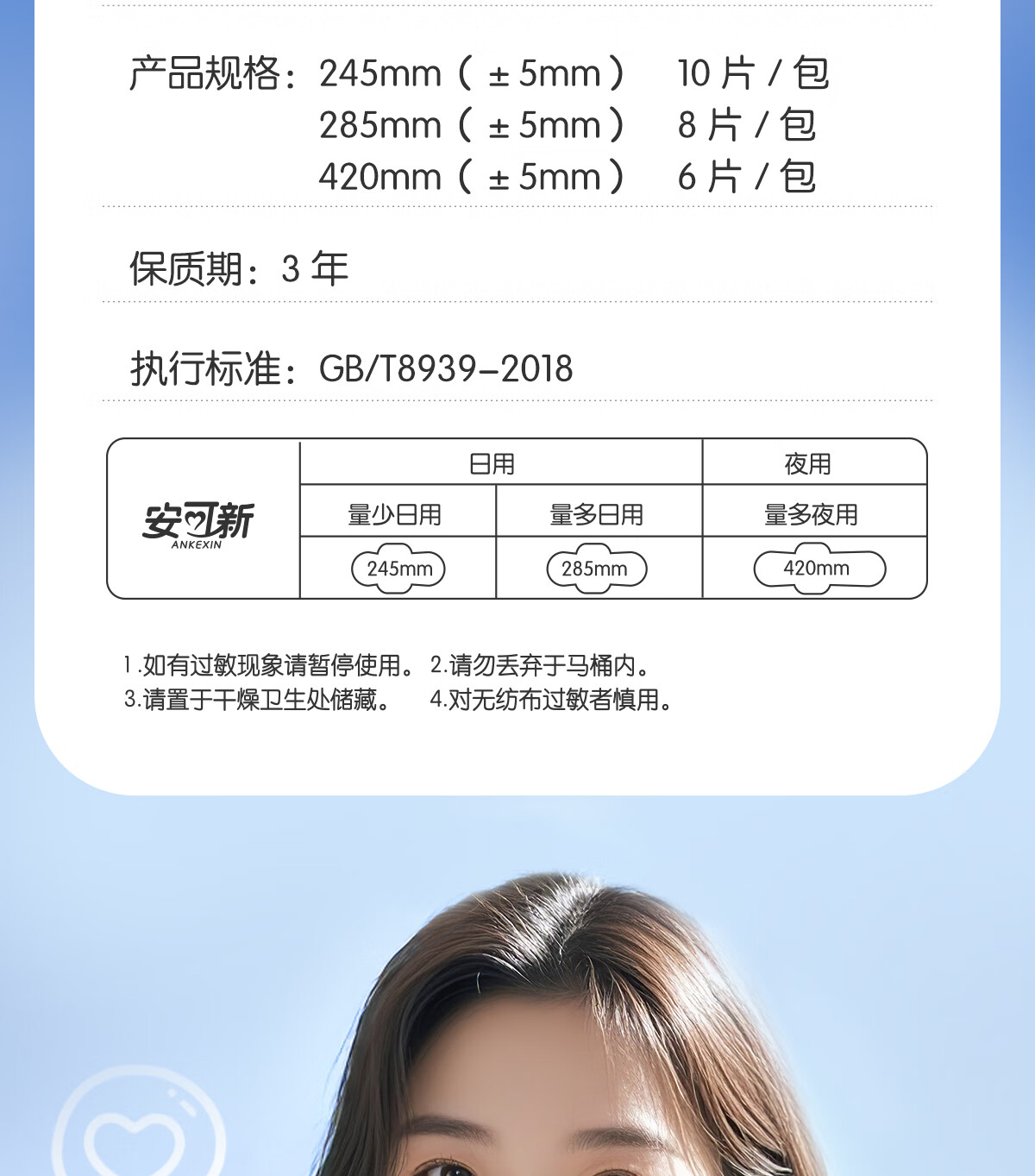 安可新蚕丝蛋白卫生巾夜用420mm孕产妇经期用柔软轻薄快吸姨妈巾6片*3包