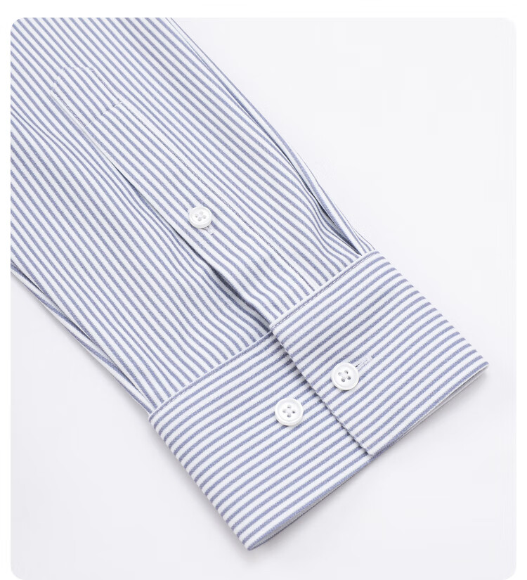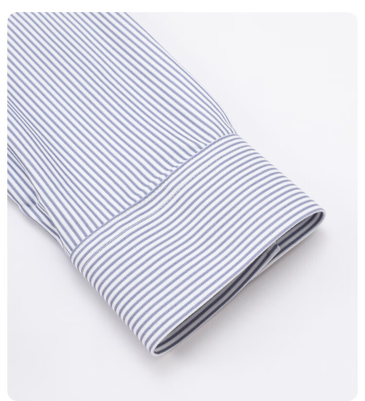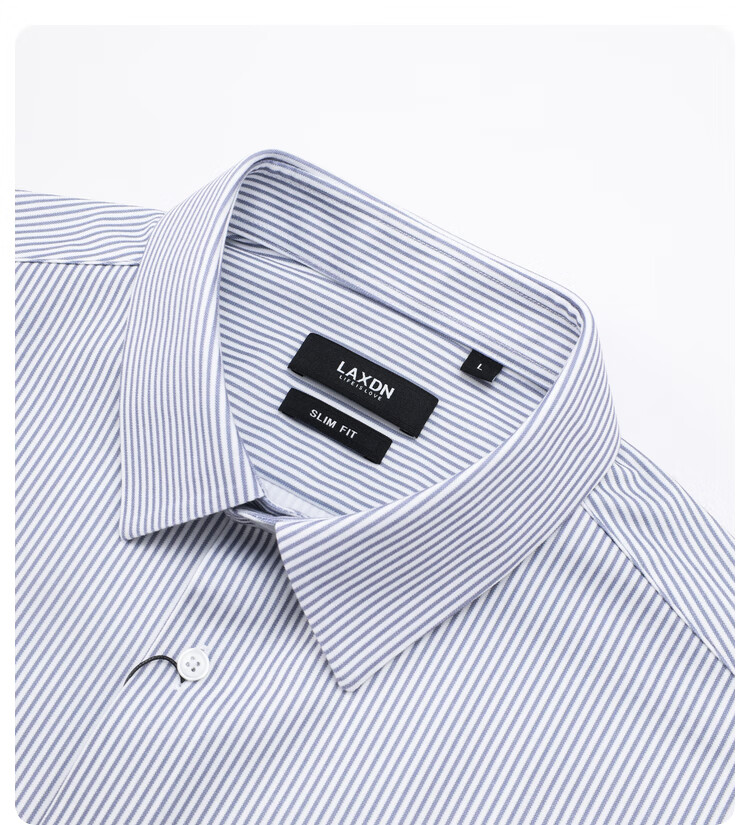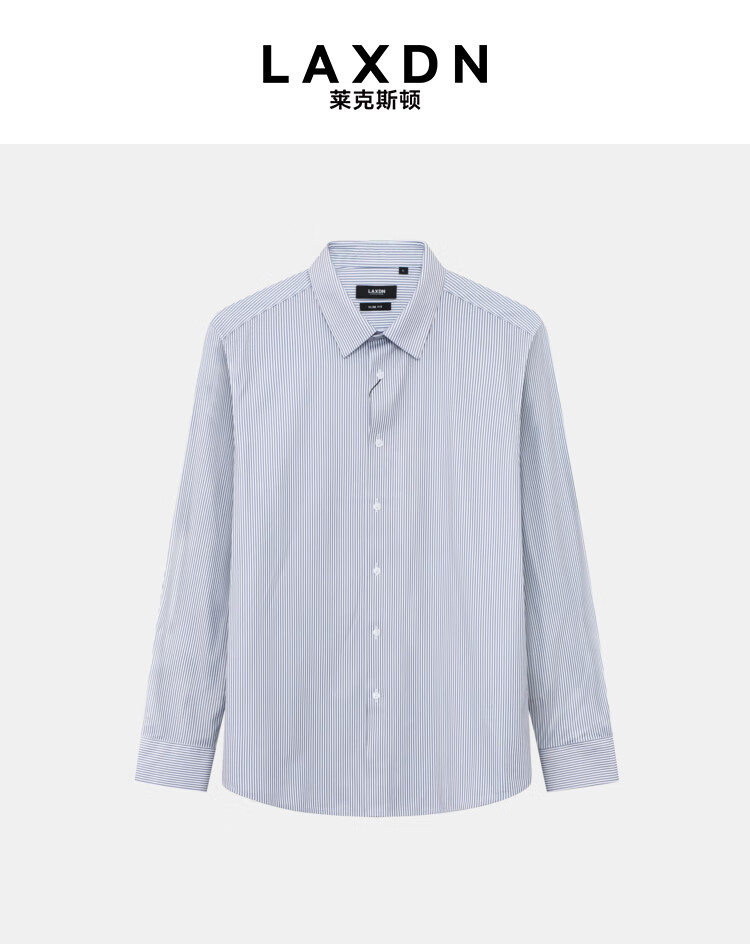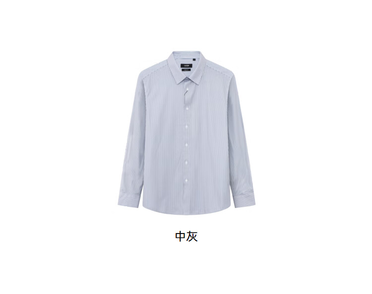 莱克斯顿男装春季条纹长袖衬衫男衬衣商务正装通勤职业装男上衣 中灰 2XL