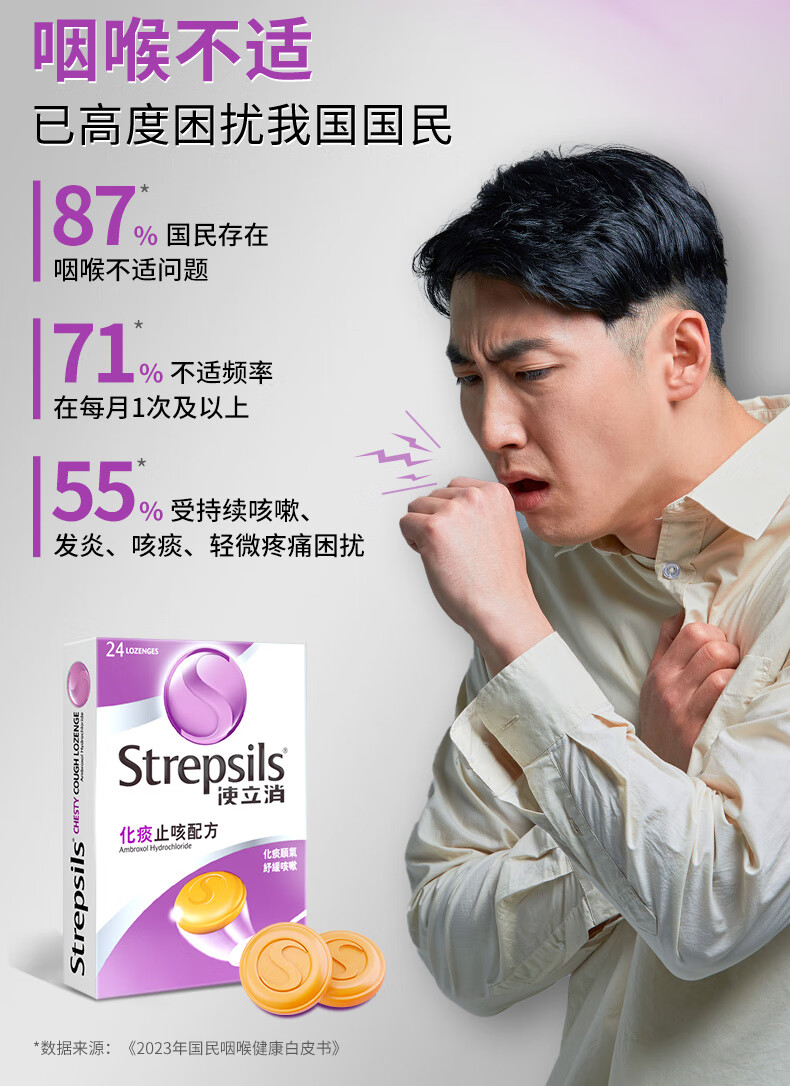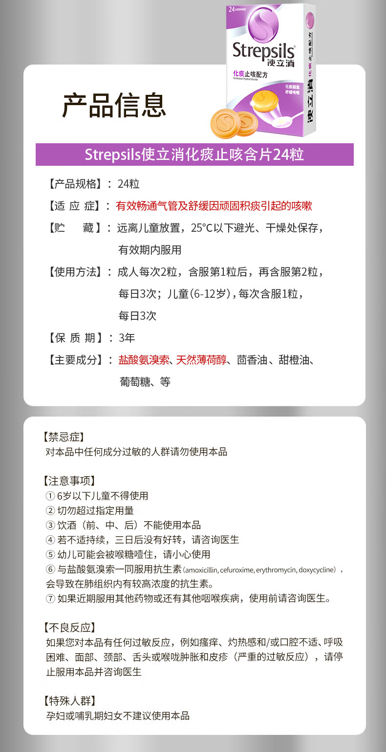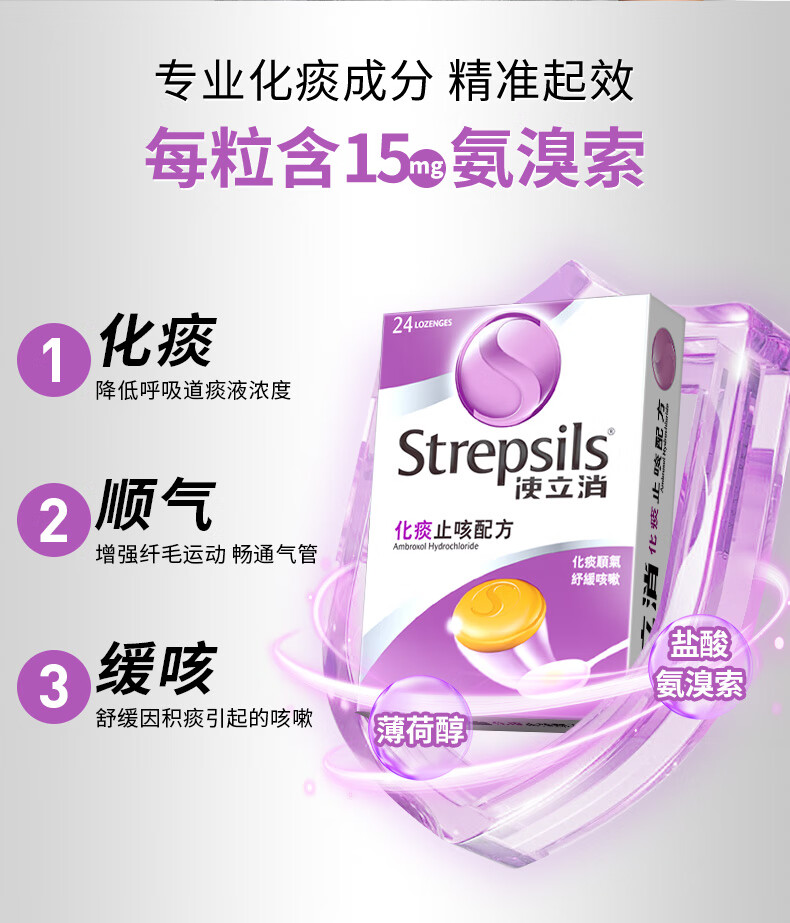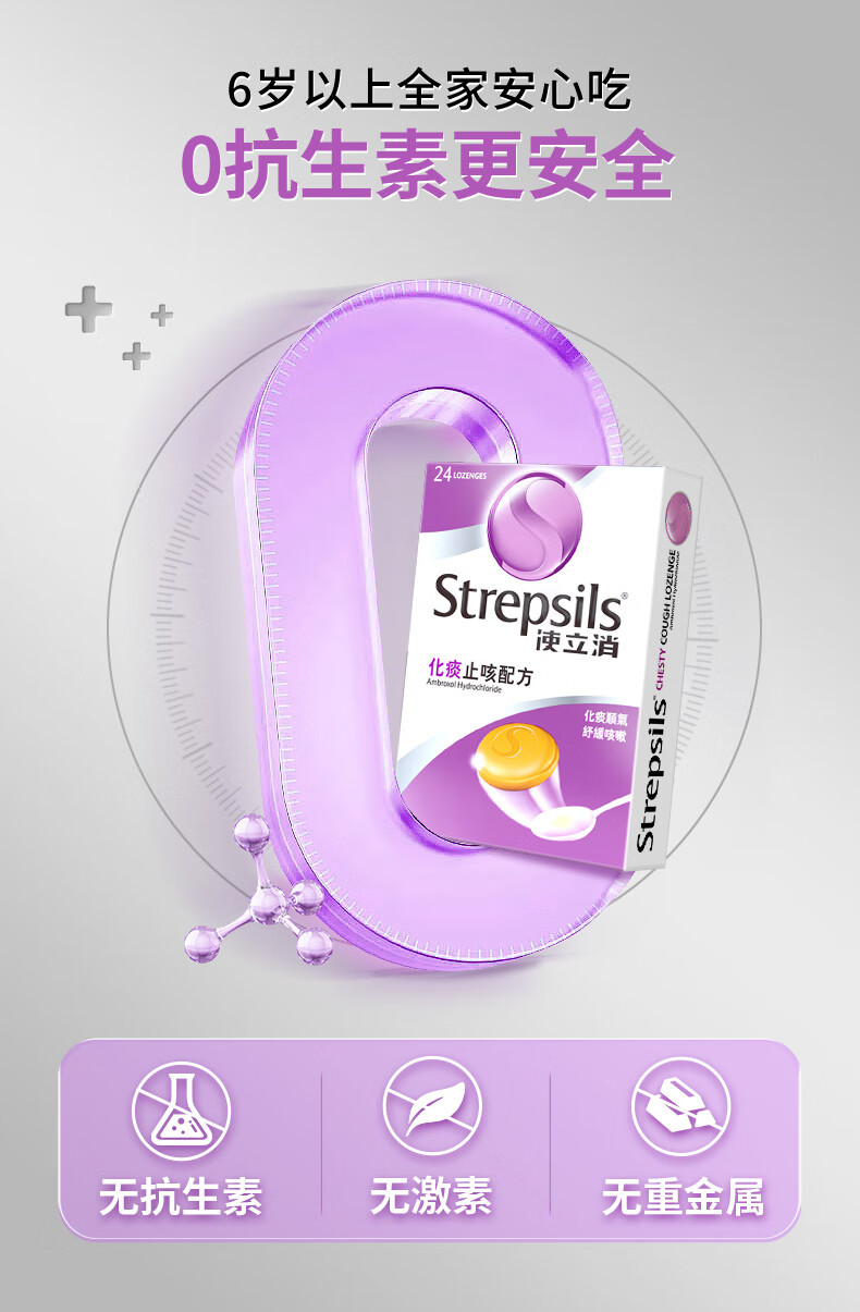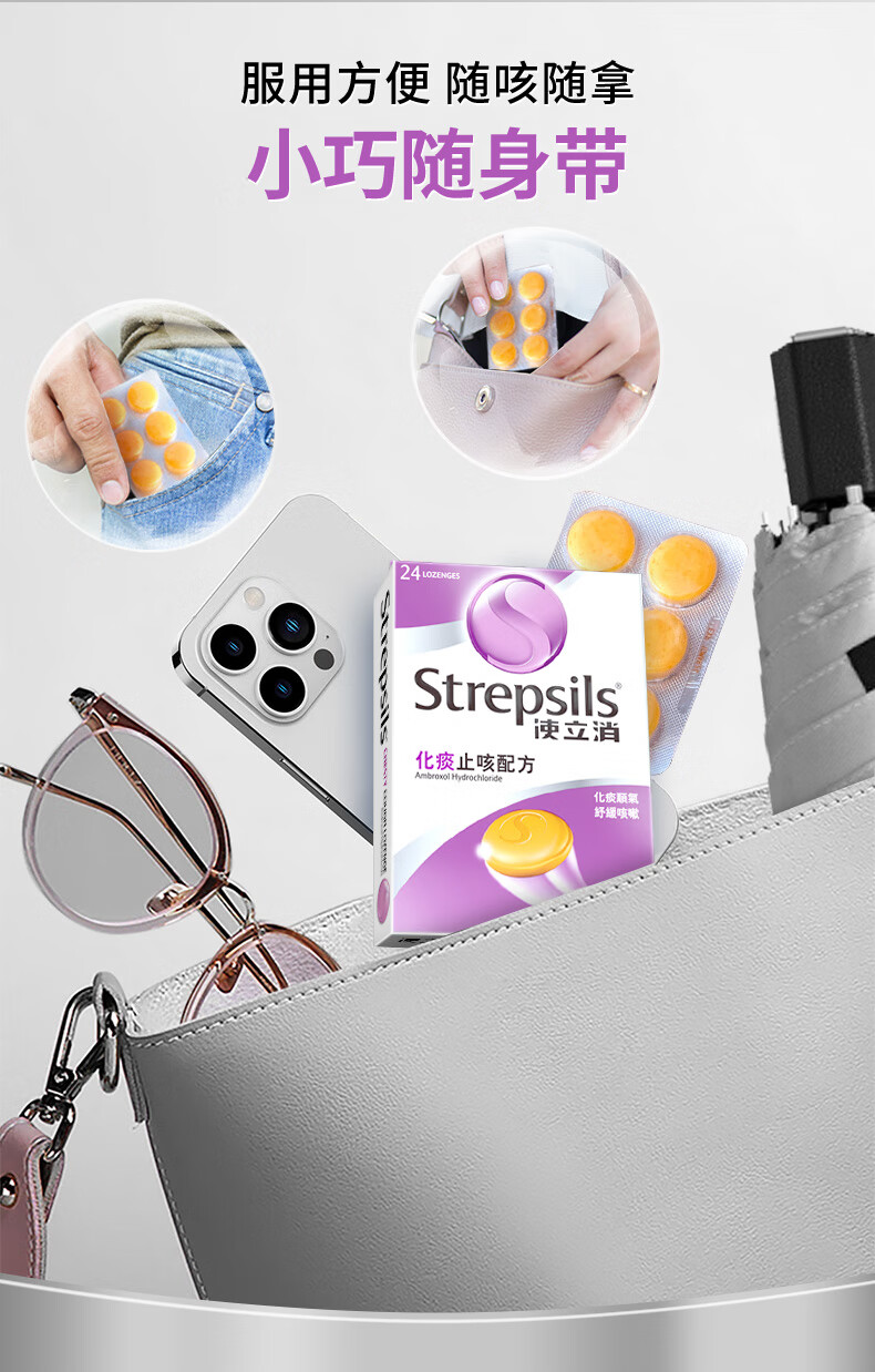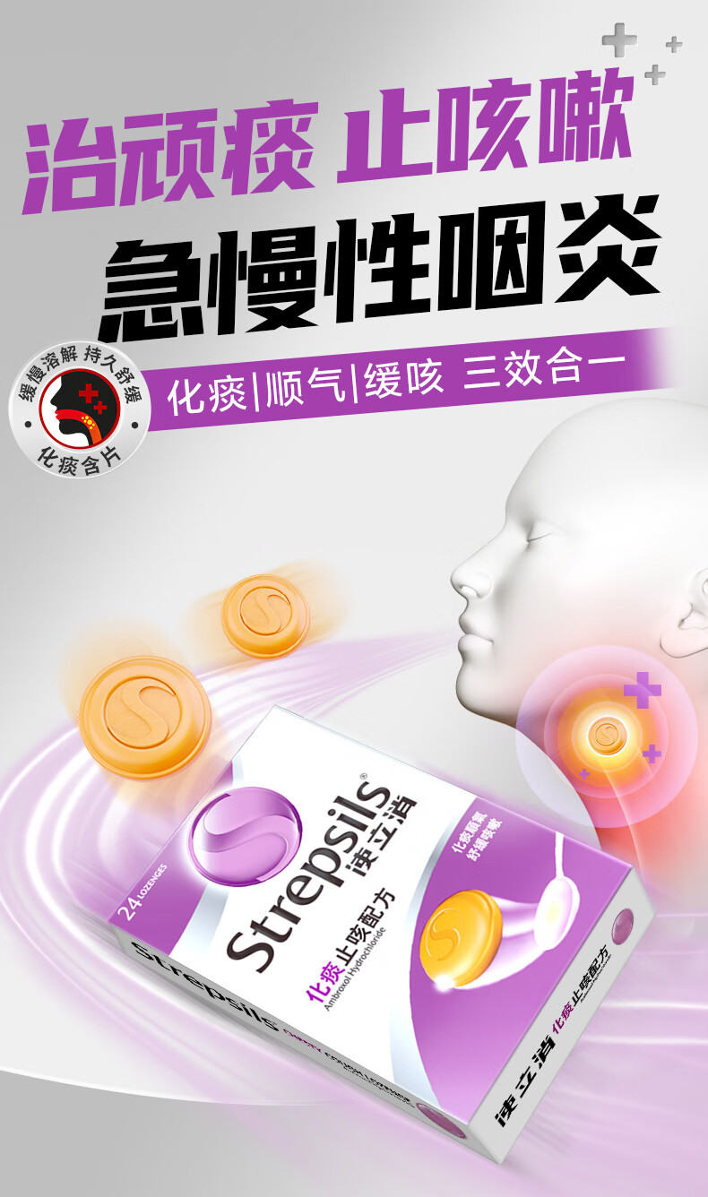 STREPSILS使立消Strepsils润喉糖化痰止咳含片24粒 喉咙痛干咳嗽慢性咽炎疼痒痛流感冒甲流薄荷糖儿童喉片咽喉炎自营