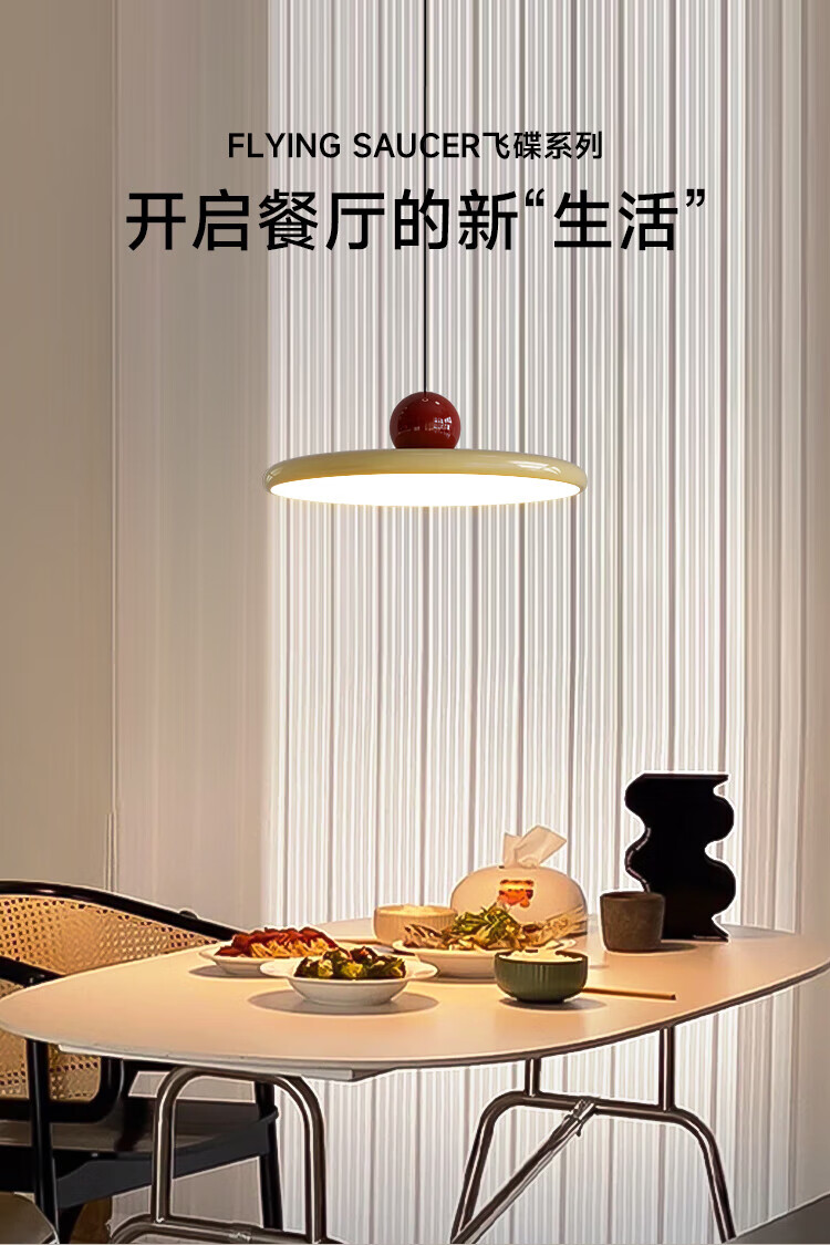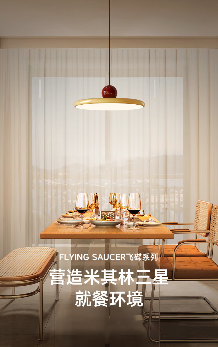 灯灵美国普瑞护眼飞碟餐厅吊灯现代简约25年最流行中山极简餐桌原木风