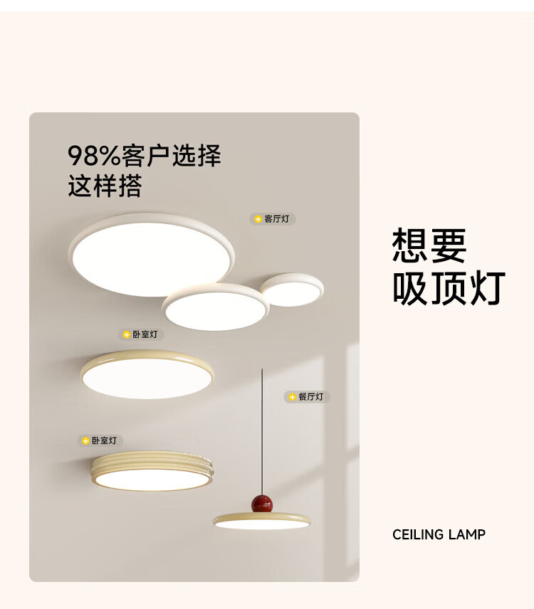 三雄极光led吸顶灯全光谱护眼客厅灯餐厅灯防蓝光书房灯具 128W 30㎡内适用 6800lm P3智控·接入米家app