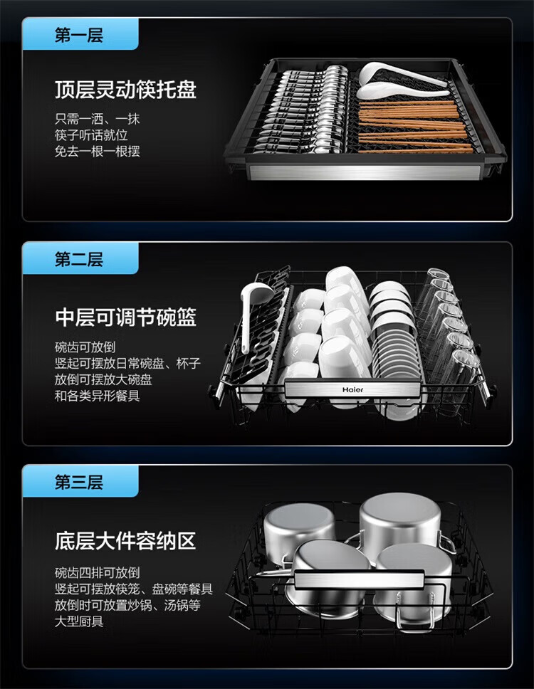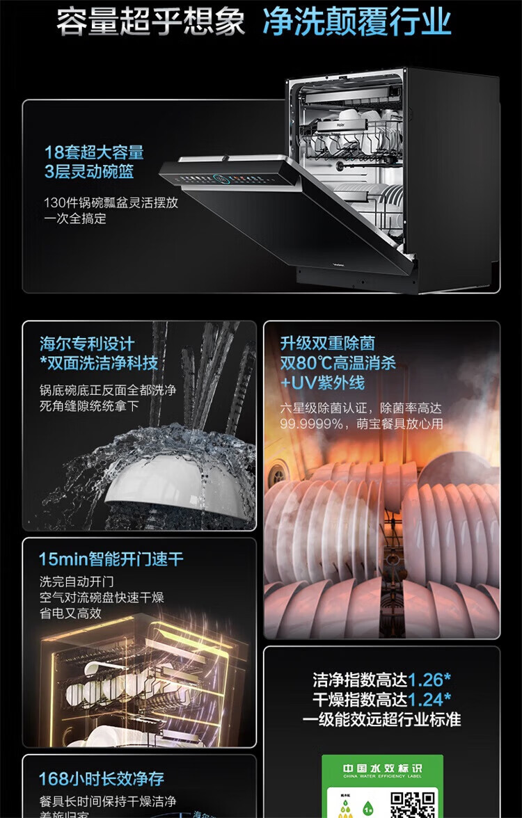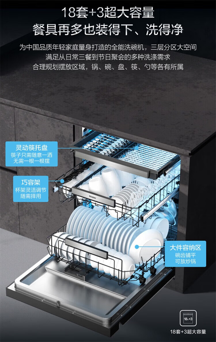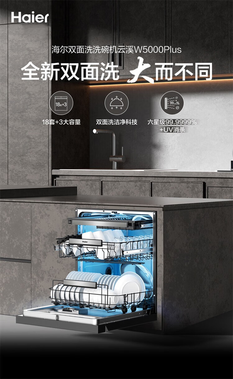 海尔(Haier)嵌入式洗碗机W5000Plus 新升级18套+3大容量双面洗 一级水效 杀菌热风烘干 【新品】W5000Plus顶配款18套+3大容量