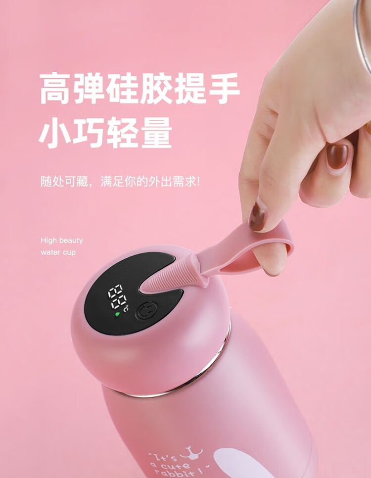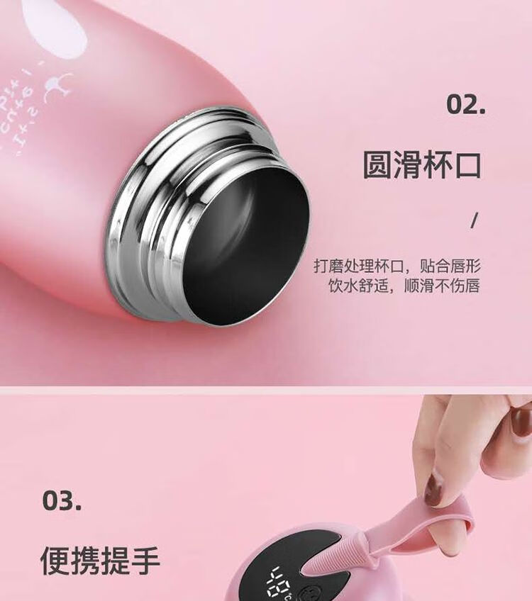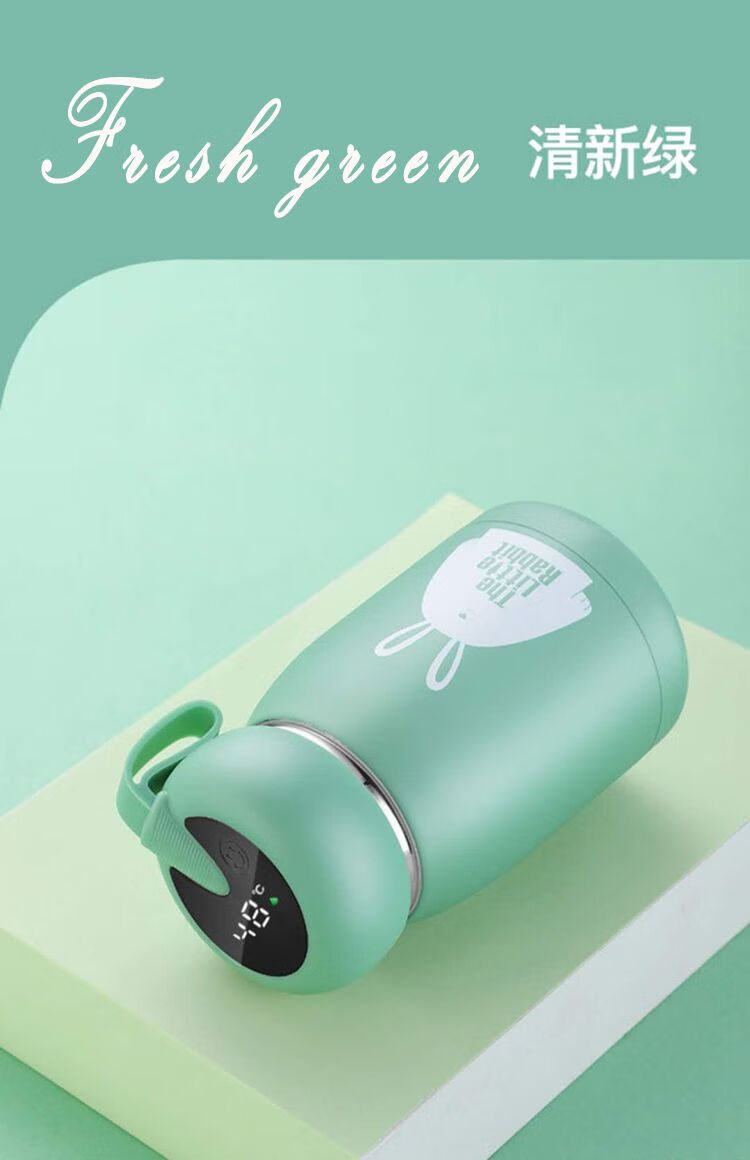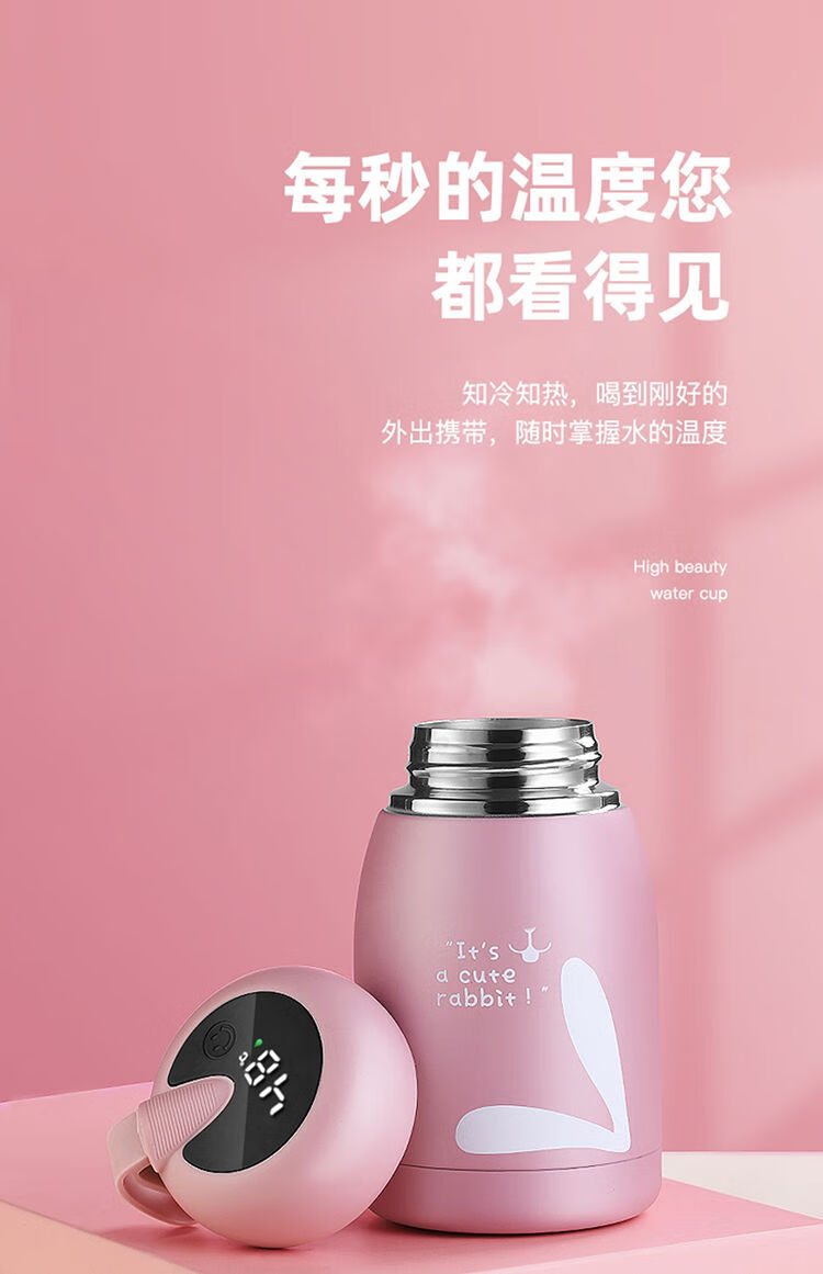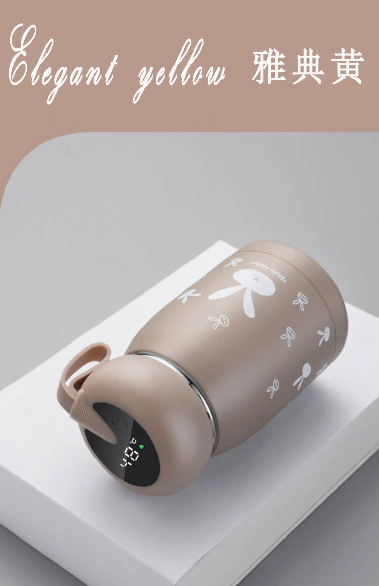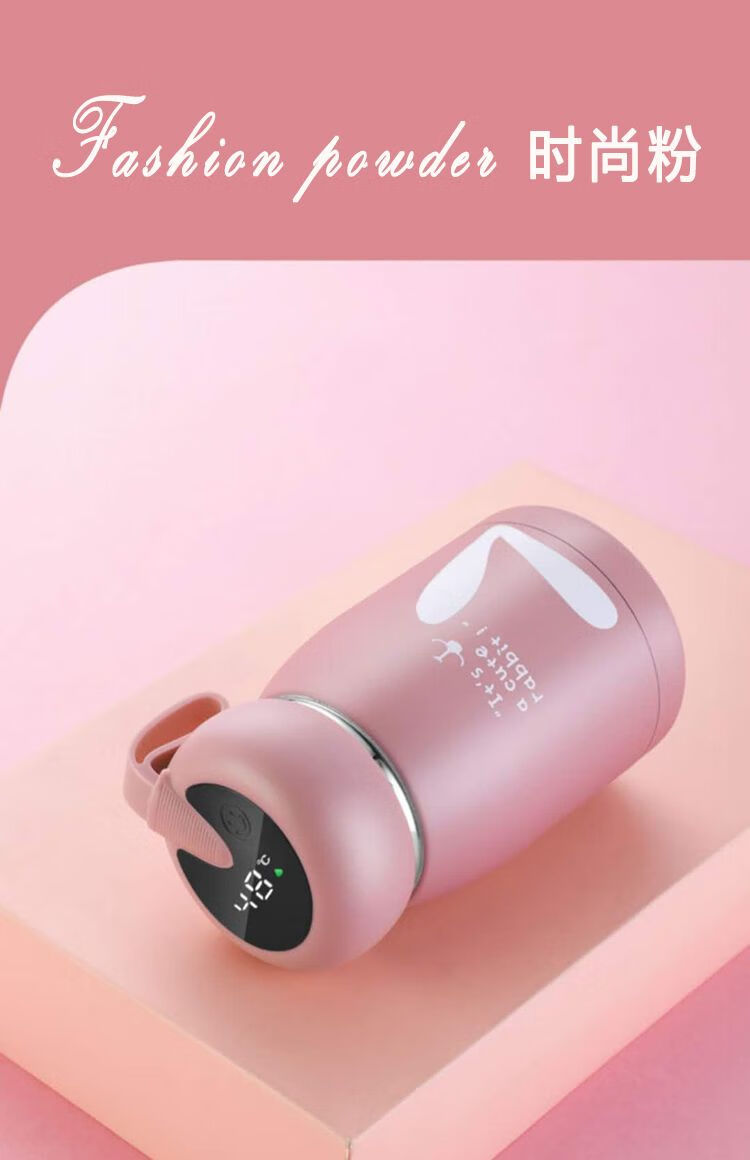 DEATKN智能测温保温杯便携水杯儿童杯子女学生韩版可爱卡通呆萌批发刻字 时尚粉-320ML 1ml 单杯