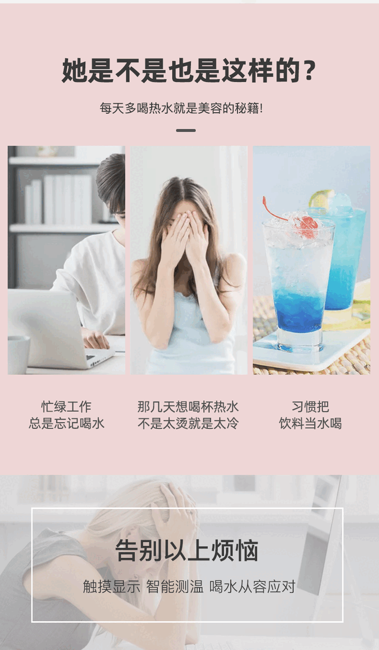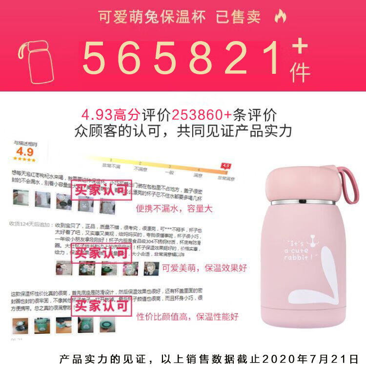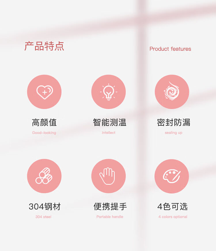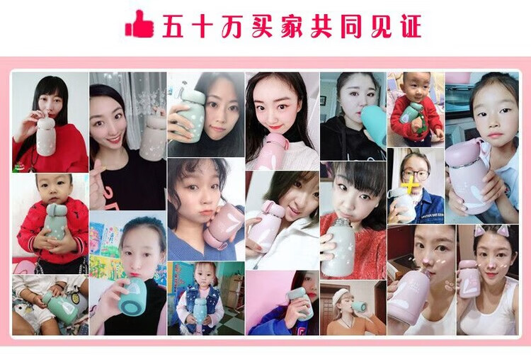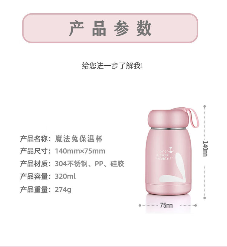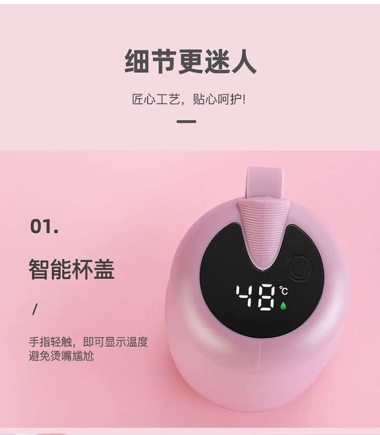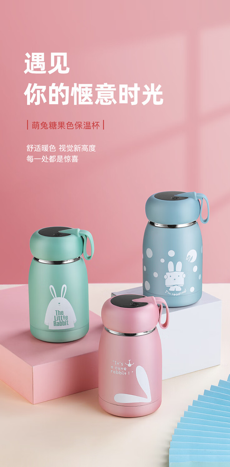DEATKN智能测温保温杯便携水杯儿童杯子女学生韩版可爱卡通呆萌批发刻字 时尚粉-320ML 1ml 单杯