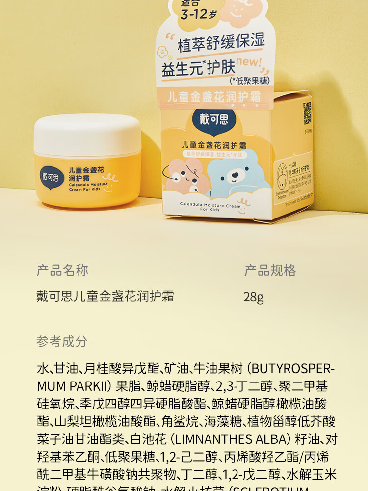 戴·可·思(Dexter)儿童金盏花面霜28g舒缓滋润宝宝霜植物配方补水保湿【临期清仓】