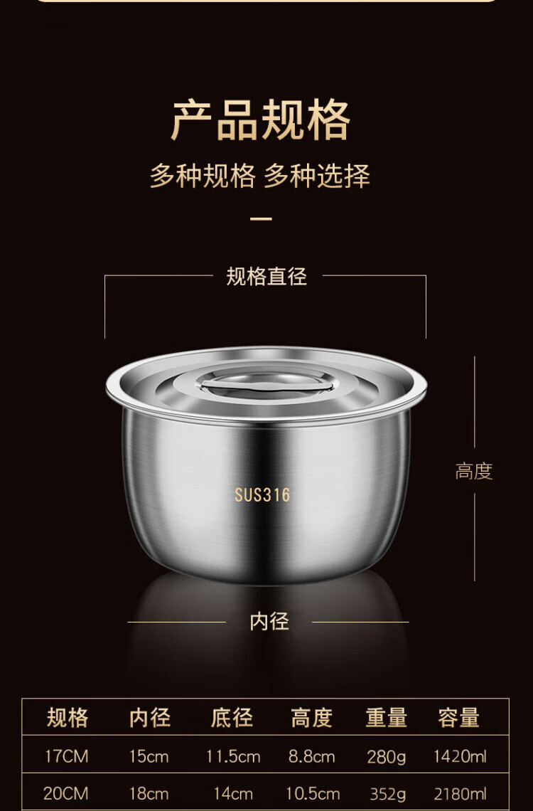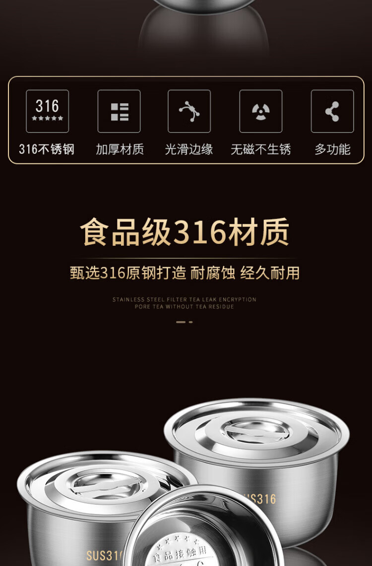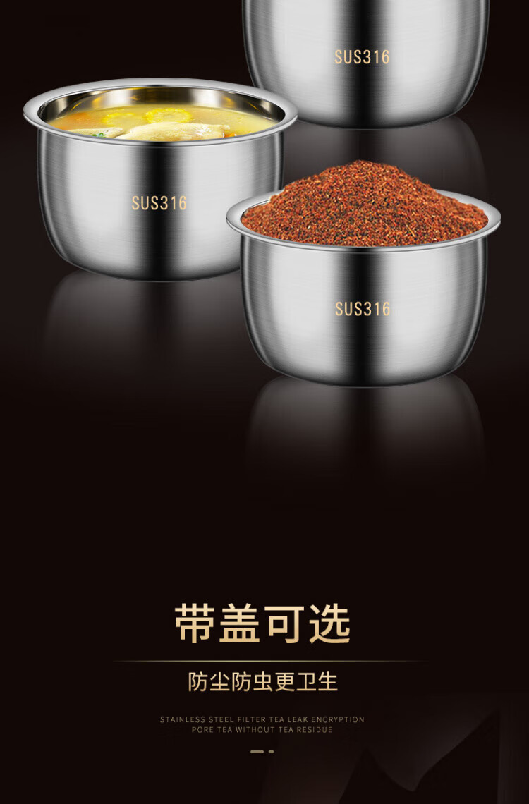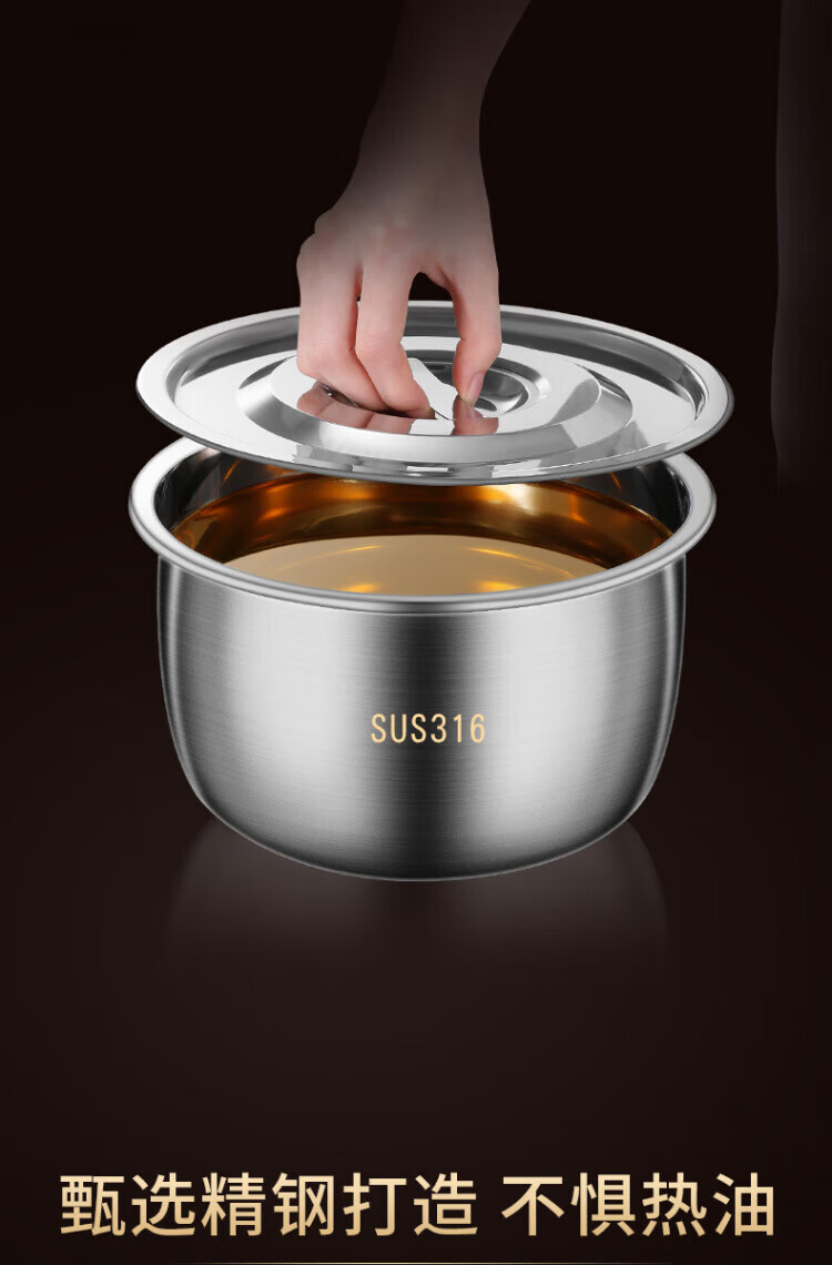 WCZ德国食品级316不锈钢装猪油盆带盖厨房家用油盆油壶储油缸猪油罐 316母婴食品级带提手17厘米+过滤网