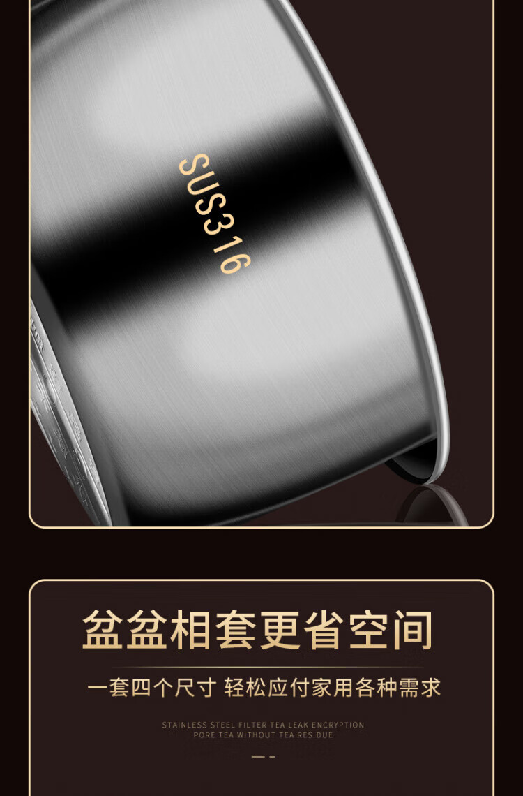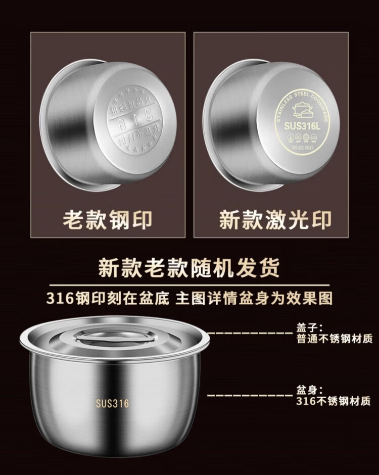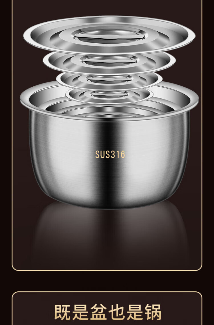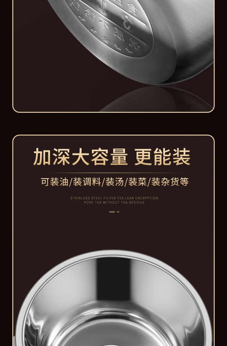 WCZ德国食品级316不锈钢装猪油盆带盖厨房家用油盆油壶储油缸猪油罐 316母婴食品级带提手17厘米+过滤网