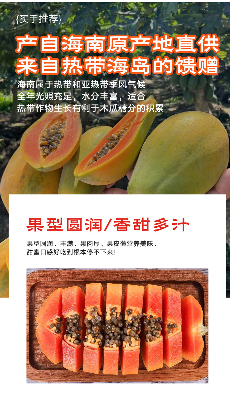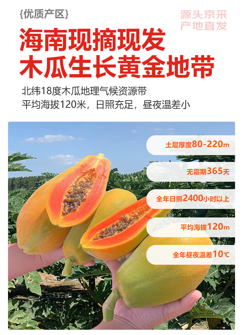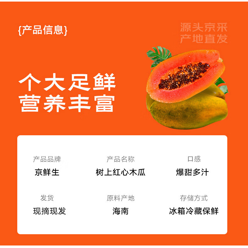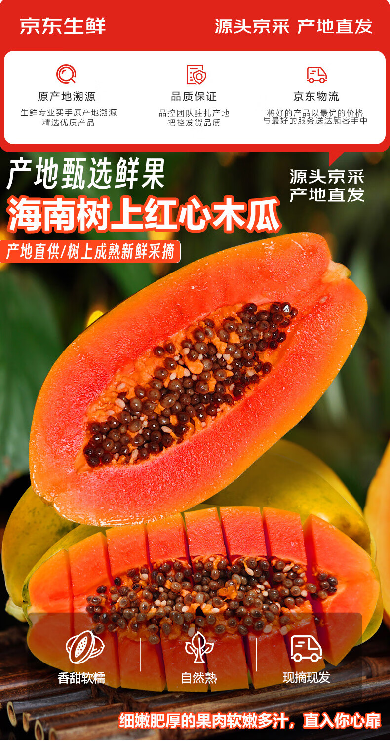 京鲜生 海南大青红心木瓜 净重5斤 单果500g-750g 源头直发包邮
