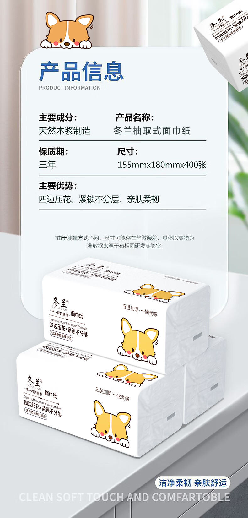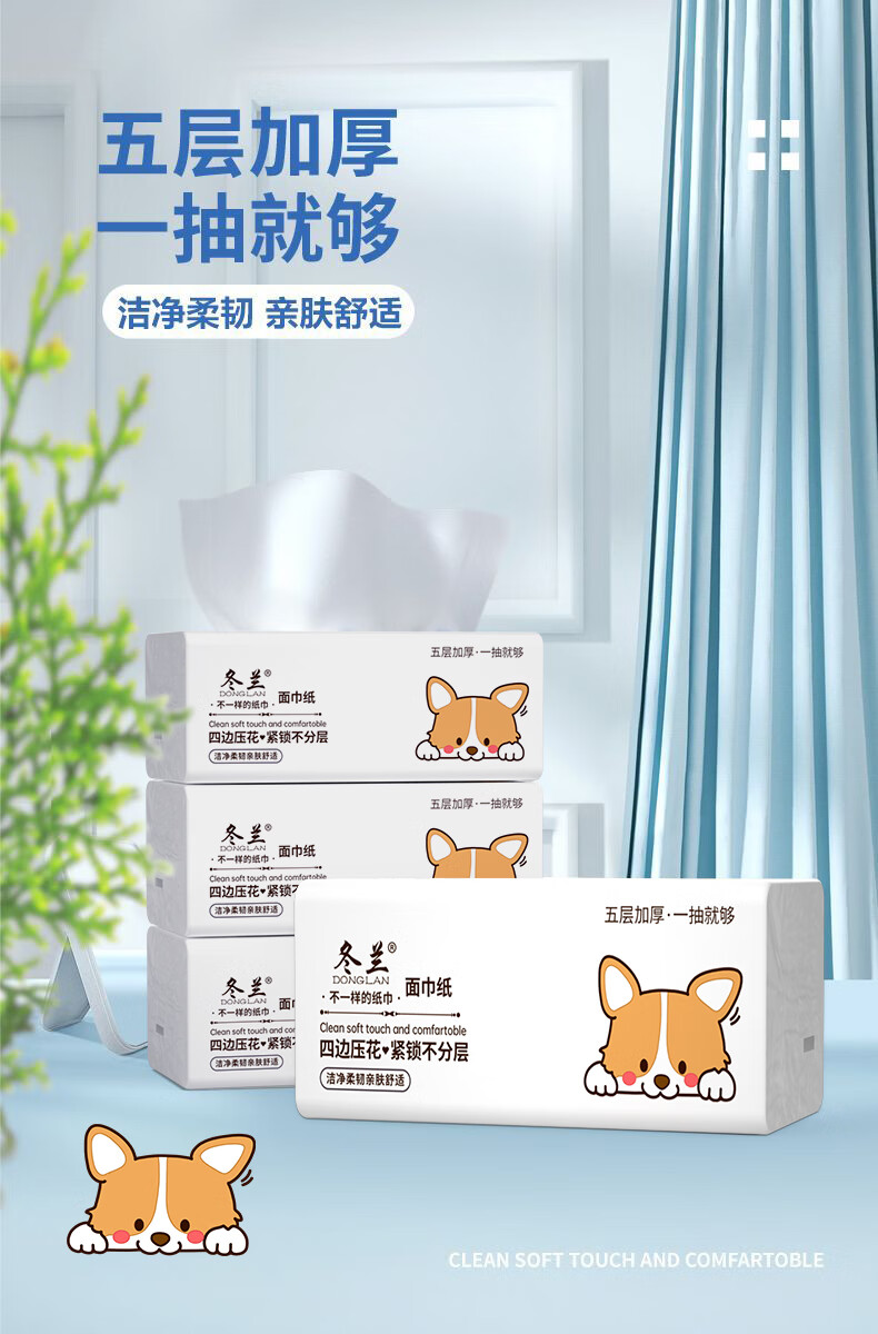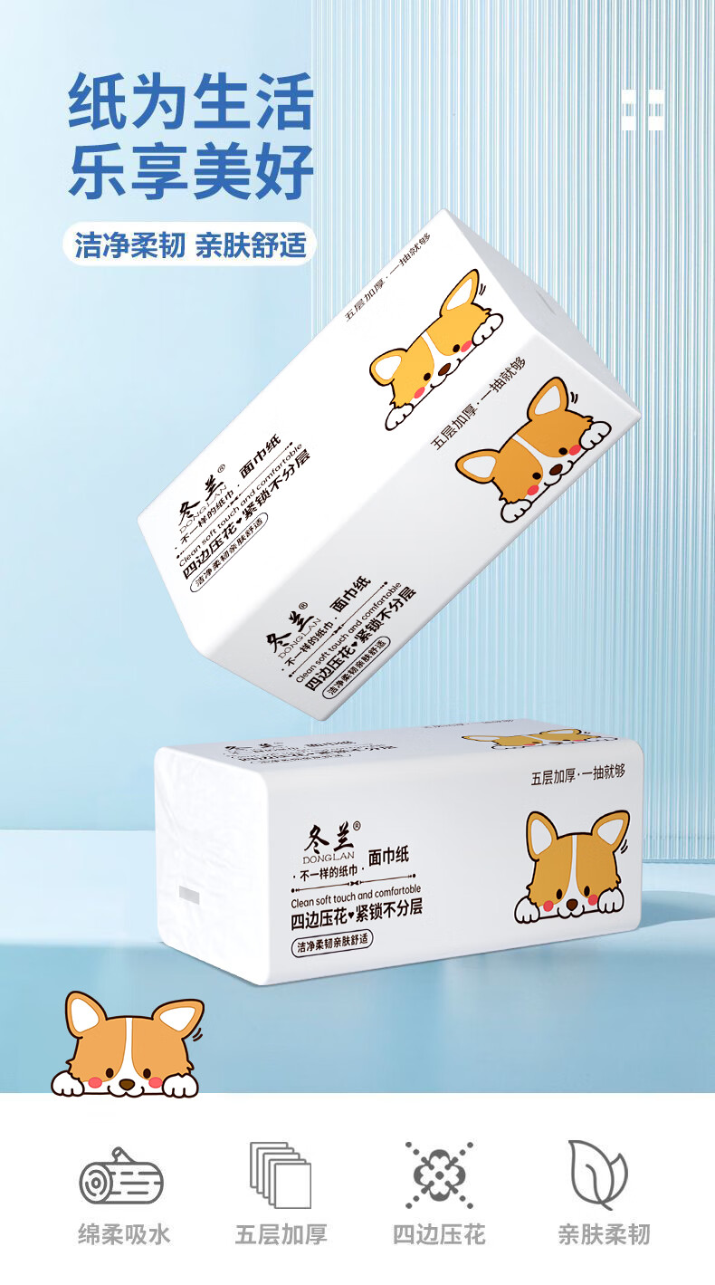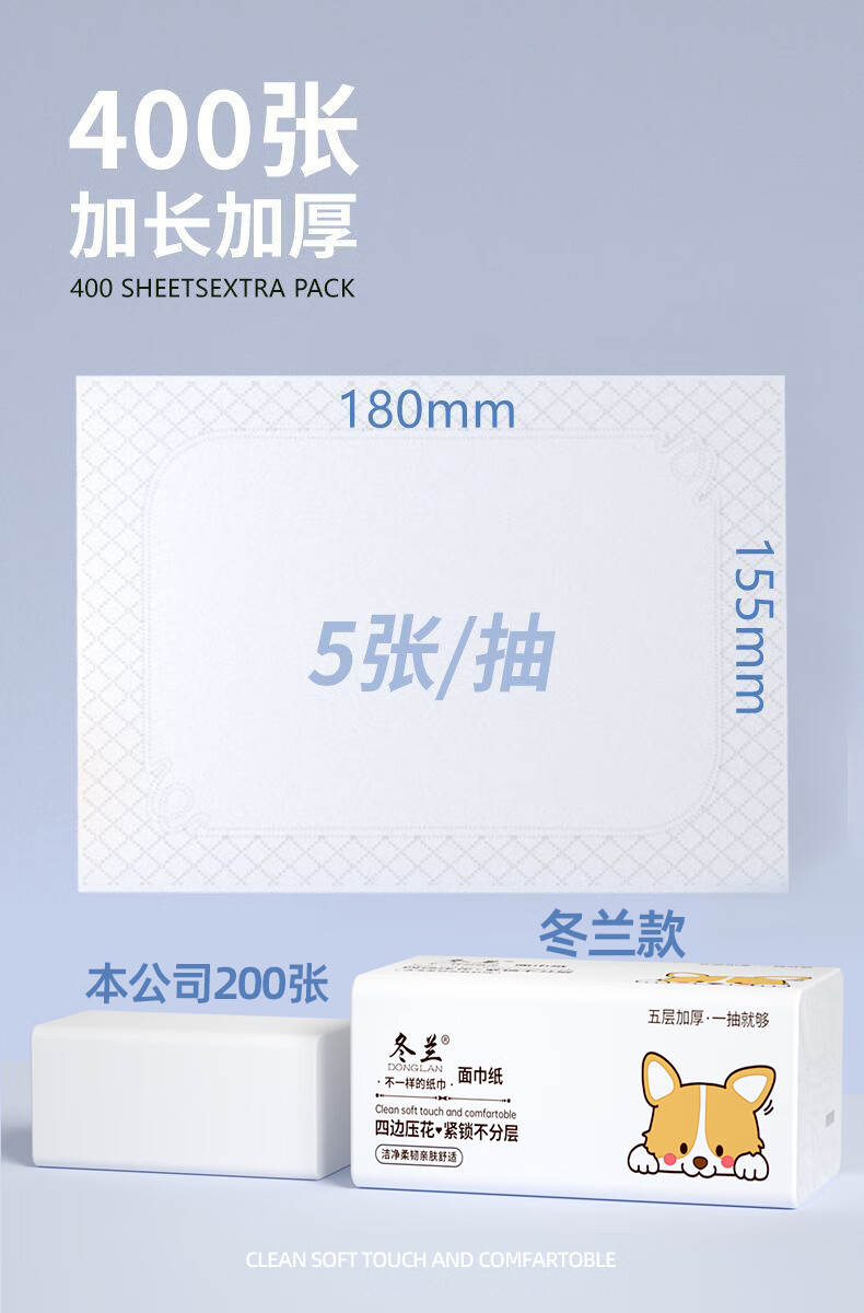 冬兰抽纸家用加量400张纸抽大尺寸大包纸巾抽纸面巾纸整箱批发擦手纸 【155*180mm】 5层 80抽*10包