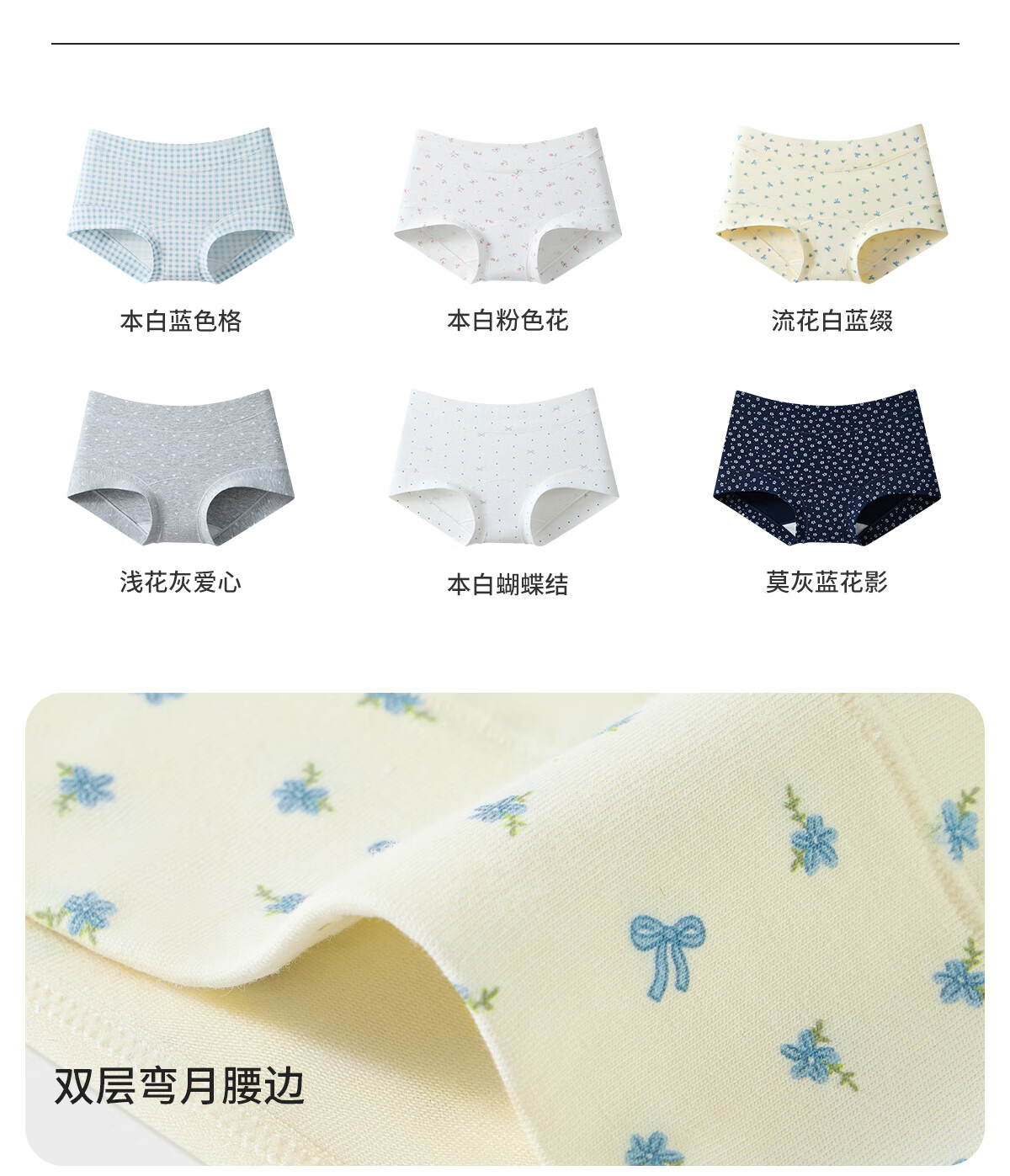 都市丽人女士内裤女A类纯棉可爱少女10A抗菌全棉裆中腰女生小平角裤短裤头