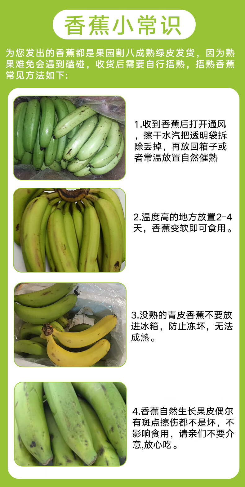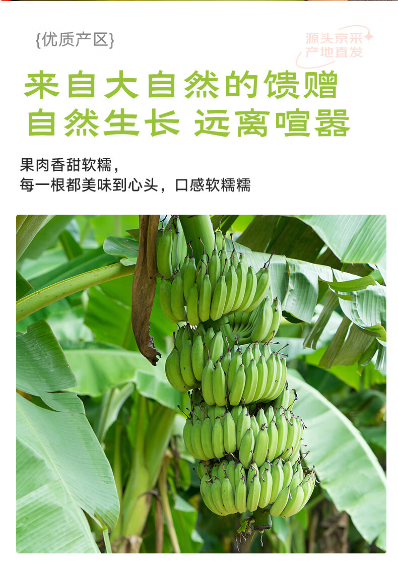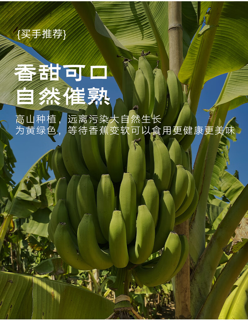 京鲜生广西高山绿皮甜香蕉 净重3斤 单根套网100g+变软即食源头直发包邮