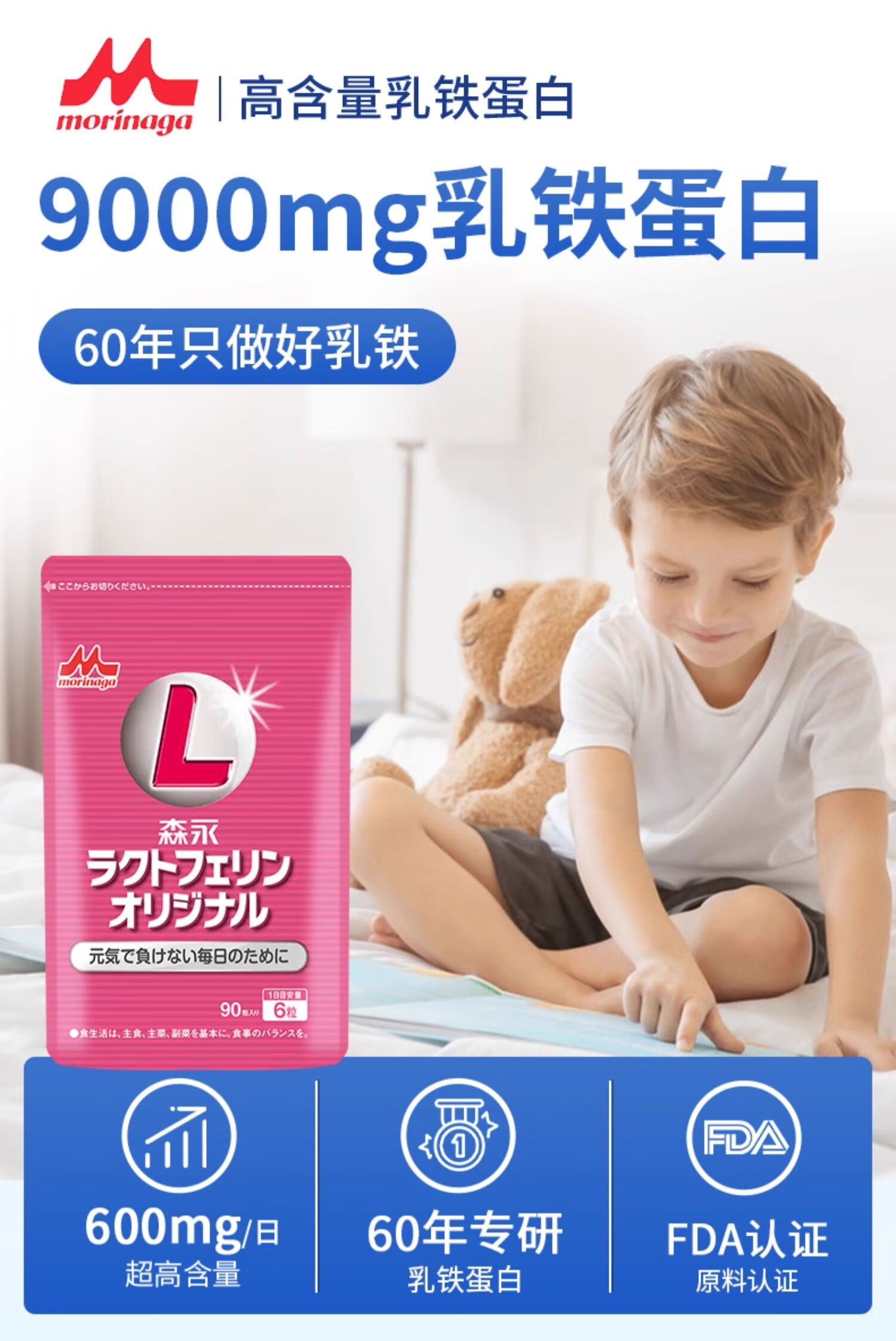 森永乳铁蛋白增强免疫成人儿童免疫球蛋白婴幼儿牛初乳粉宝宝增强抵御 【9000mg乳铁含量】1袋装