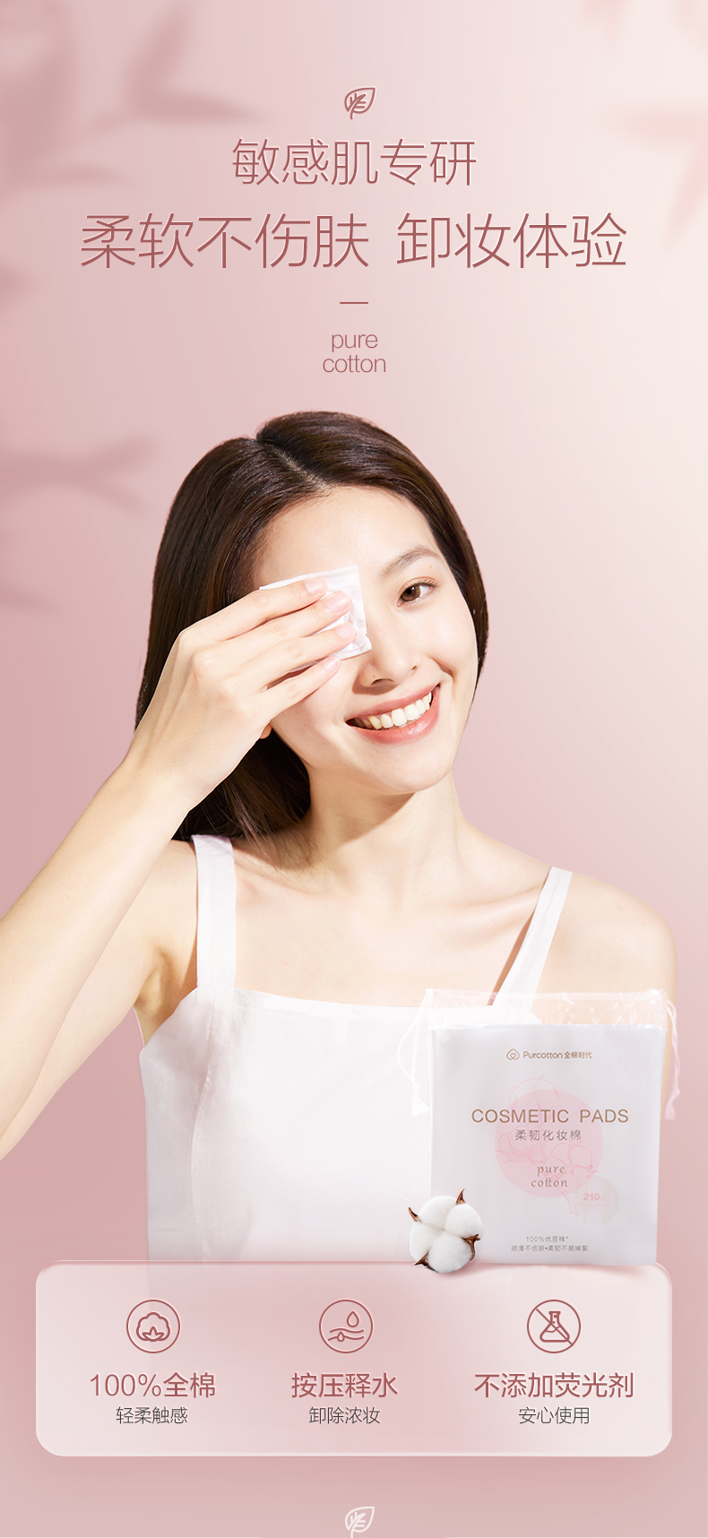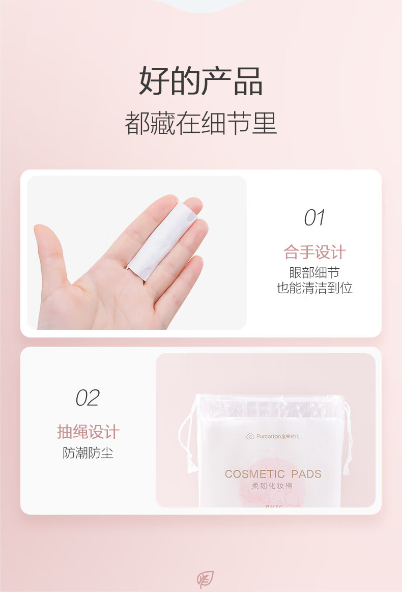 全棉时代化妆棉卸妆棉片湿敷不掉絮纯棉擦脸巾210片x3包
