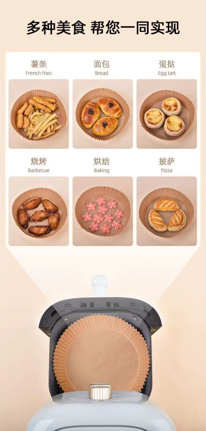 DEATKN空气炸锅纸盘吸油纸防油纸烘焙食品级家用硅油纸托烧烤 食品级+【圆形加厚垫纸】活动中 超值特惠:100只【精加厚超防油】活动中
