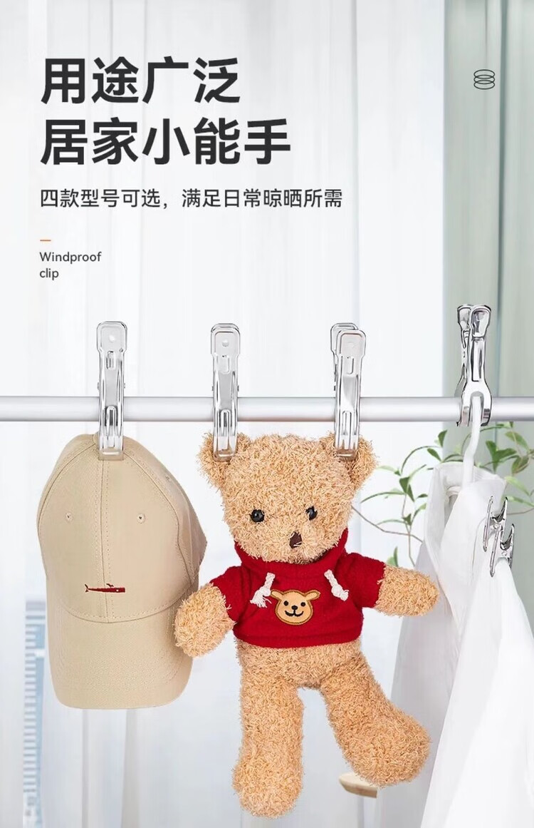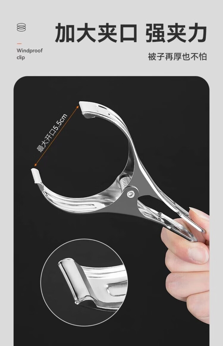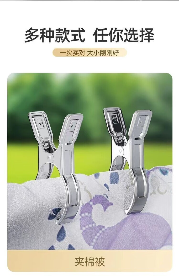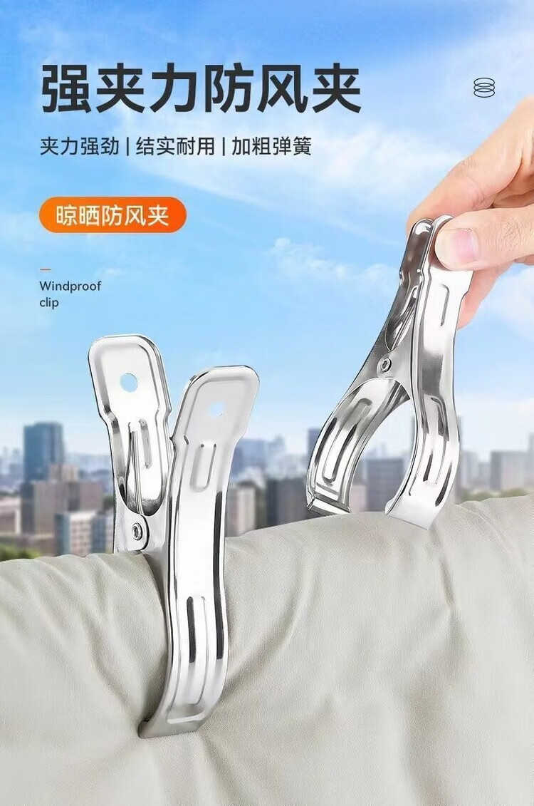 DEATKN夹子不锈钢晒被夹大号防风固定晾衣夹加厚钢片强力夹袜夹晒衣服夹 【精选优质不锈钢】强力不变形:加固弹簧 【6个大号+10个中号】晾晒搭档:特惠