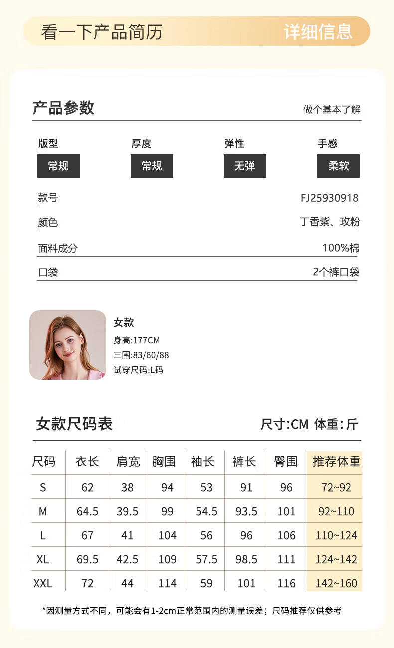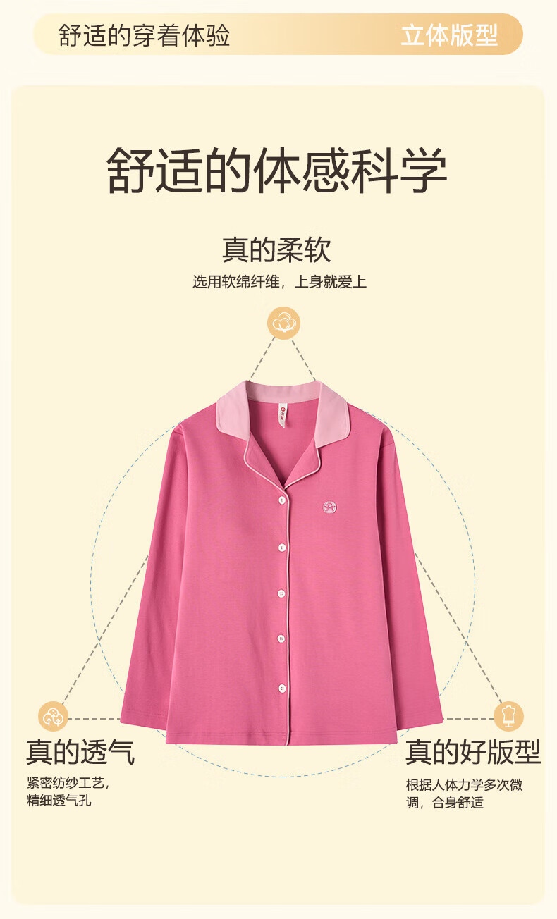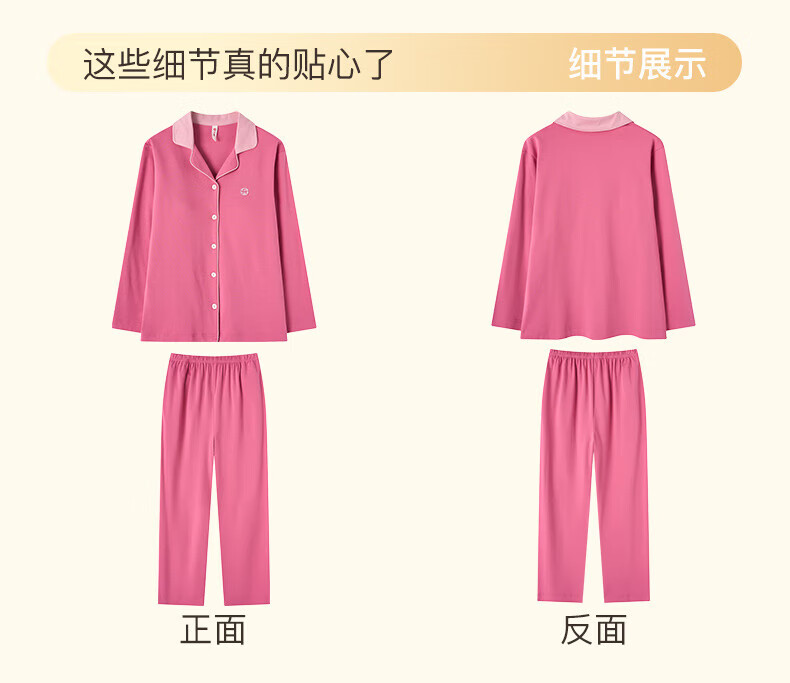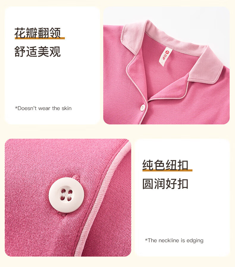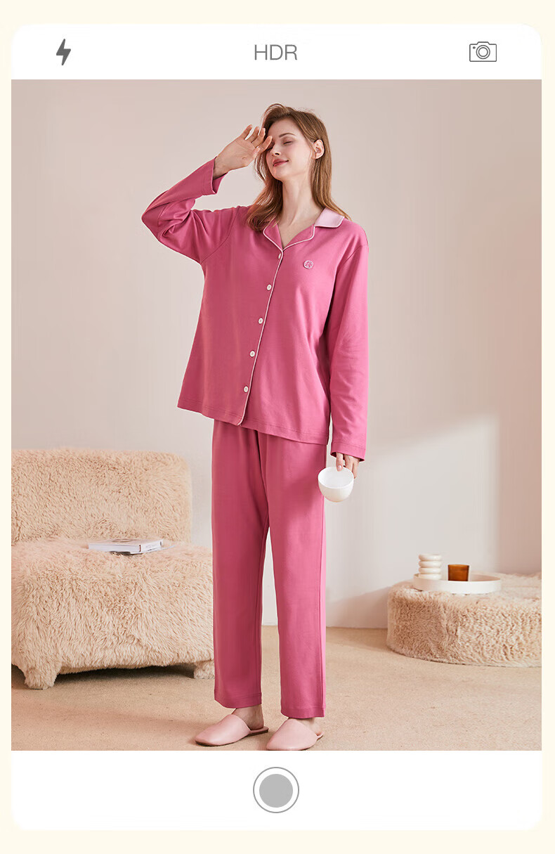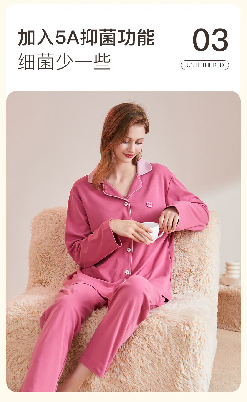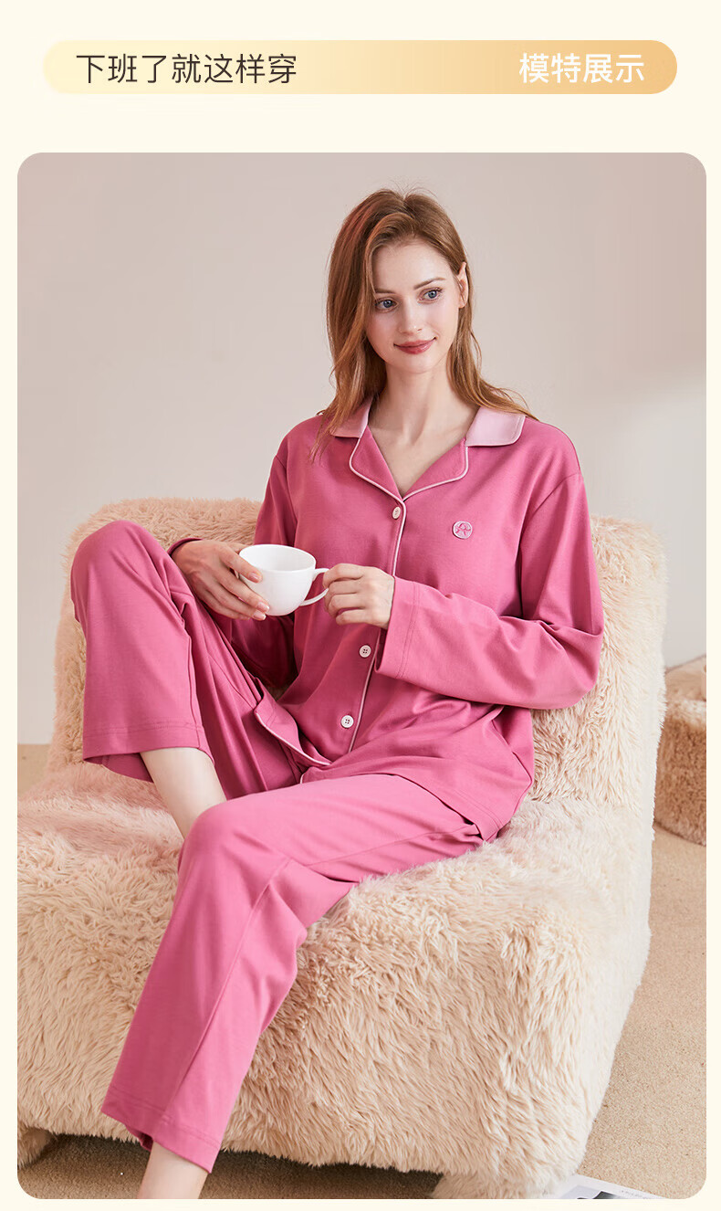 芬腾睡衣女【5A带罩杯】早秋拼色全棉翻领纯色纽扣家居服套装 丁香紫 L