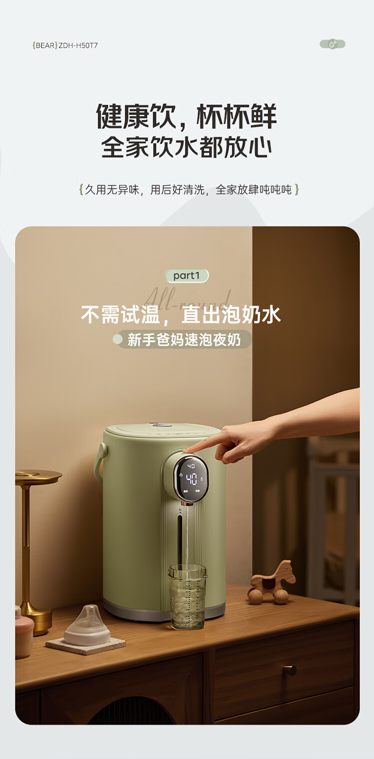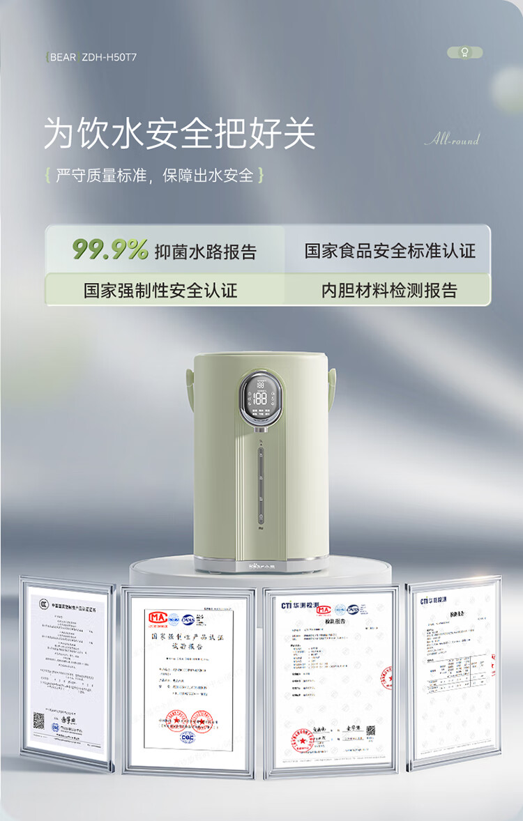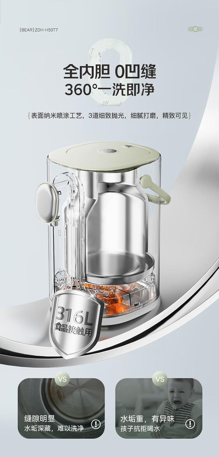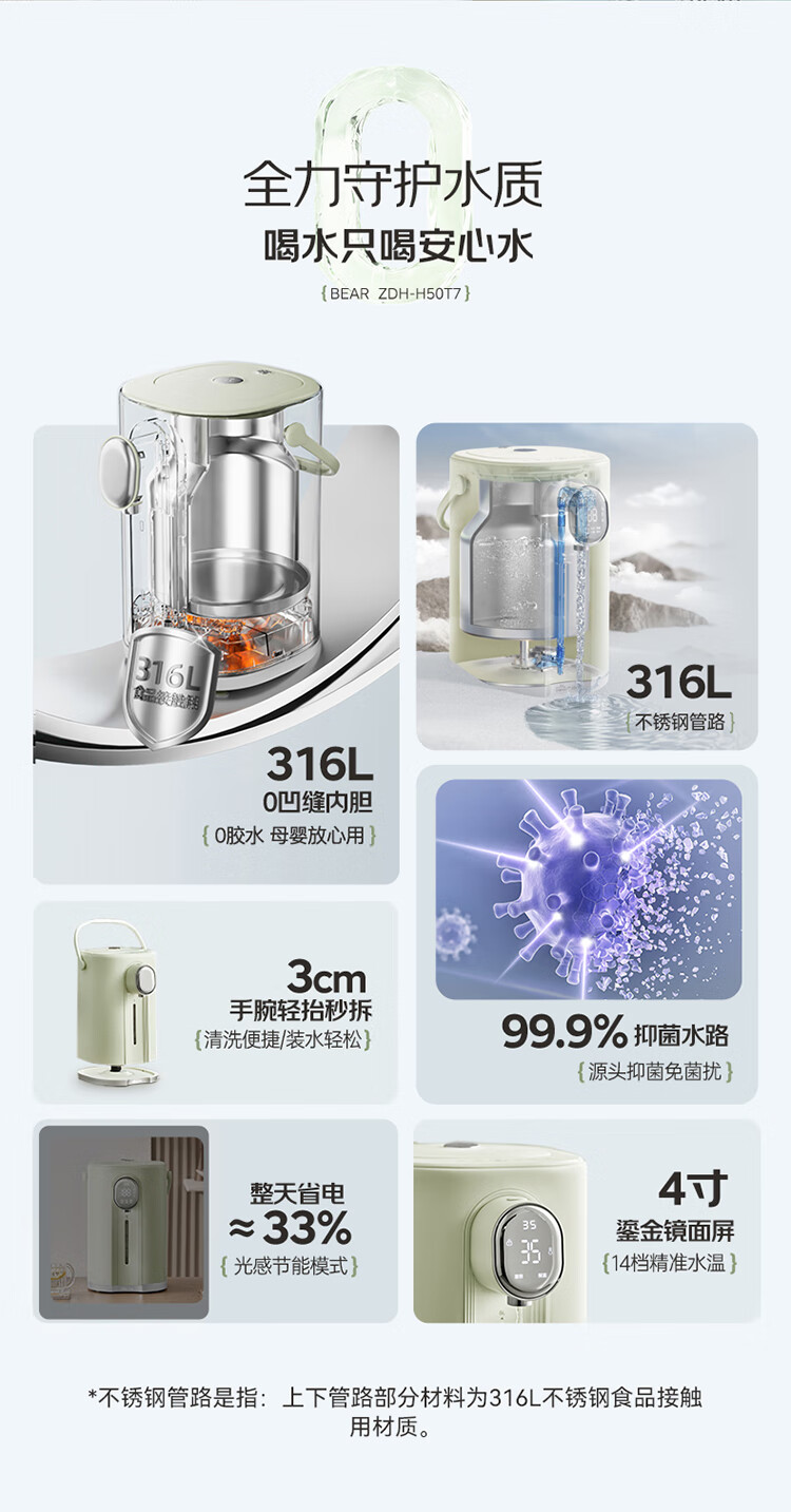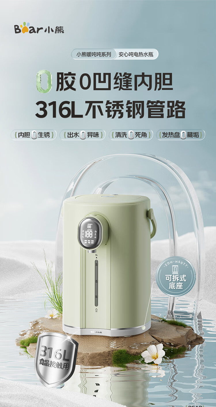 小熊(Bear)电热水瓶 恒温电热水壶多段保温316L不锈钢内胆抗菌水路 暖吨吨烧水壶 ZDH-H50T7