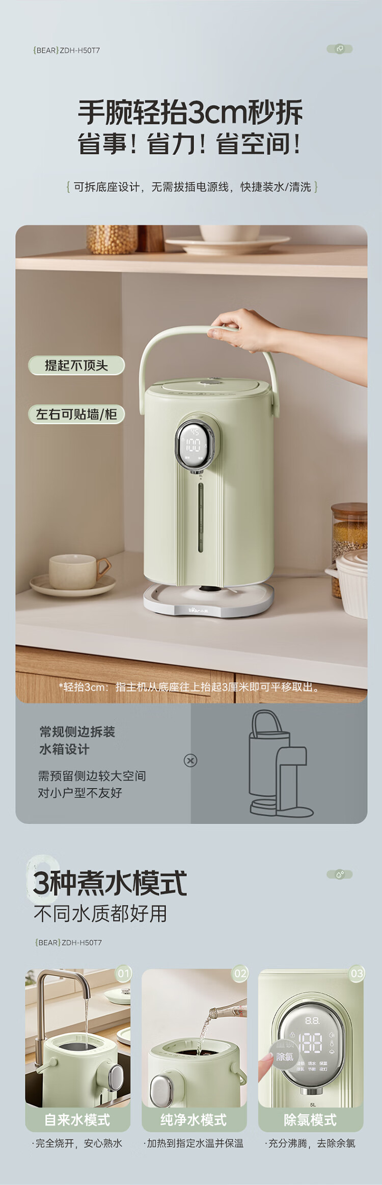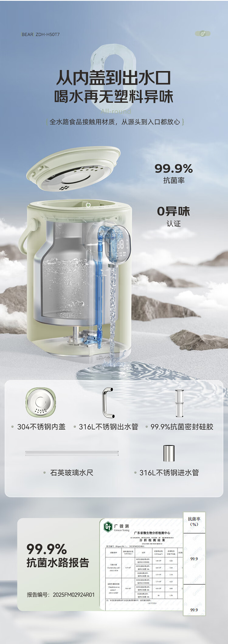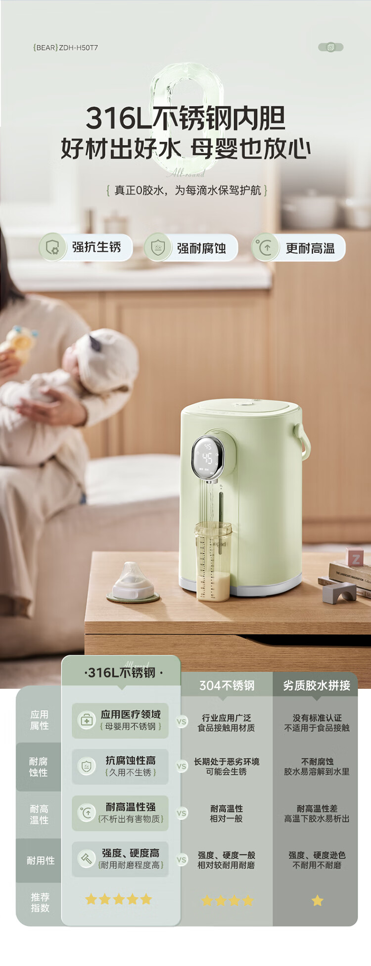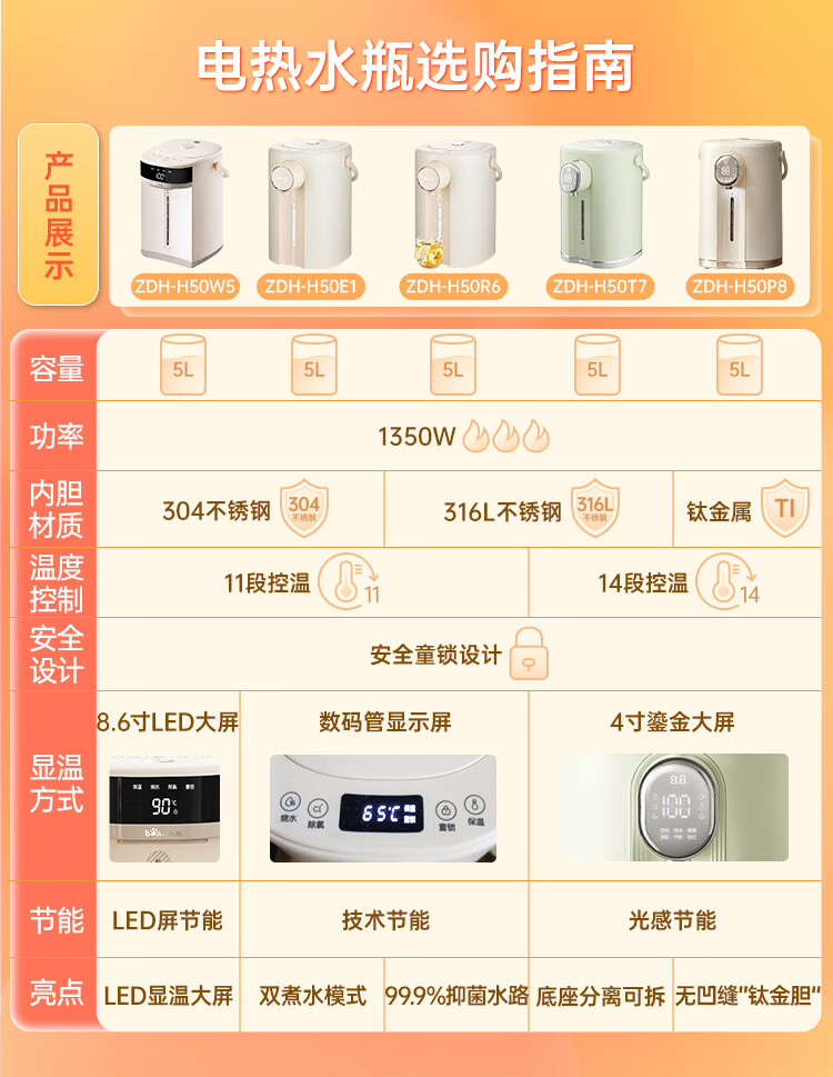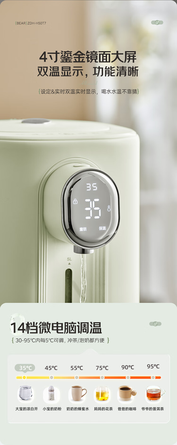小熊(Bear)电热水瓶 恒温电热水壶多段保温316L不锈钢内胆抗菌水路 暖吨吨烧水壶 ZDH-H50T7
