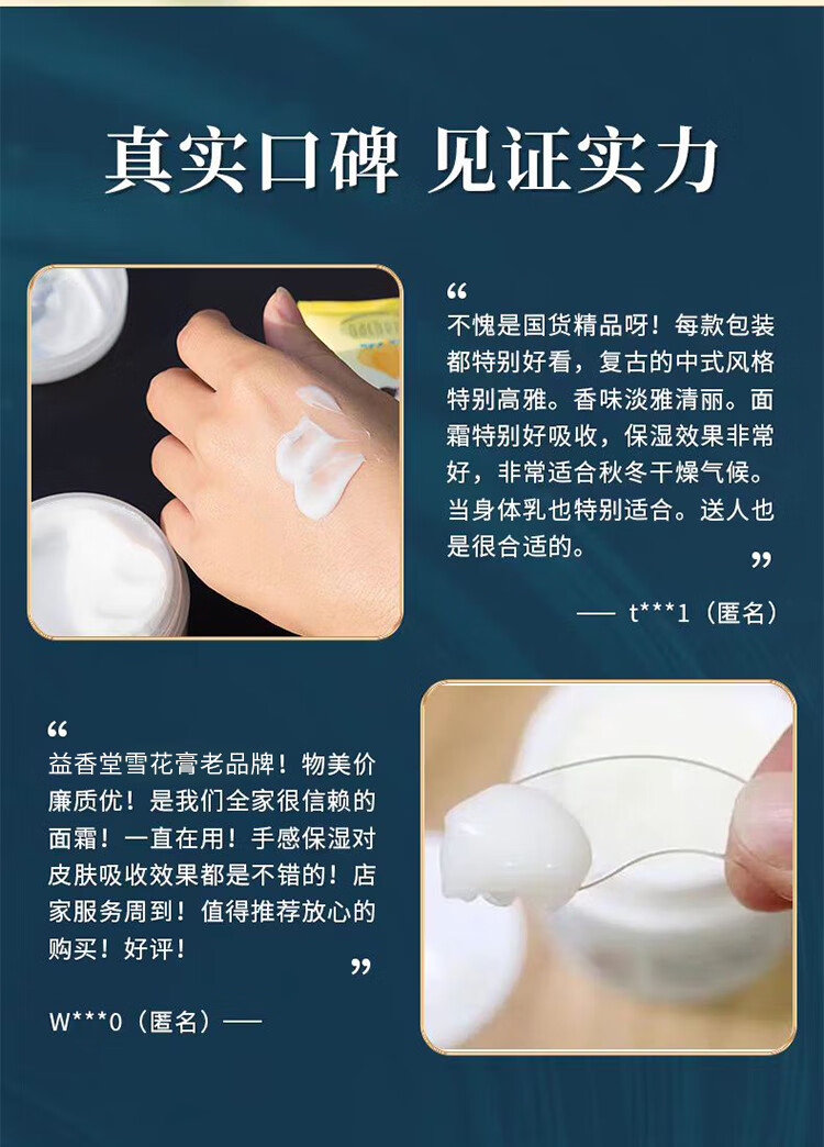 益香堂【国货之光】老上海雪花膏复古补水肌肤润肤霜护手霜温和配方包邮 320g(4盒(山茶花+芍药+玉兰+夜来香)