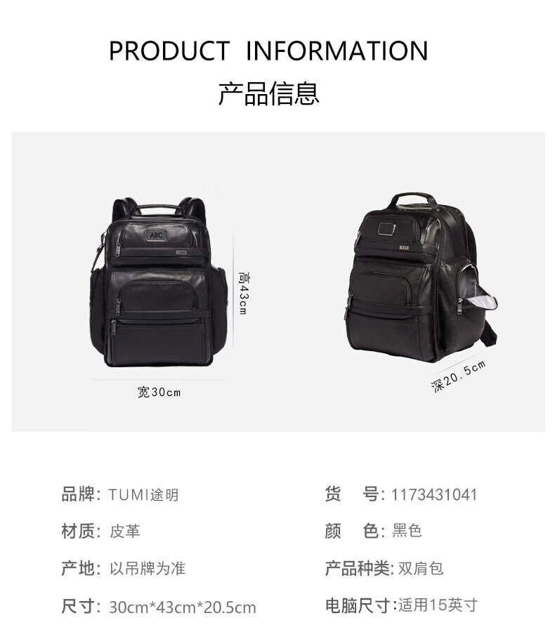 途明(TUMI)ALPHA3男士双肩包电脑背包商务真皮09603580DL3生日礼物