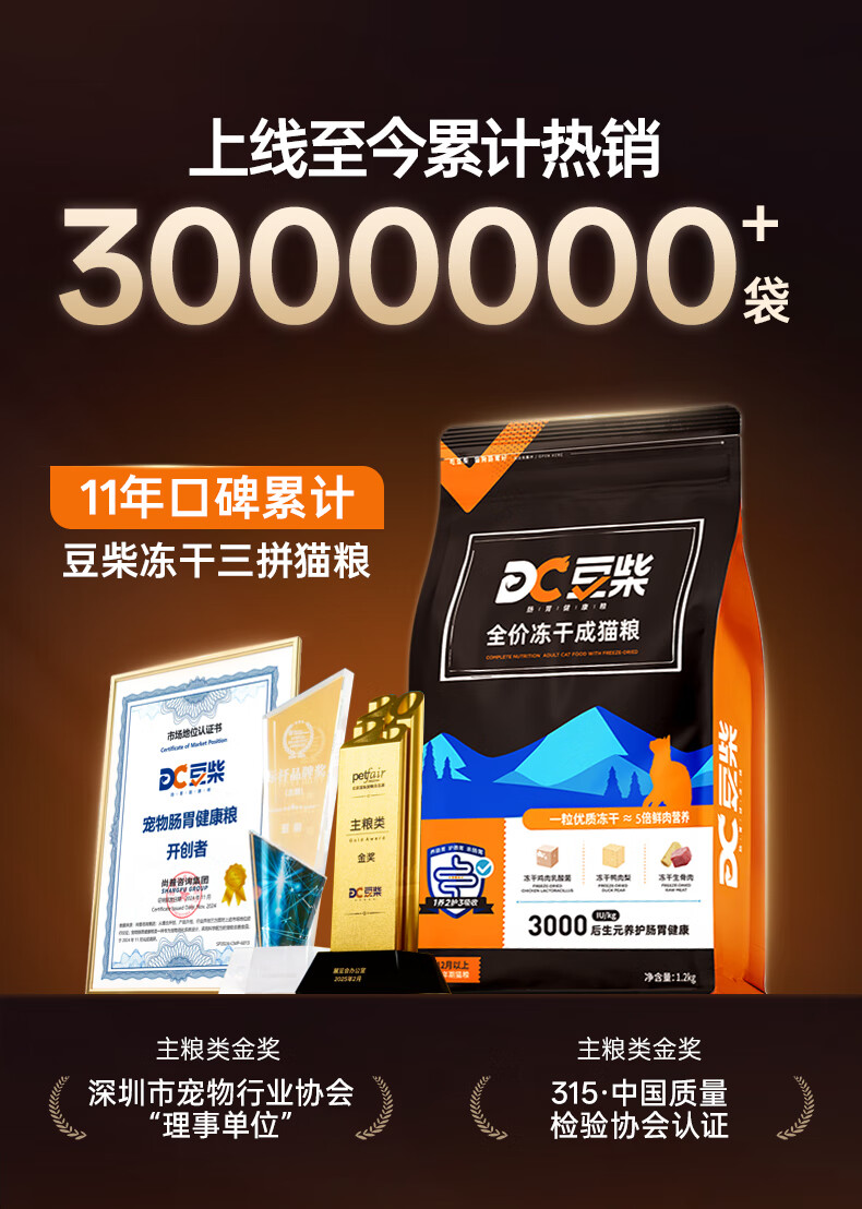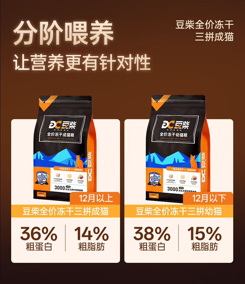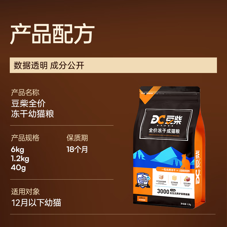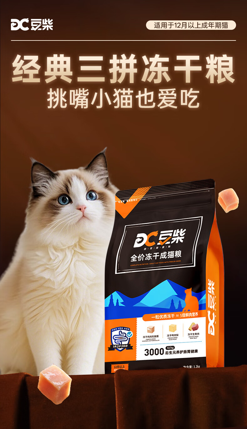 豆柴(docile)冻干三拼成猫粮无谷天然全价粮有益菌支持肠道健康猫主粮6kg