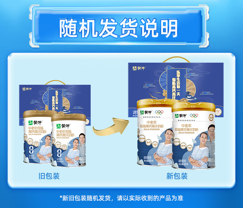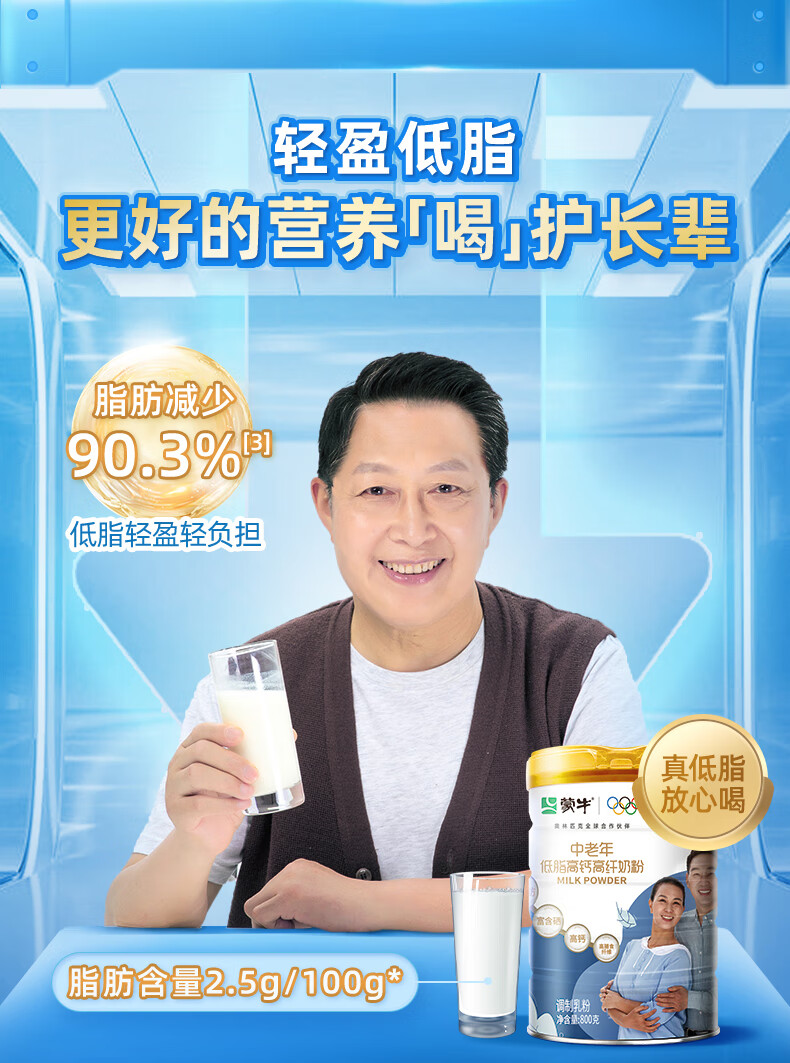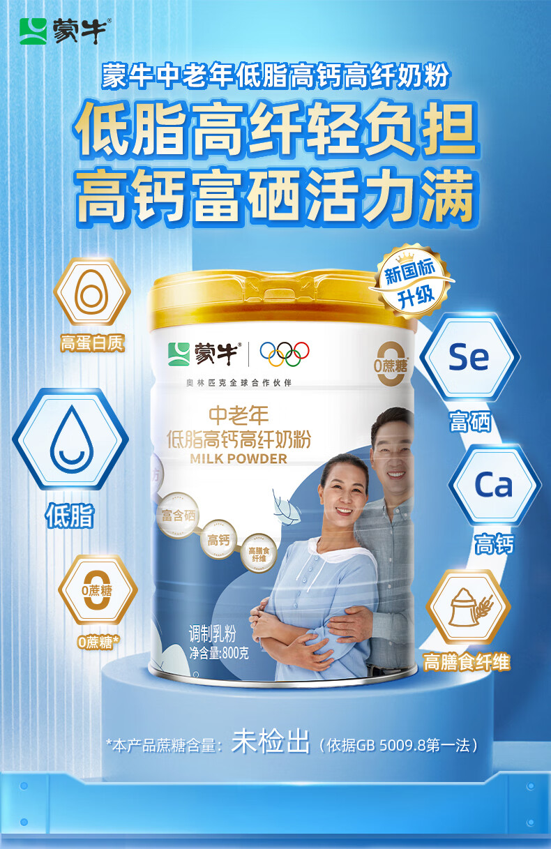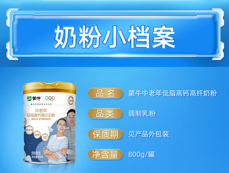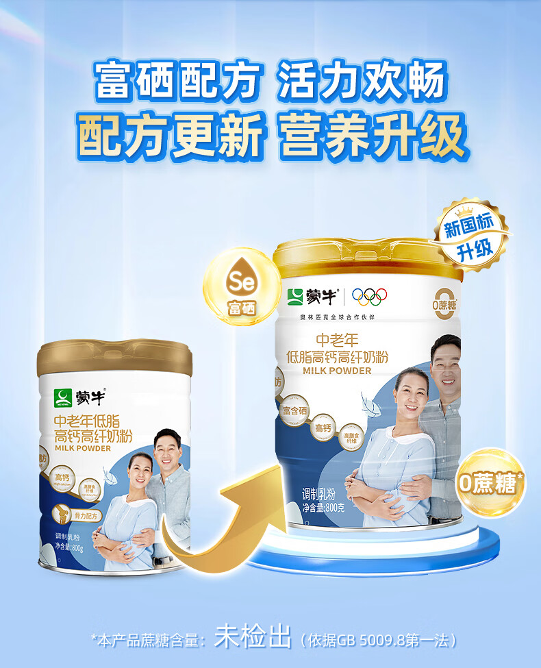 蒙牛低脂高钙高纤中老年奶粉800g*2罐礼盒装富含膳食纤维送礼爸妈