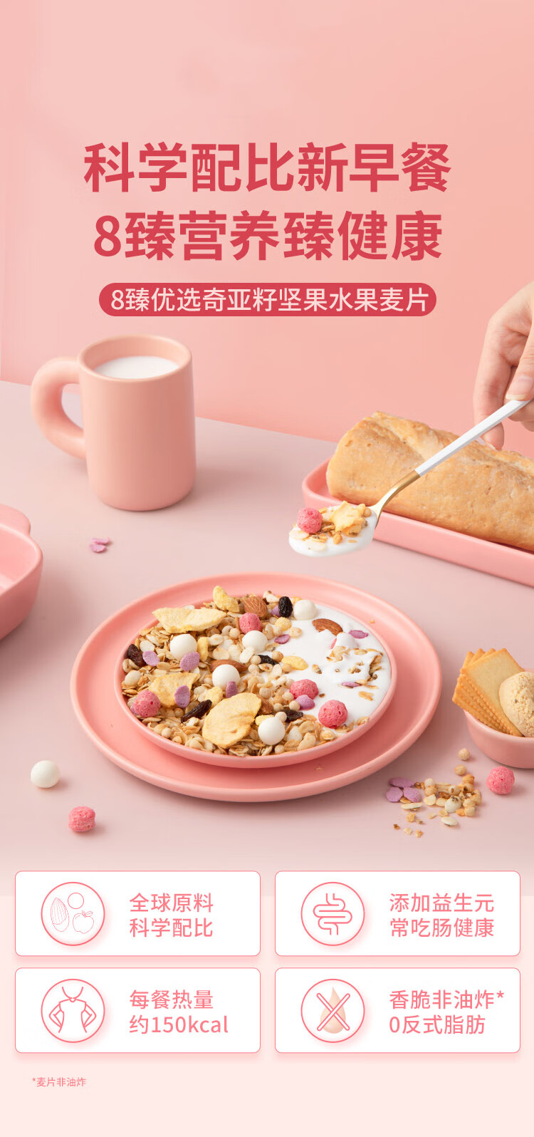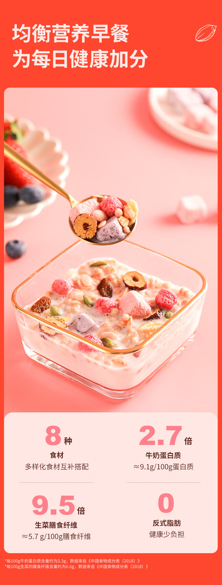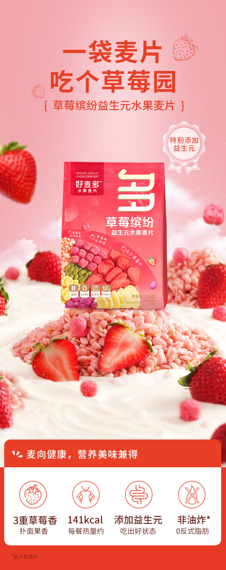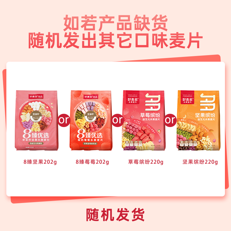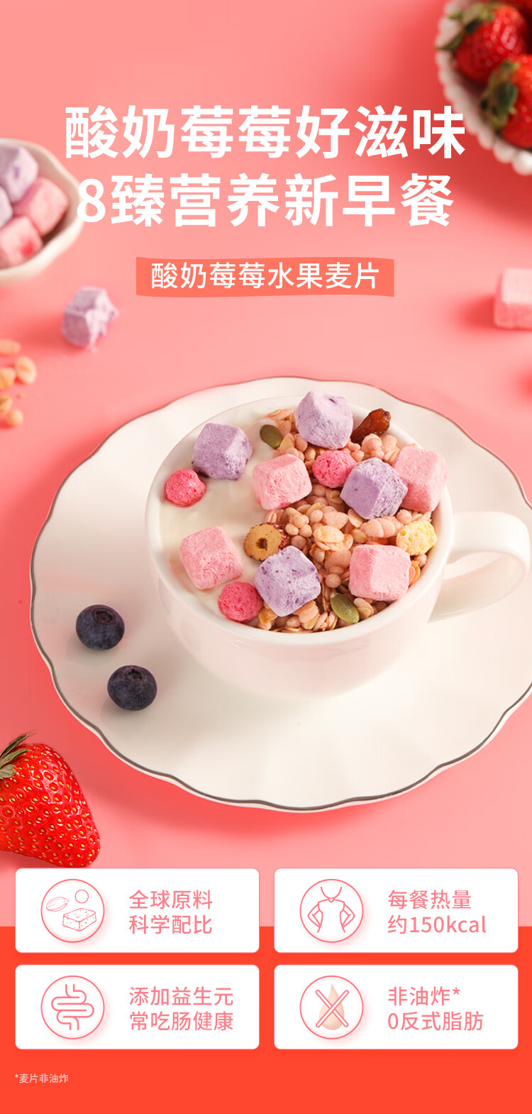 好麦多【选3活动】酸奶坚果水果燕麦片四种口味奇亚籽即食代餐早餐饱腹 8臻酸奶莓莓202g*1袋