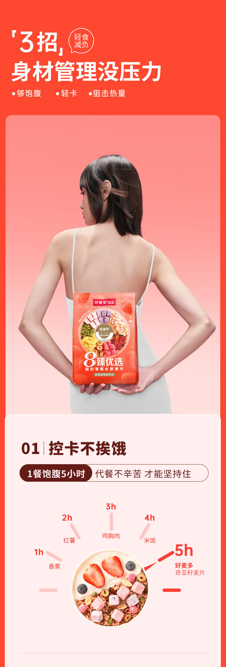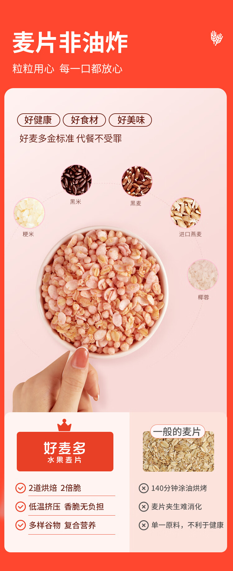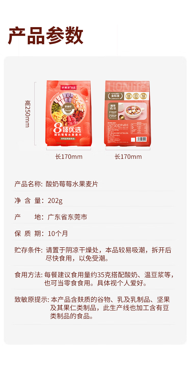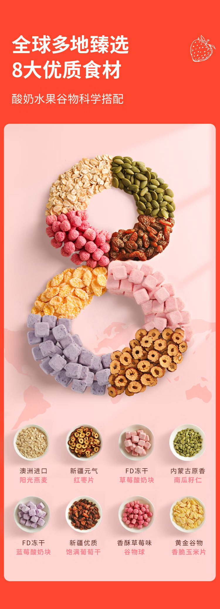好麦多【选3活动】酸奶坚果水果燕麦片四种口味奇亚籽即食代餐早餐饱腹 8臻酸奶莓莓202g*1袋