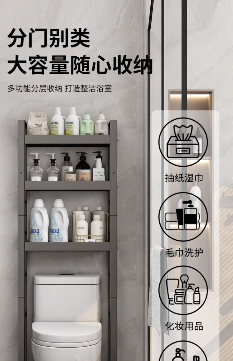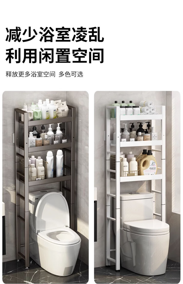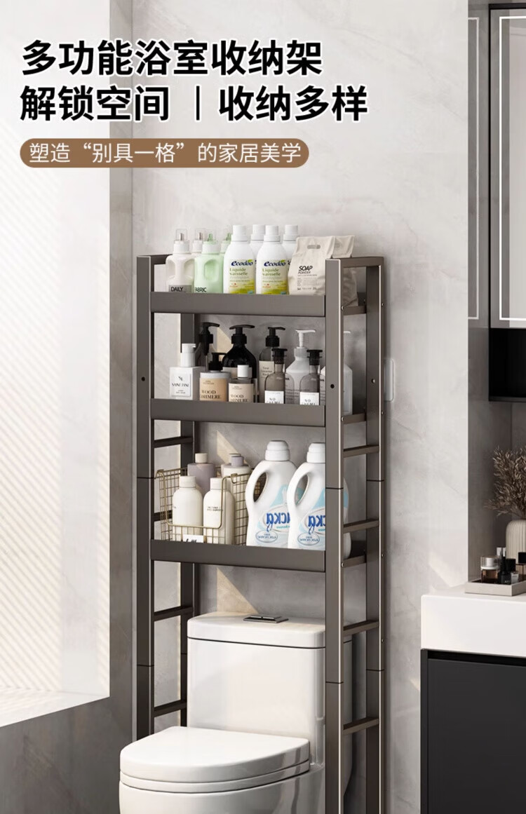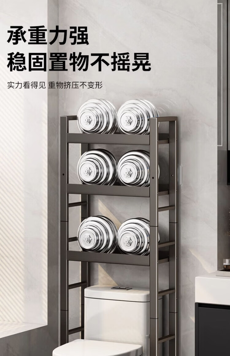 WCZ德国卫生间置物架厕所靠墙落地多层洗手间浴室放智能马桶上方收纳 双层 枪灰色加粗支架