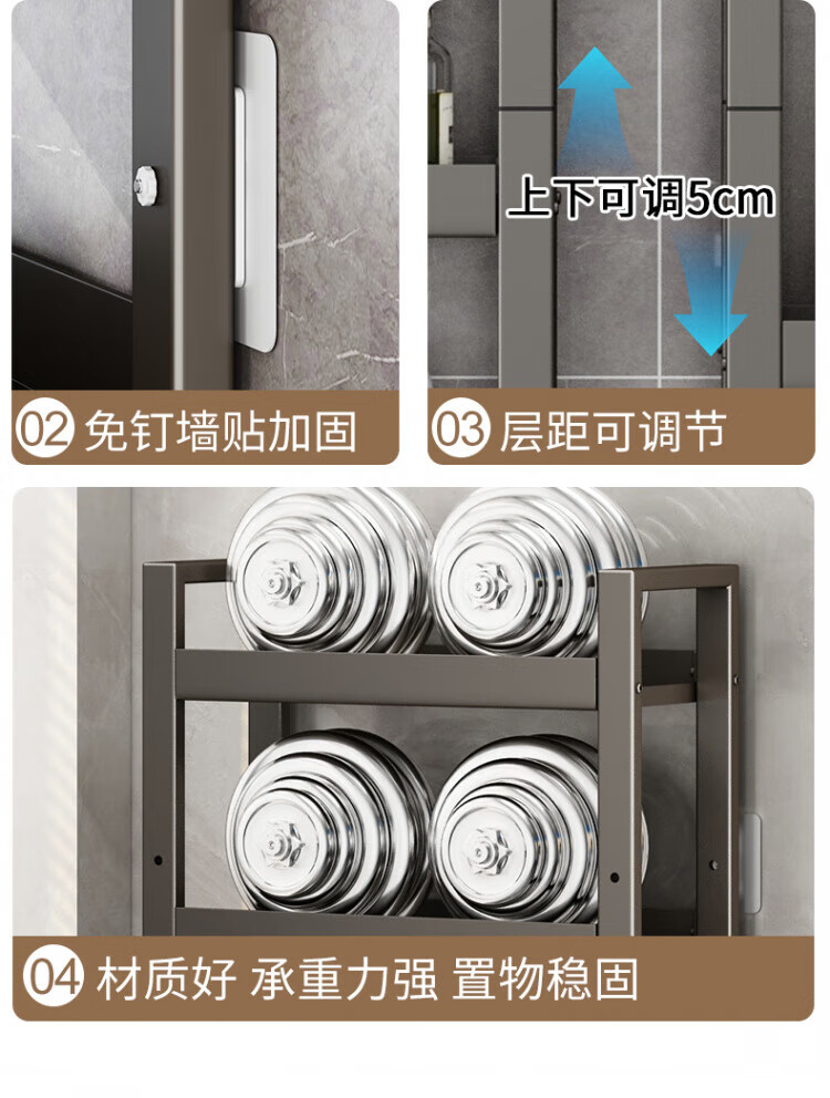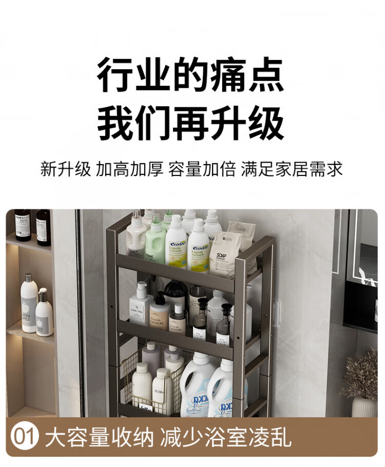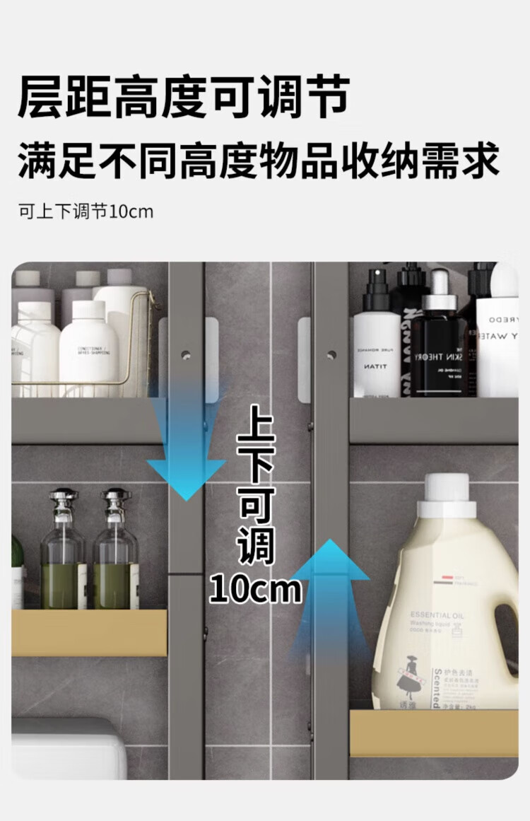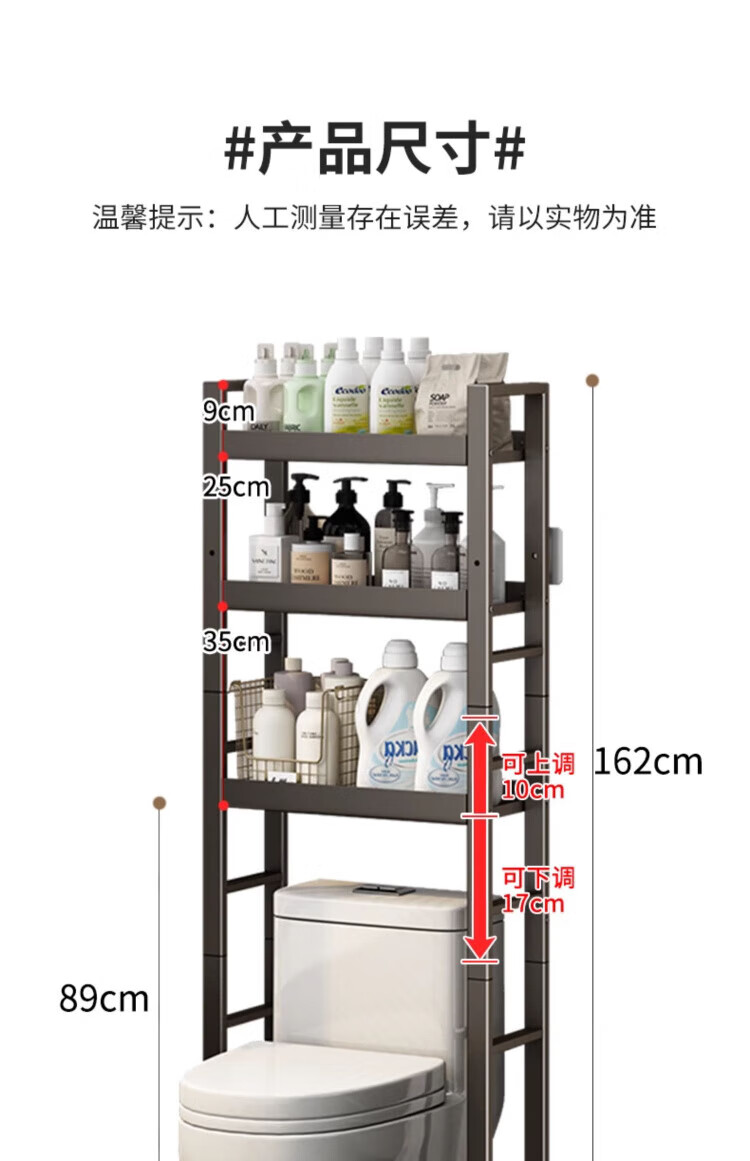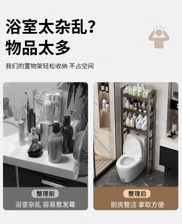 WCZ德国卫生间置物架厕所靠墙落地多层洗手间浴室放智能马桶上方收纳 双层 枪灰色加粗支架