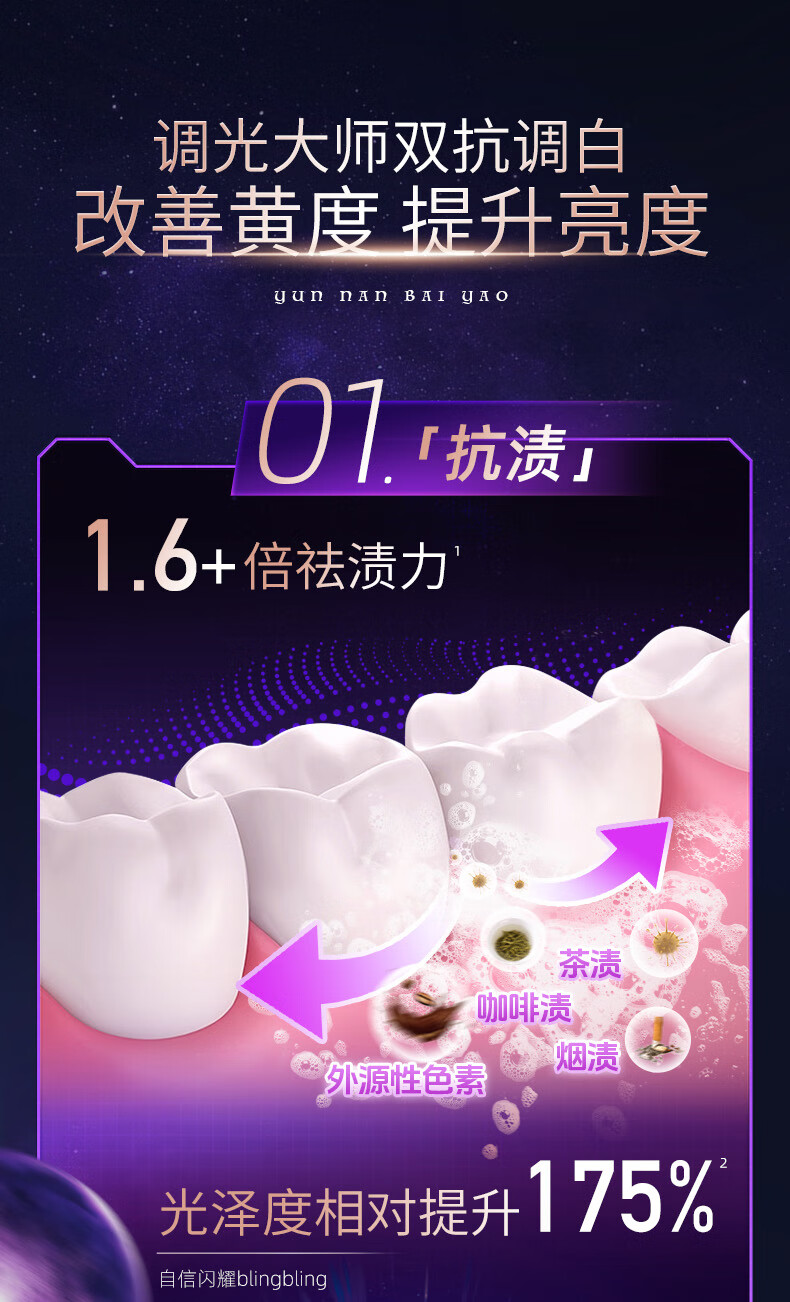 云南白药新品光钻白系列 美白牙膏亮白去黄去渍抗敏抗龋桂花105g+缤果105g