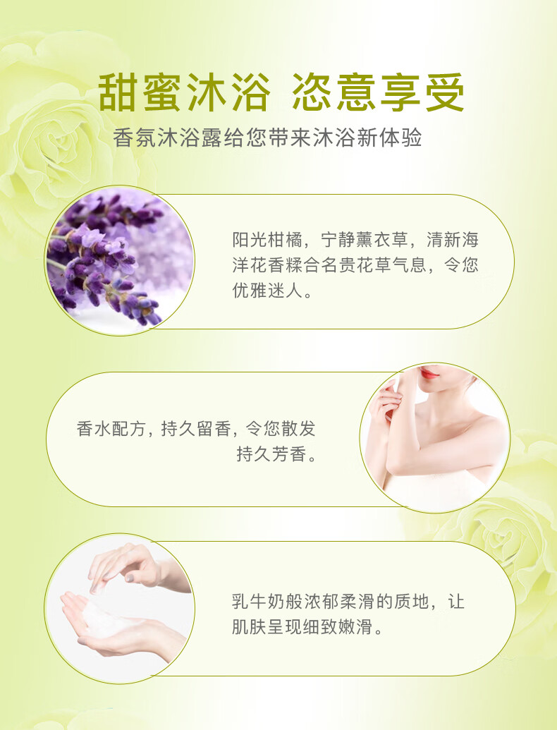 琪瑟香氛花瓣沐浴露滋润保湿樱花玫瑰香味持久留香身体清洁沐浴液男女 玫瑰+樱花500ml#2瓶