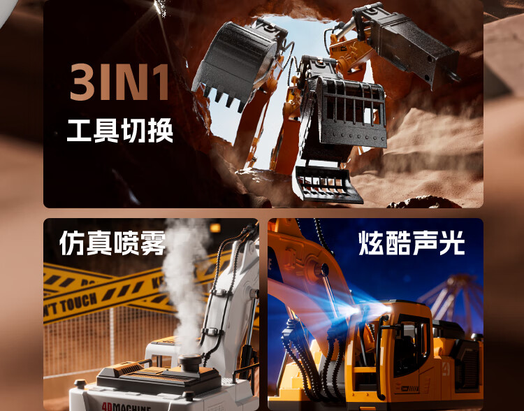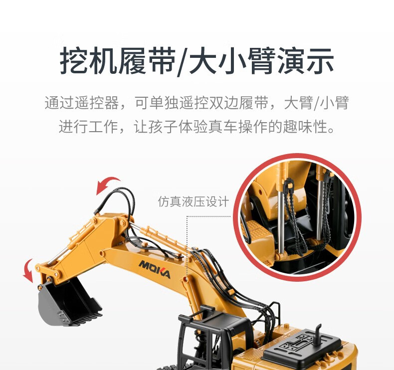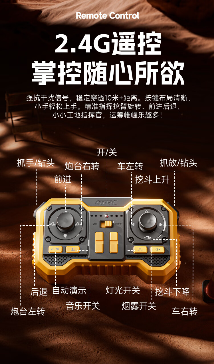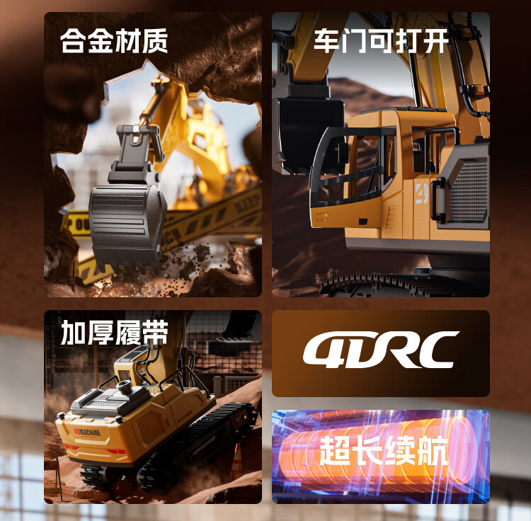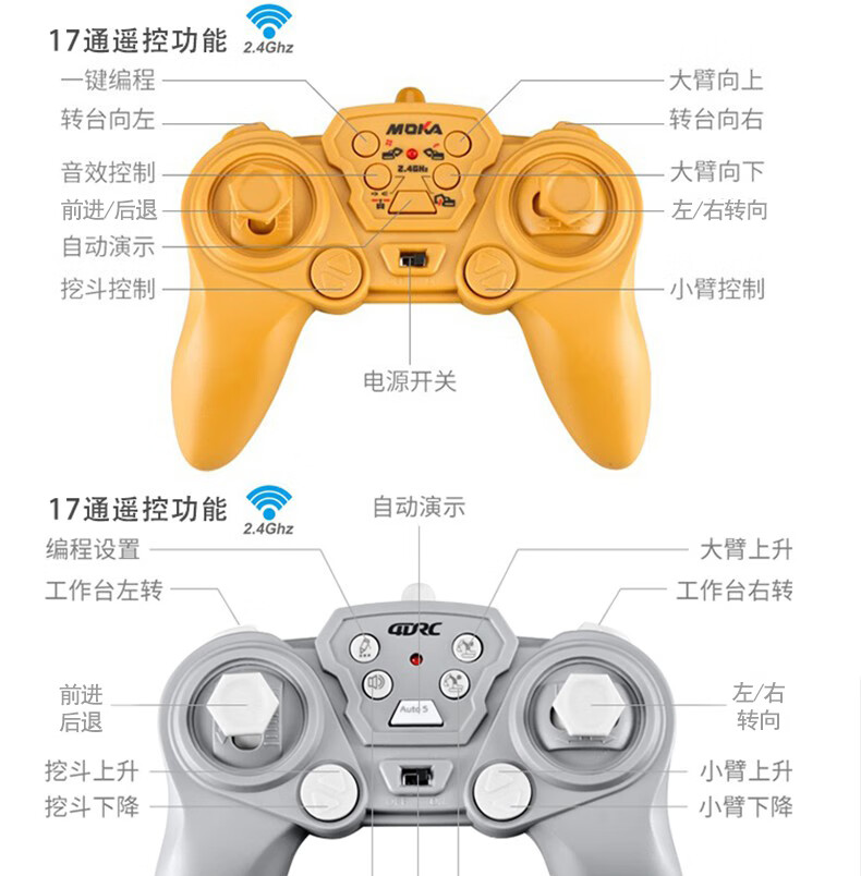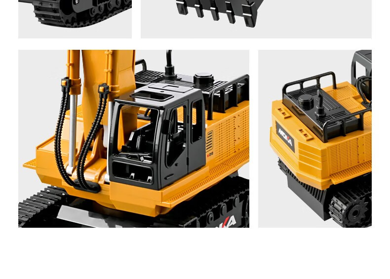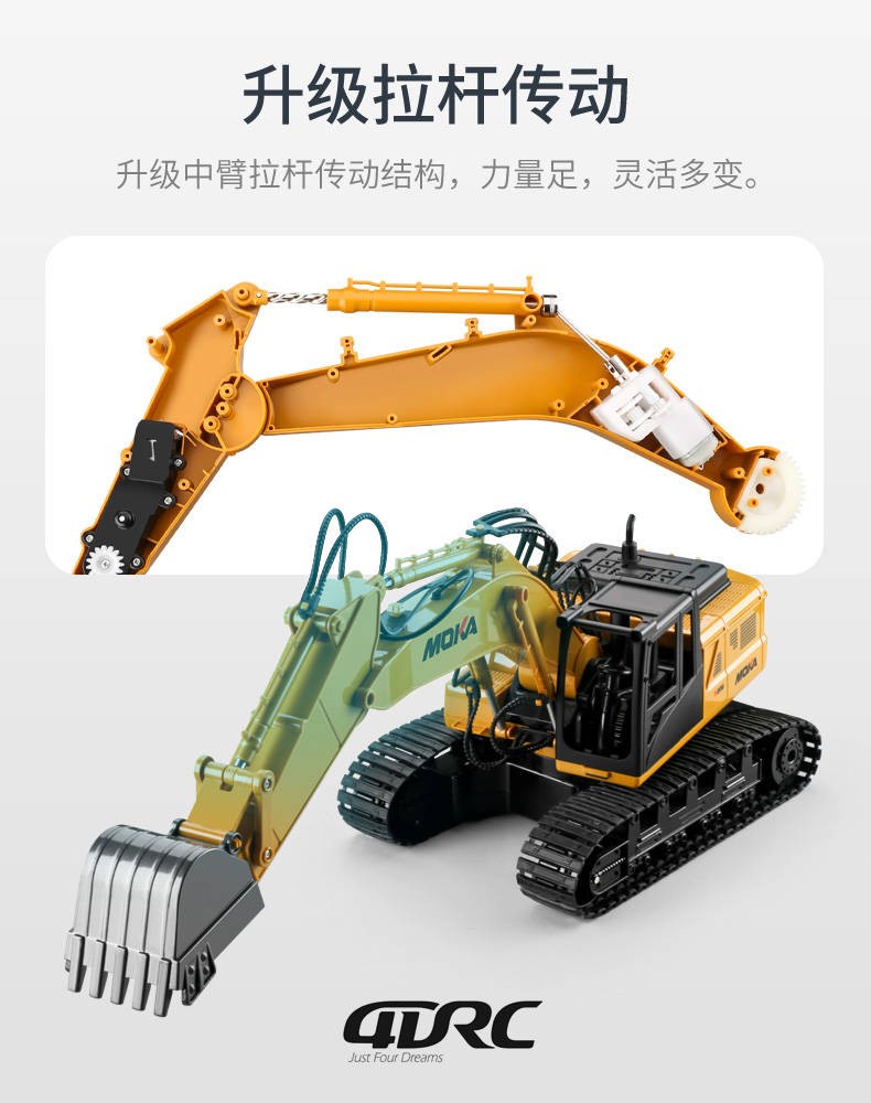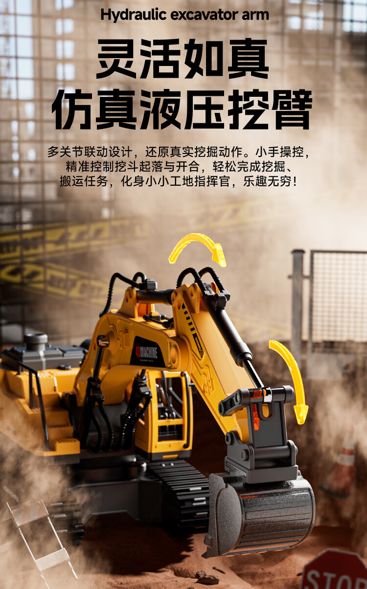 4DRC合金挖掘机遥控汽车挖土工程卡车模型儿童3-6岁玩具男孩生日礼物 【12通+喷雾+合金挖斗】黄色双电