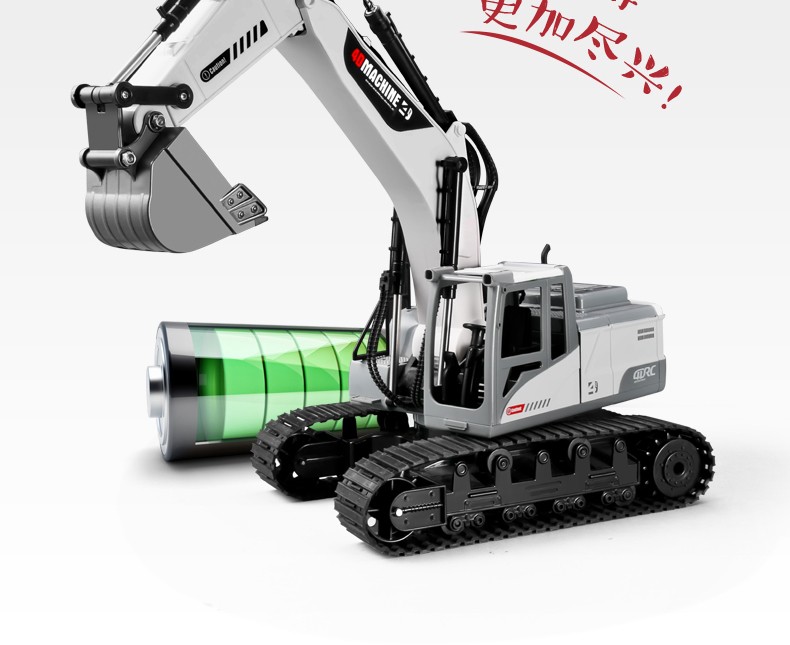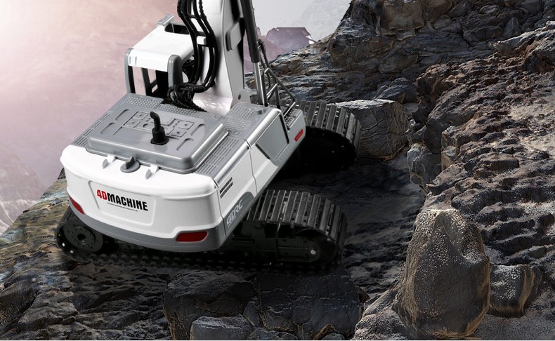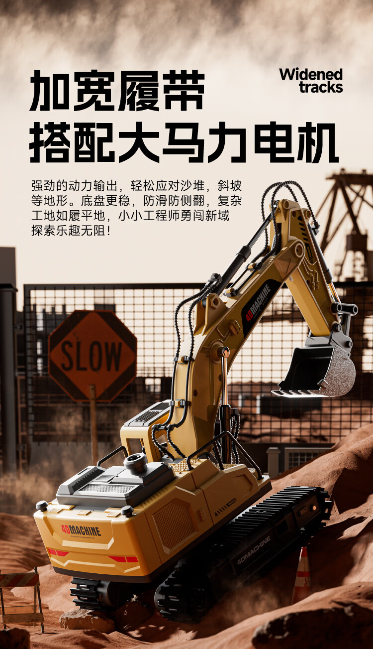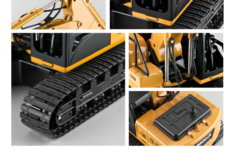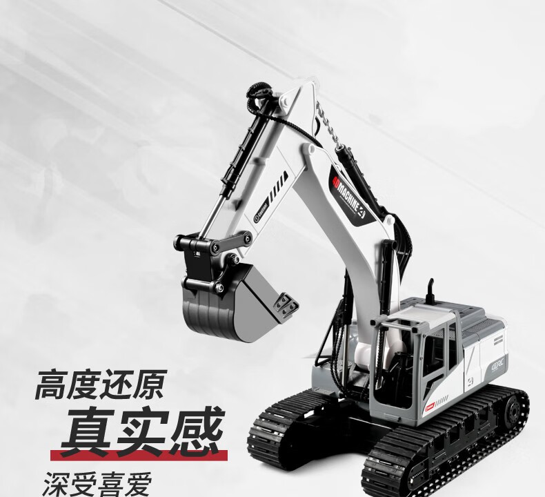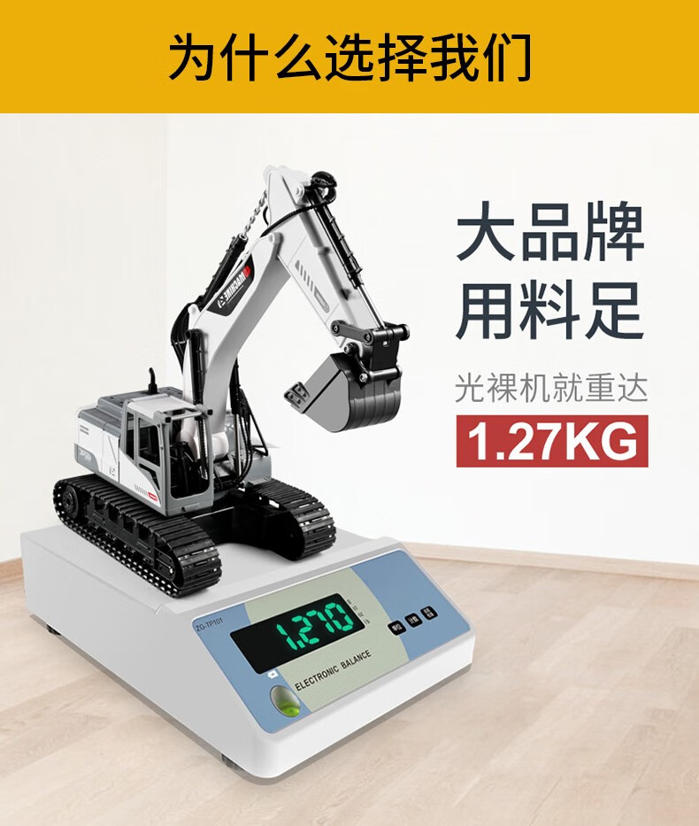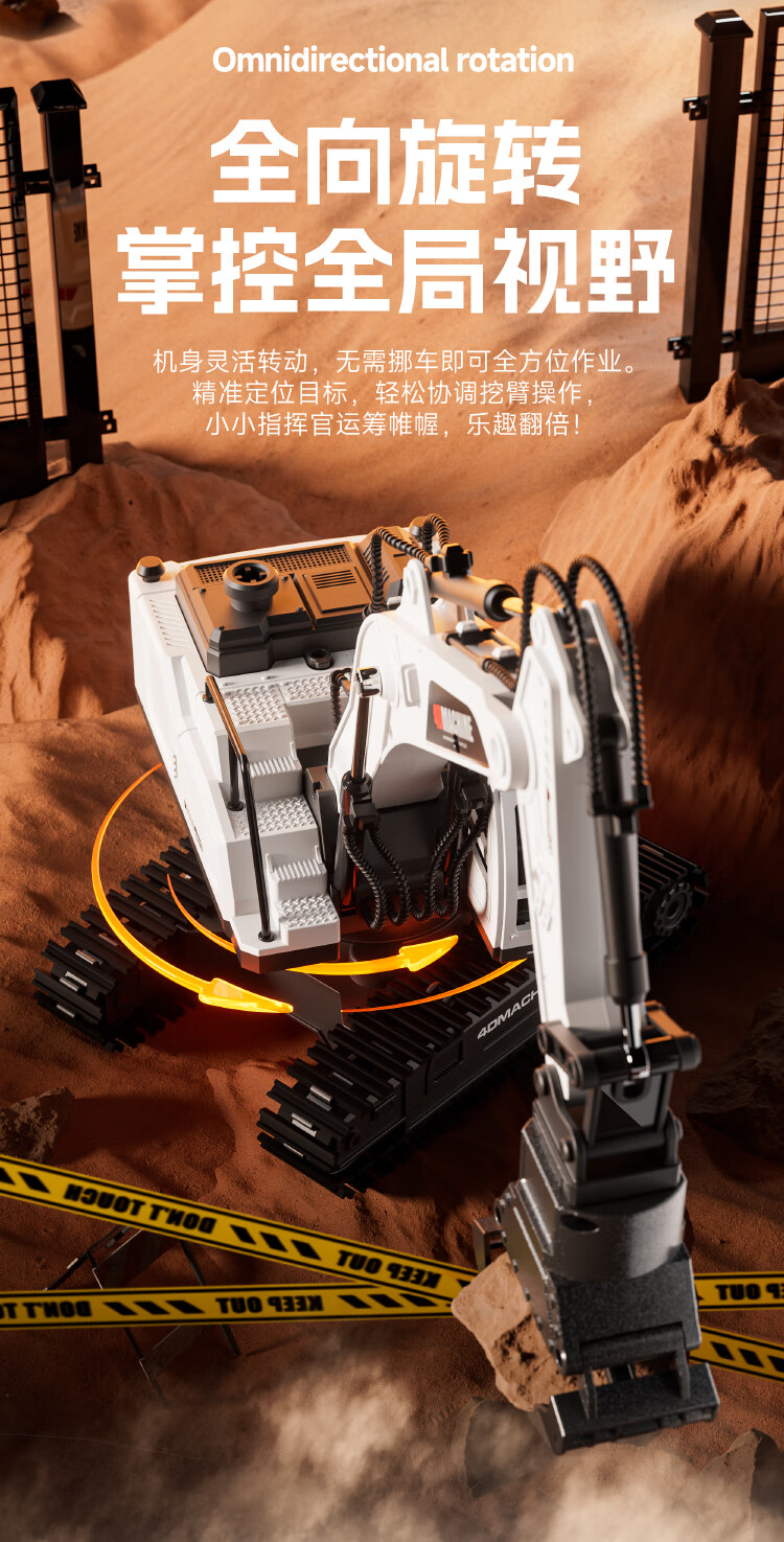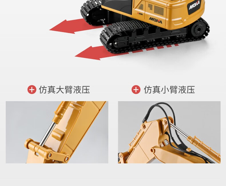4DRC合金挖掘机遥控汽车挖土工程卡车模型儿童3-6岁玩具男孩生日礼物 【12通+喷雾+合金挖斗】黄色双电