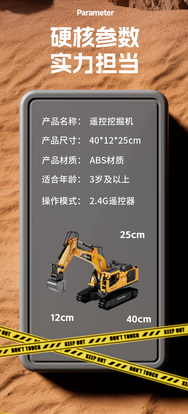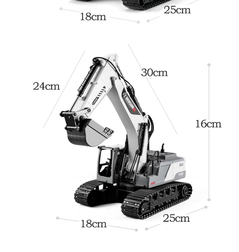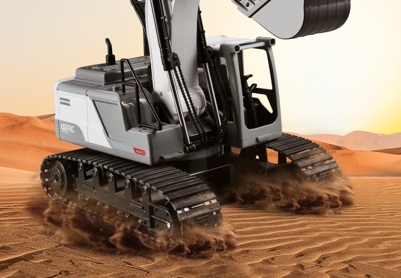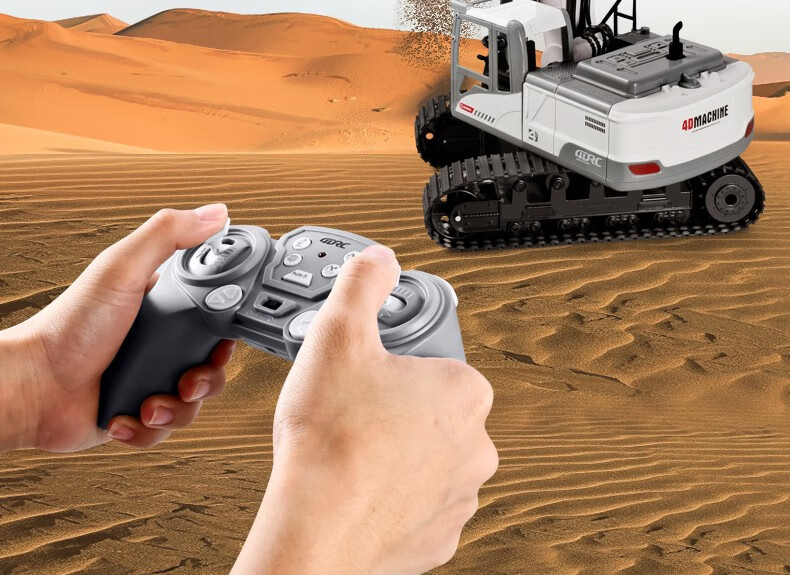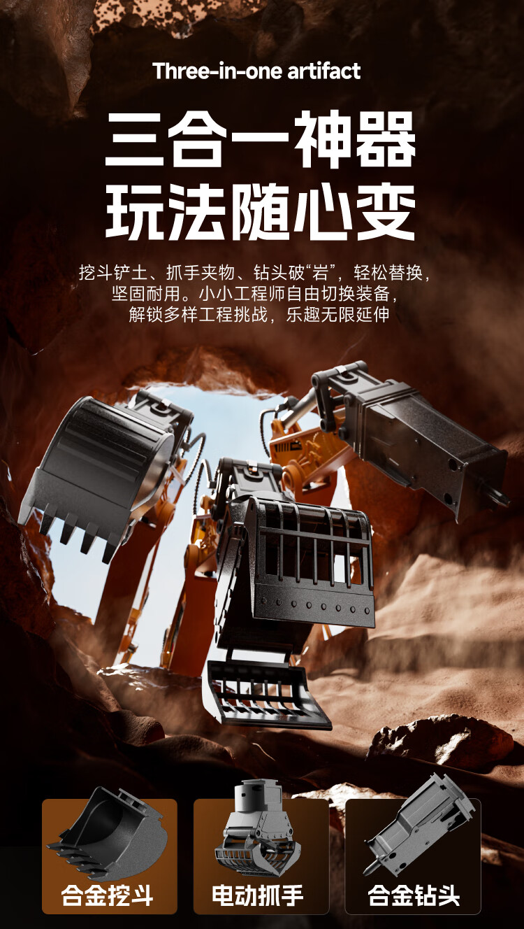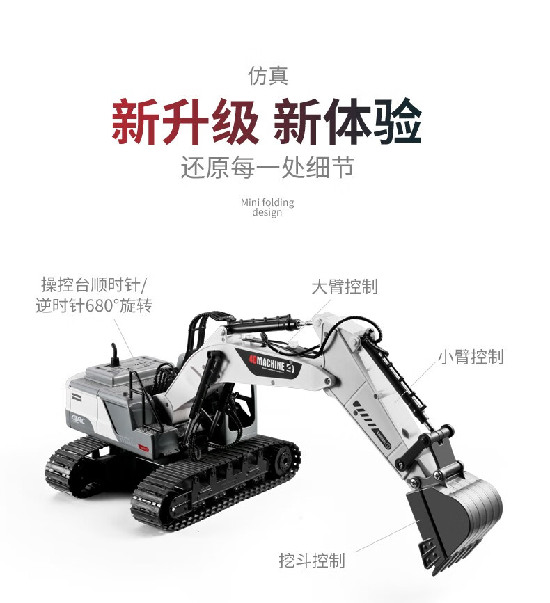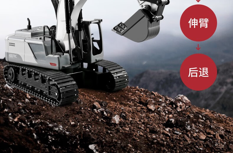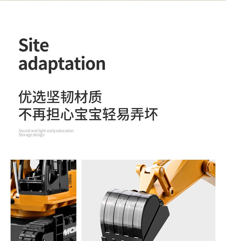 4DRC合金挖掘机遥控汽车挖土工程卡车模型儿童3-6岁玩具男孩生日礼物 【12通+喷雾+合金挖斗】黄色双电