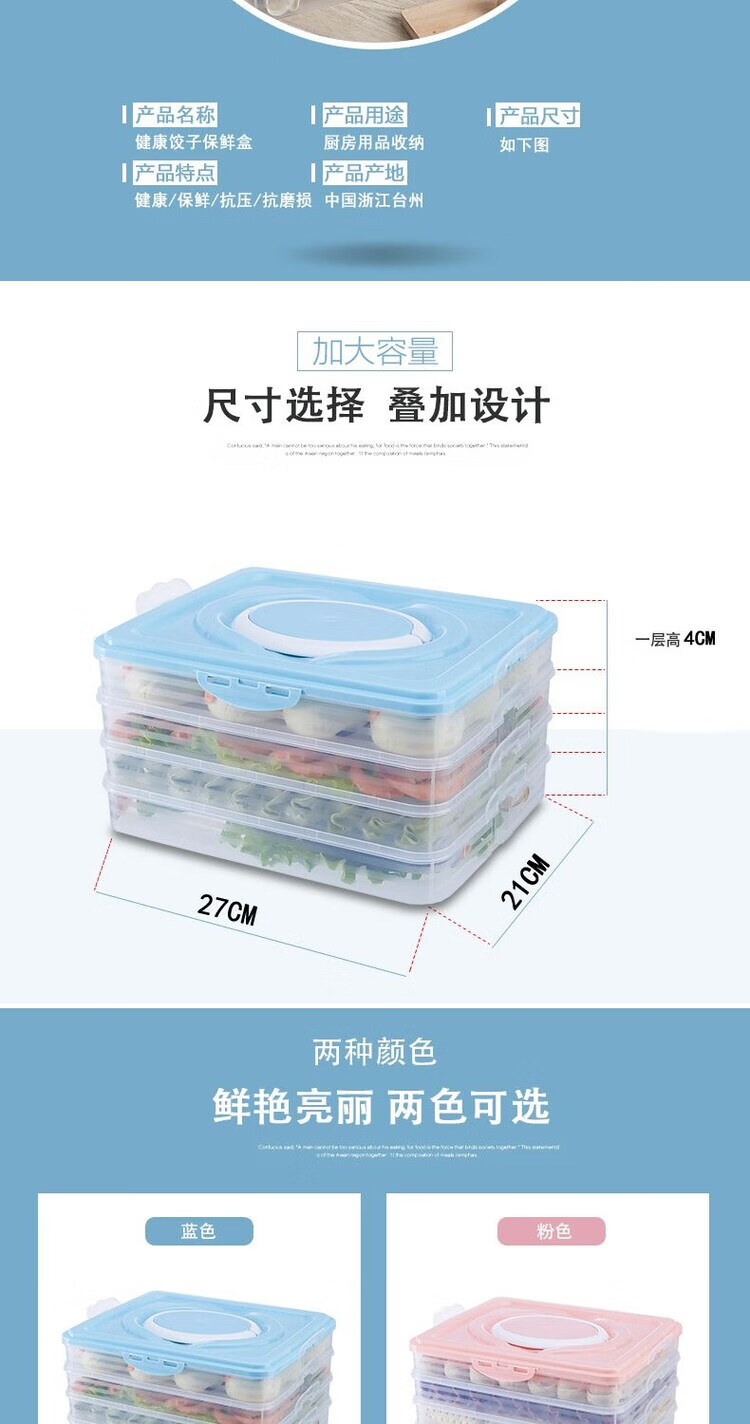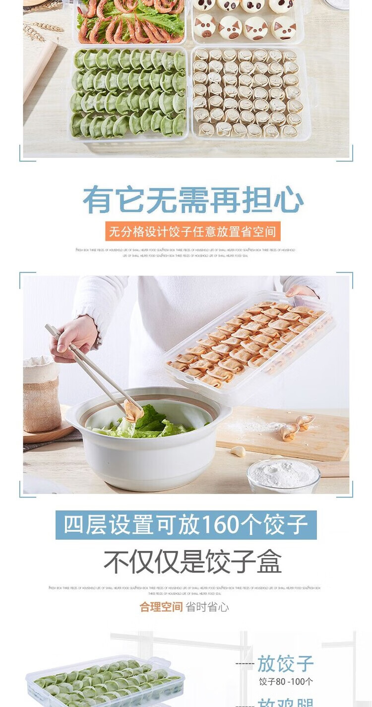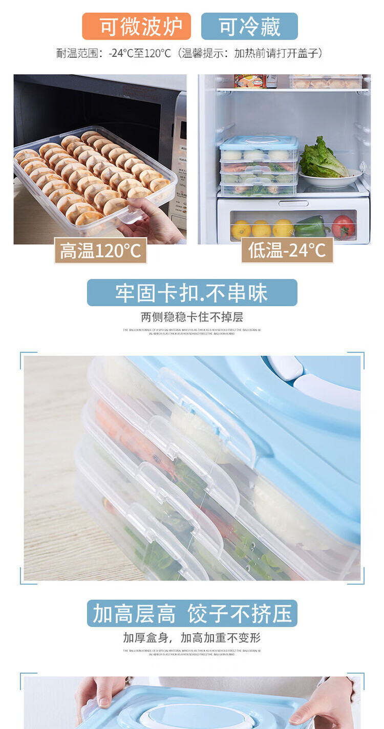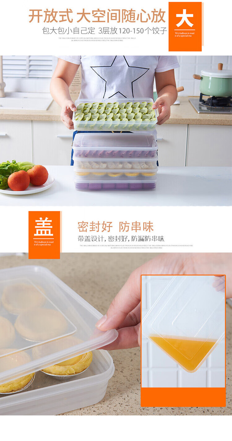 DEATKN【送包饺器】冷冻饺子盒多层家庭装冰箱速冻水饺盒烧麦包子馄饨盒 透明色【食品级/安全材质】破损包赔 大号【一层一盖】(装饺子约40个)