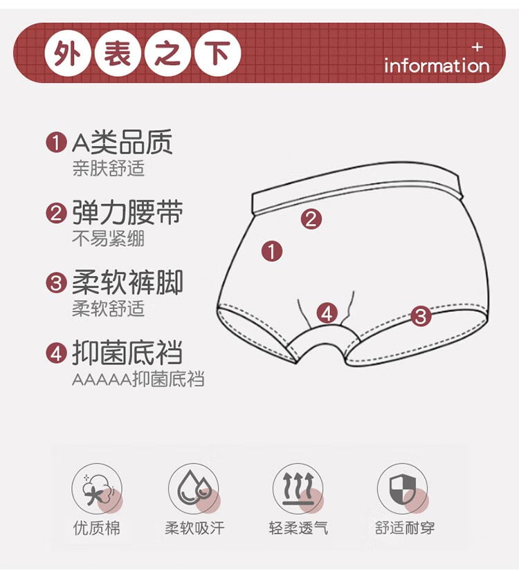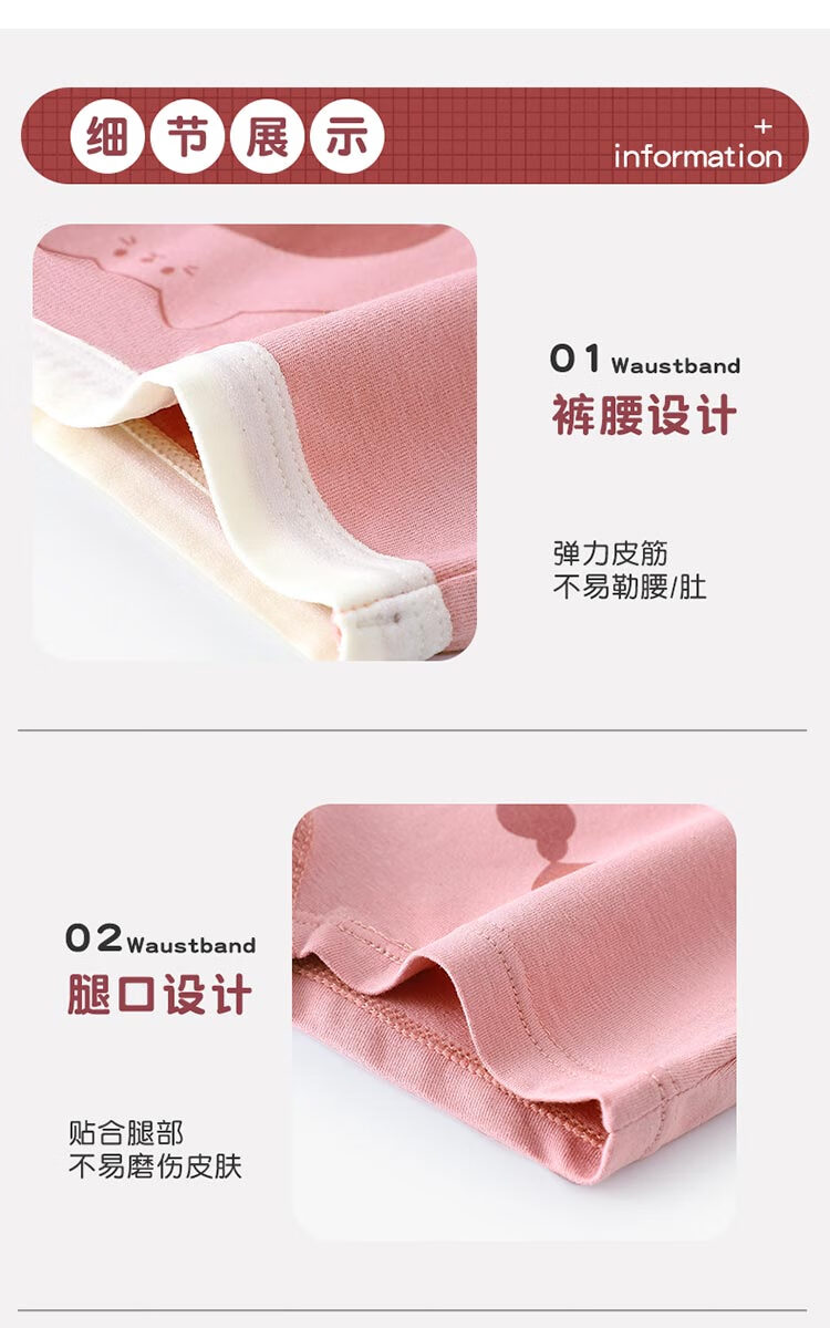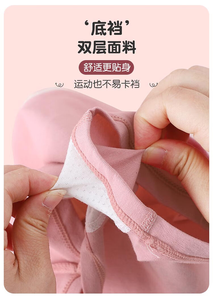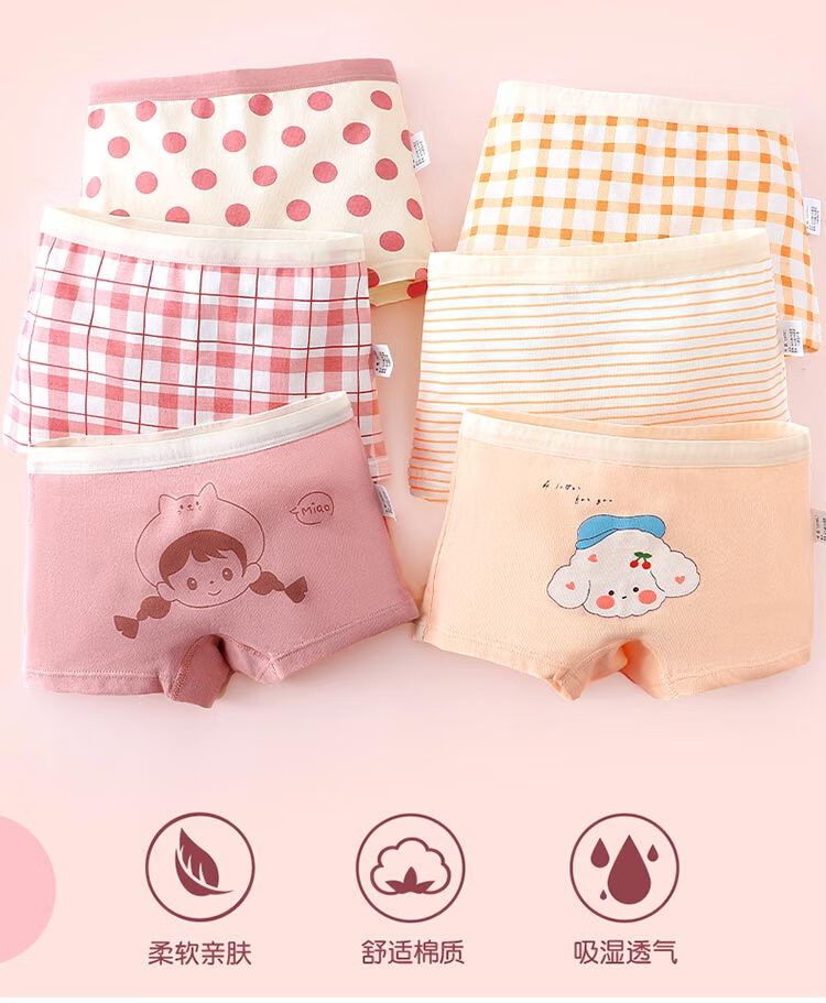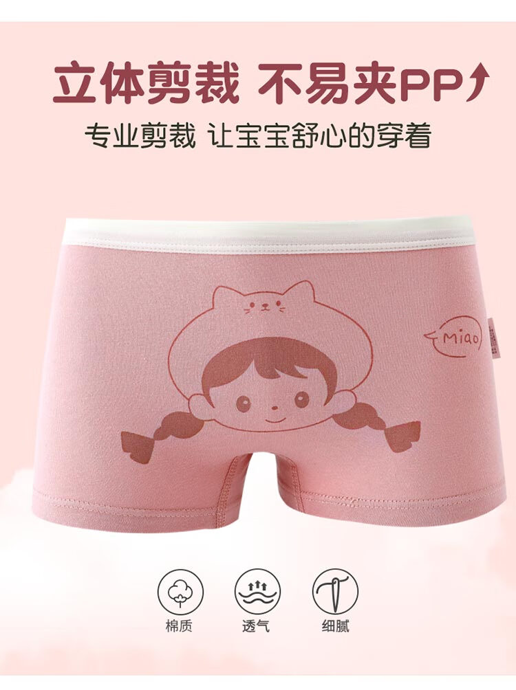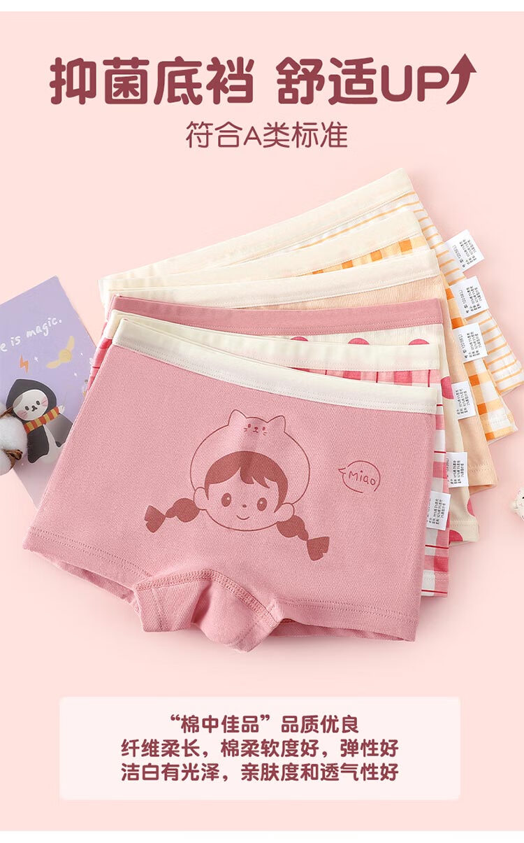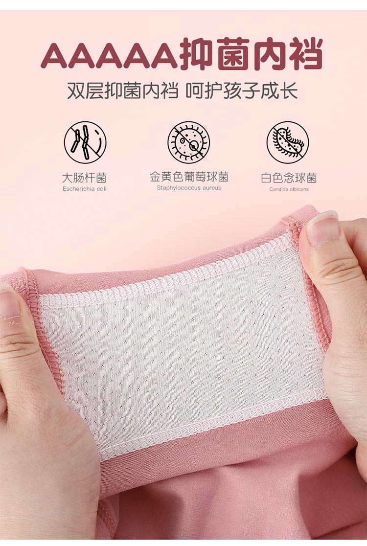冰雪木棉儿童内裤女童A类优质棉抑菌档平角裤吸汗透气中大童四角短裤