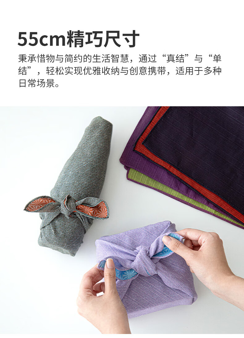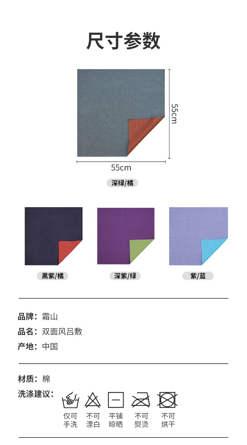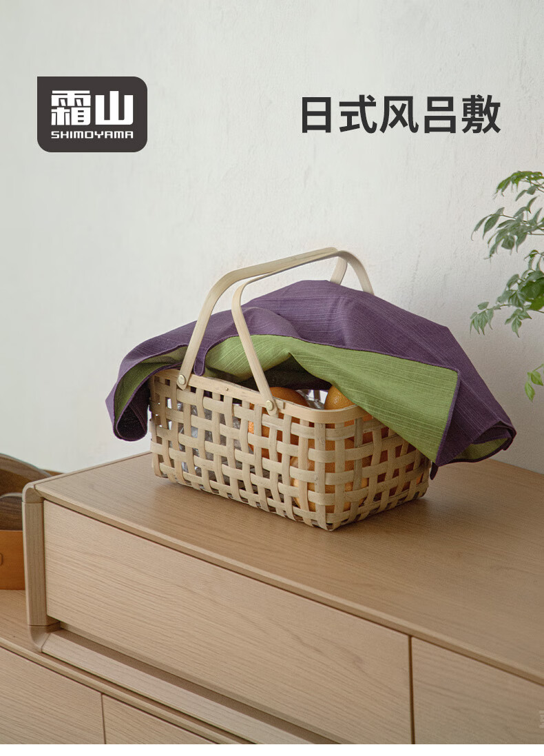 霜山包袱布日式风吕敷diy方巾棉质便当布餐垫双面布艺礼盒装饰布 【深紫/绿】长55*宽55cm