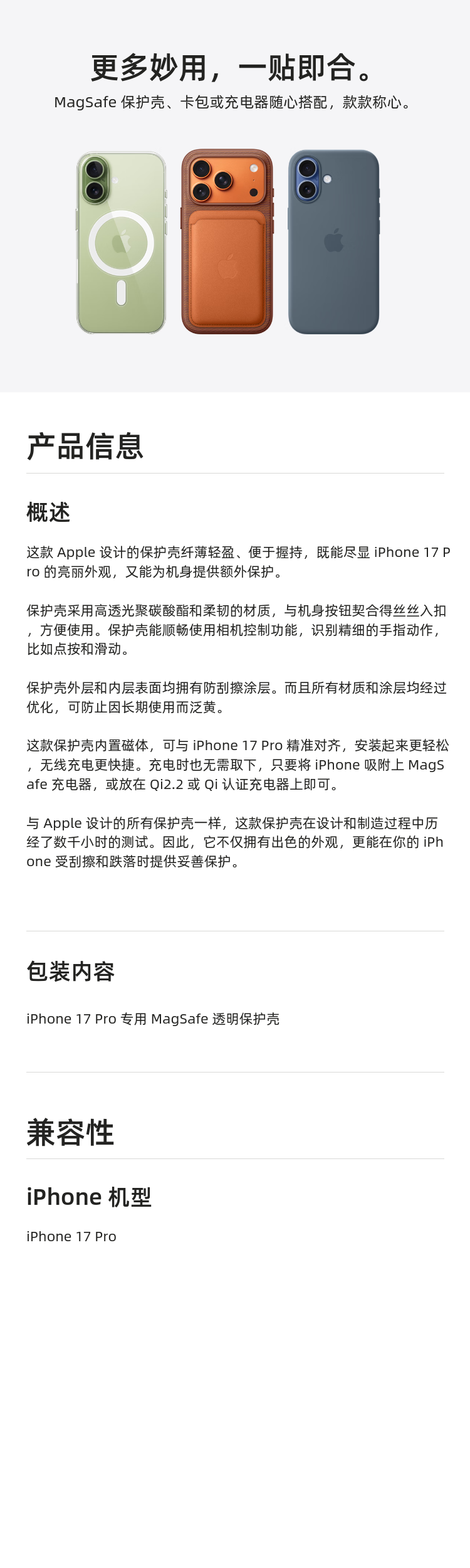 Apple/苹果 iPhone 17Pro透明手机壳 磁吸手机壳苹果17pro手机壳苹果手机壳半包