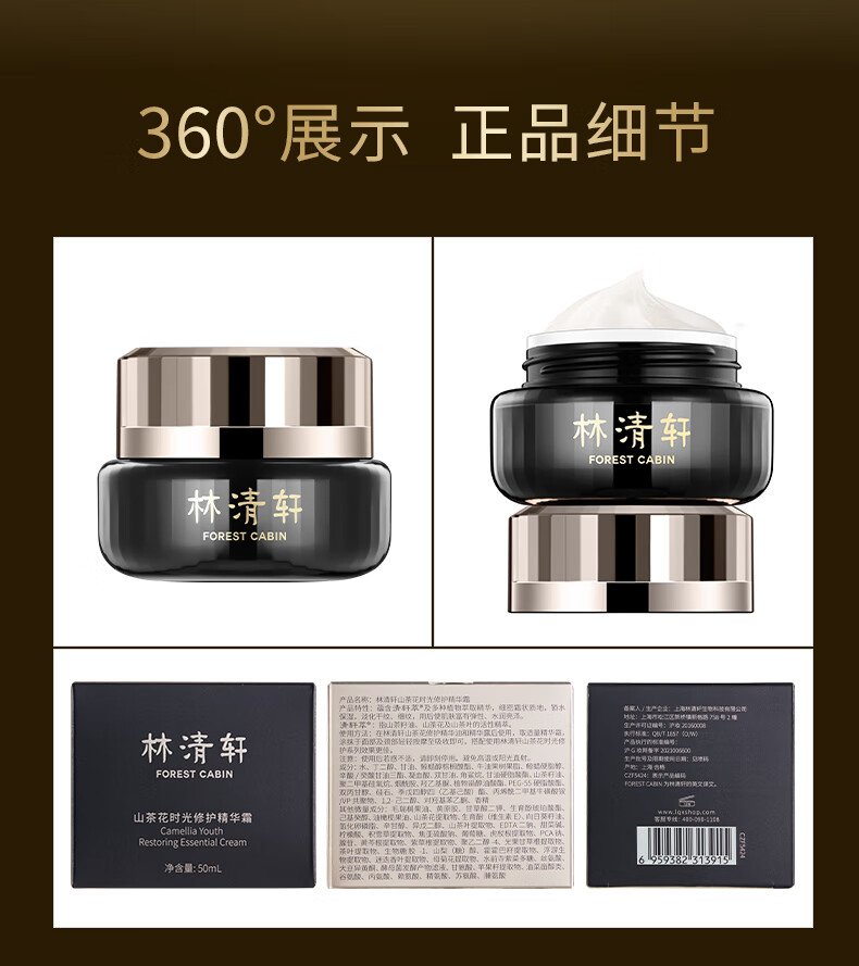 林清轩山茶花时光修护精华面霜抗皱淡纹抗皱补水保湿紧致礼物送人 15g