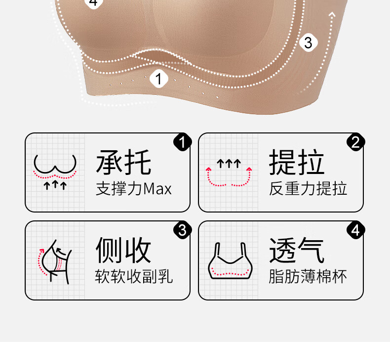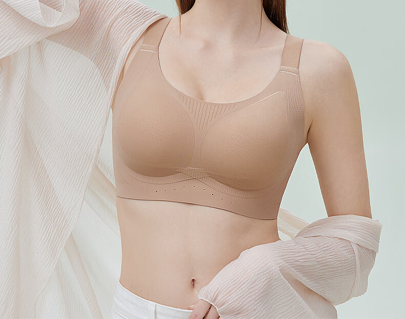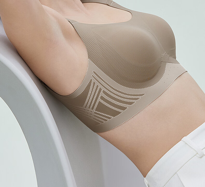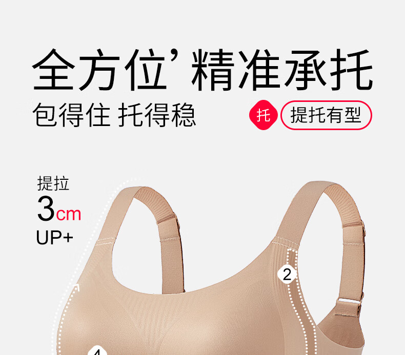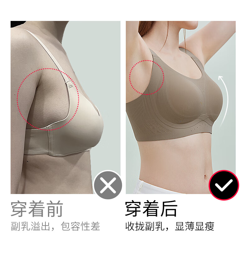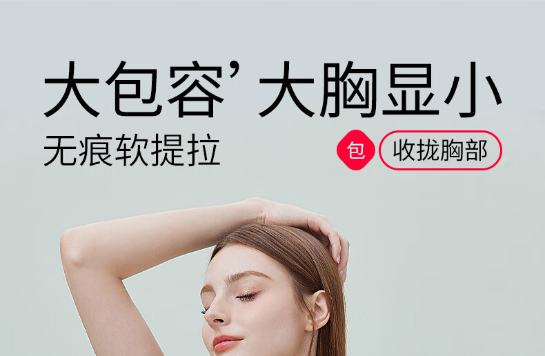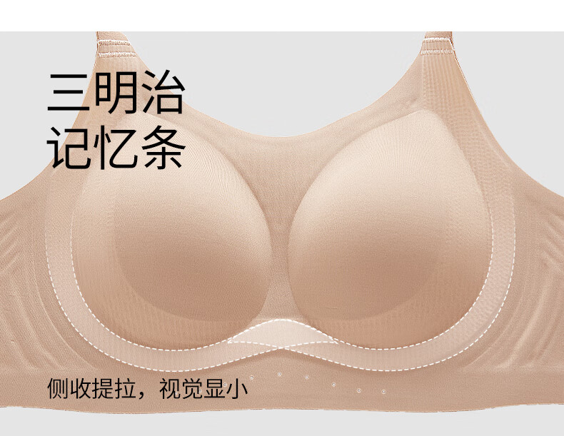 千奈美无痕粉底液内衣女士全罩杯大胸显小隐形不透收副乳文胸 白月灰 85B C 通杯