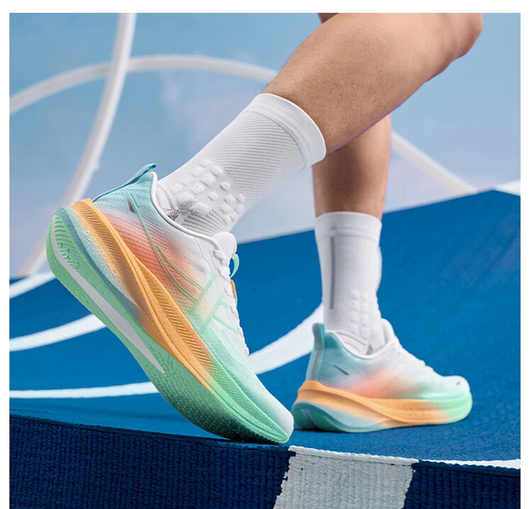 特步360X2.0LITE男竞训马拉松鞋轻弹舒适稳定支撑运动防滑耐磨跑鞋 经典白/荧光数码粉/天水碧 41