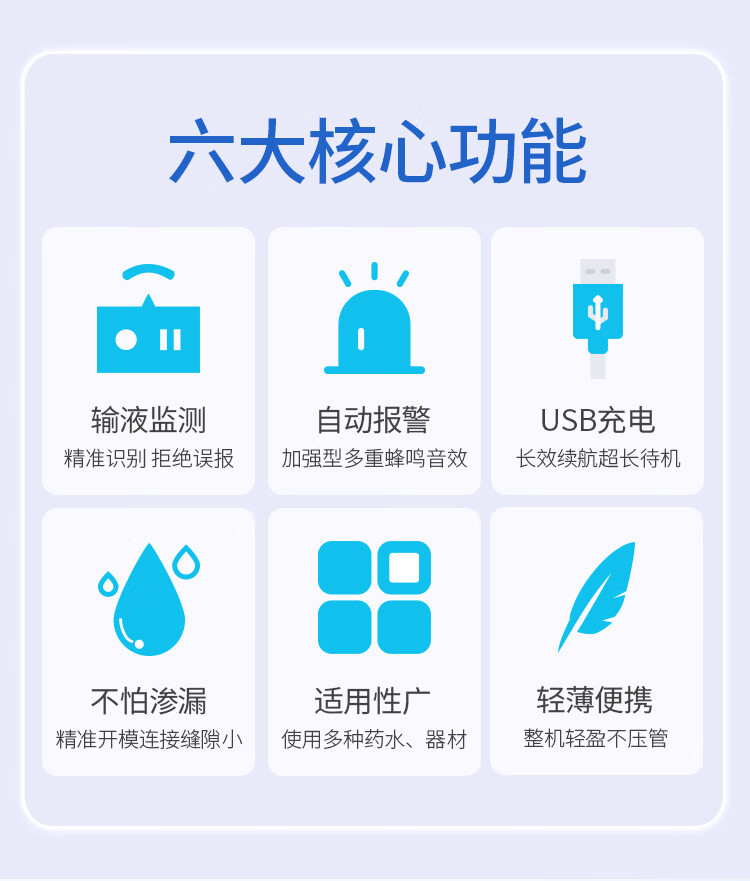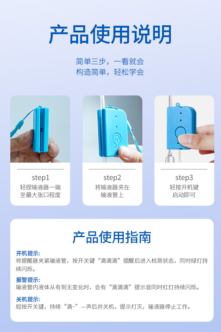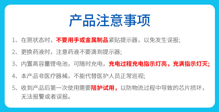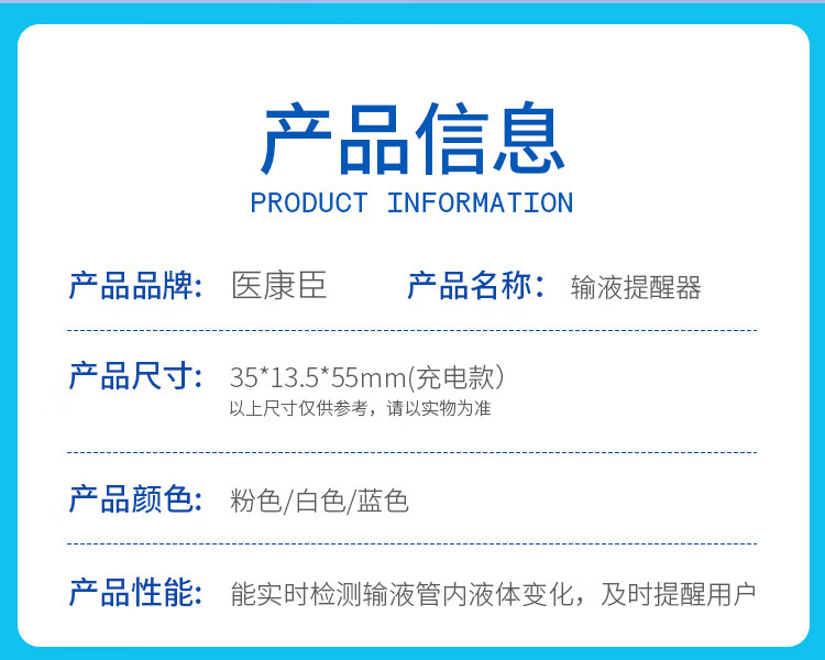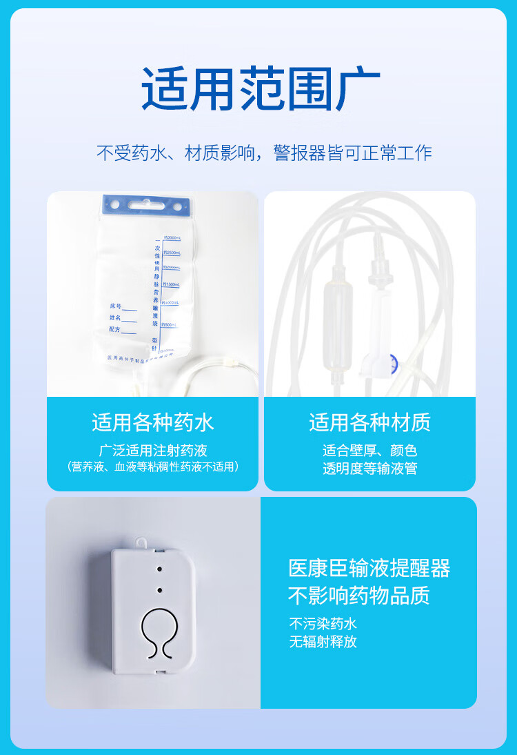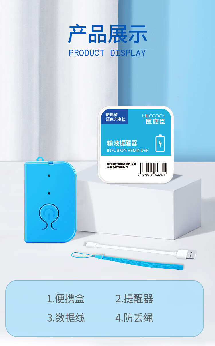 医康臣(UECONCH)输液报警器 智能自动提醒器吊瓶挂水医院陪护输液宝 蓝色充电款