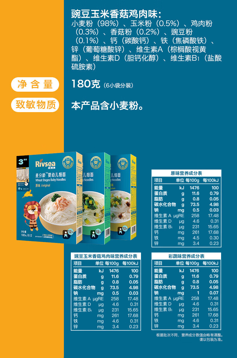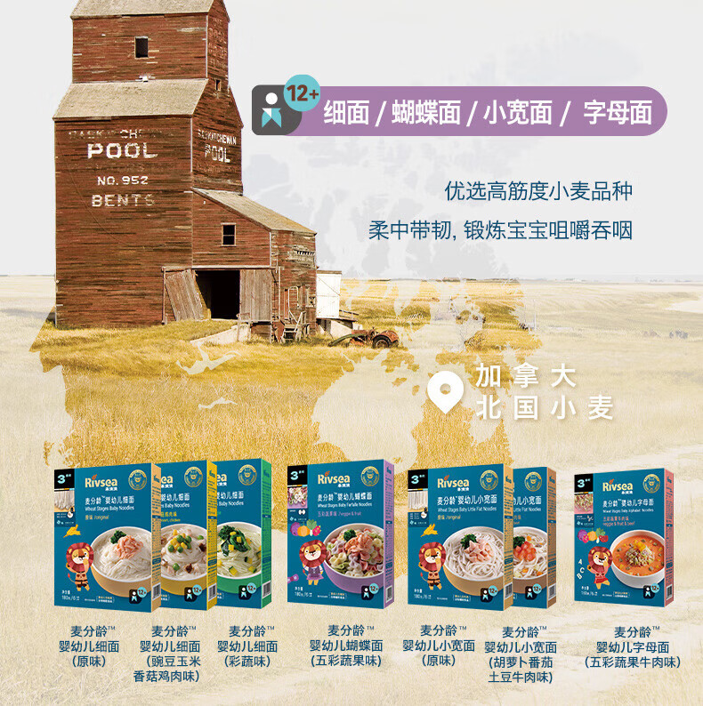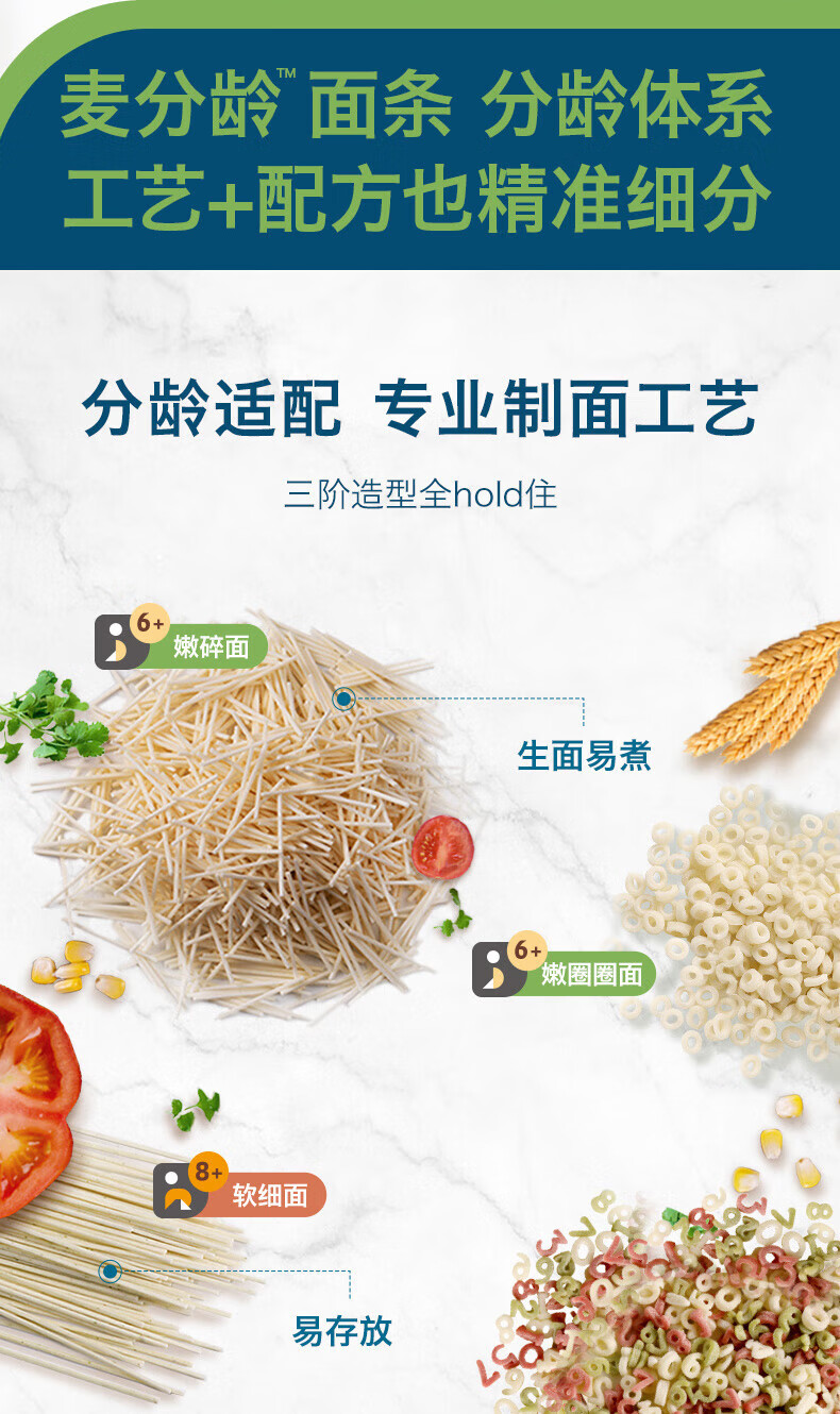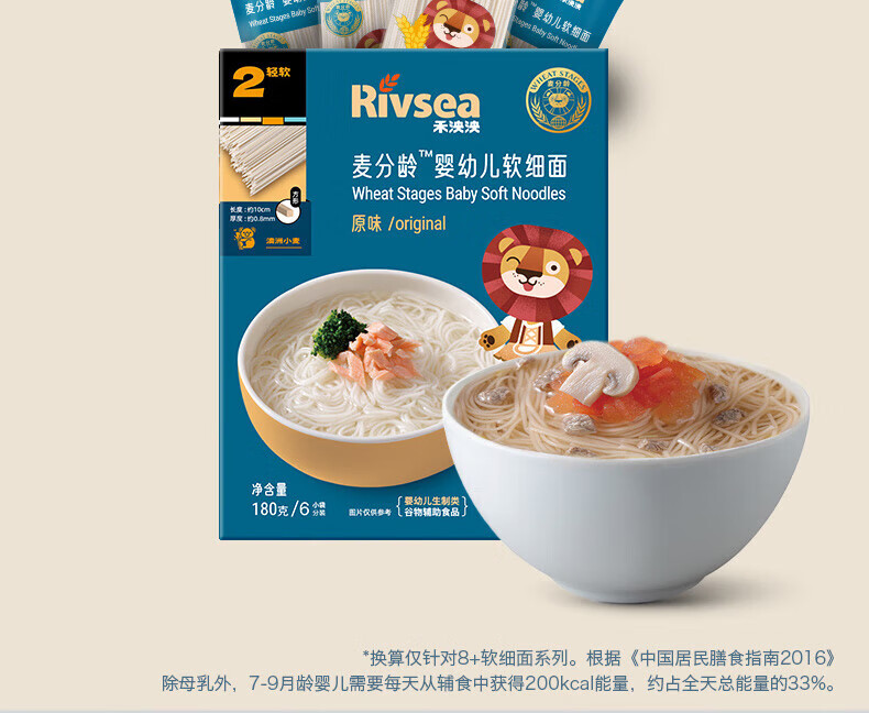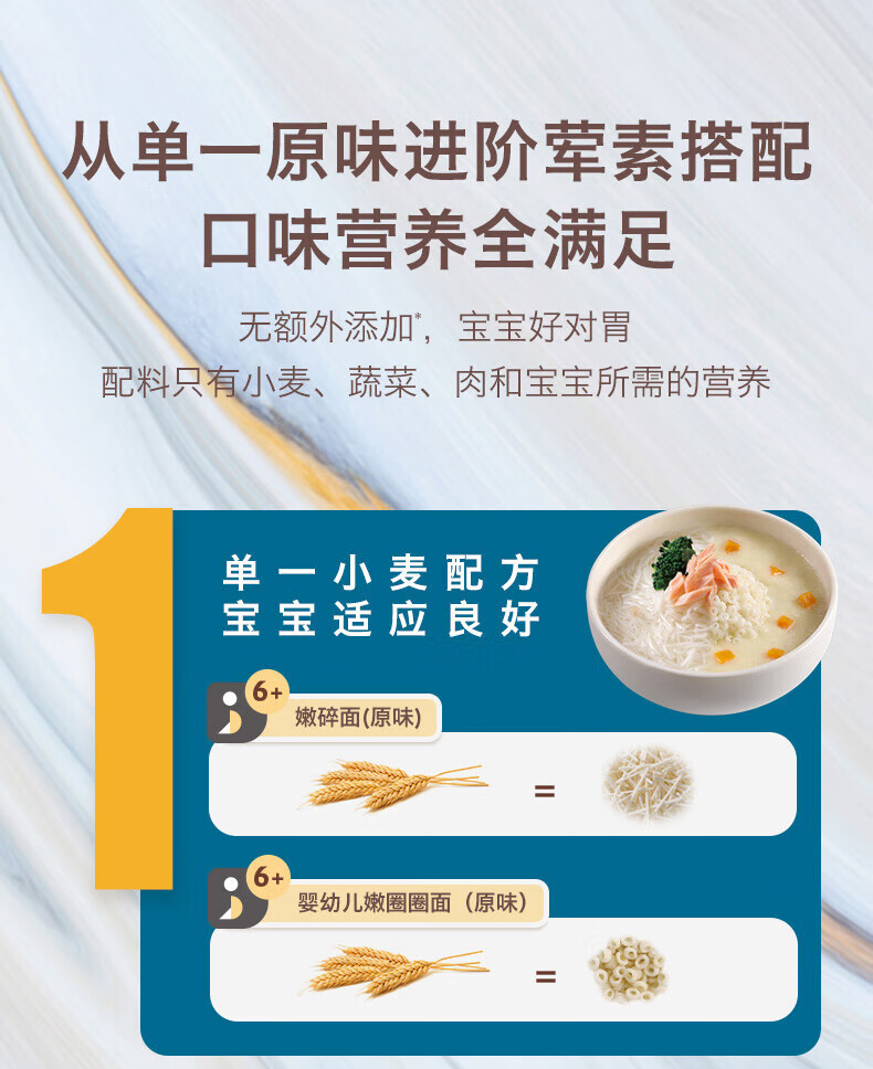 禾泱泱麦分龄婴幼儿面条 宝宝辅食 细面12个月以上 好咀嚼 原味180g