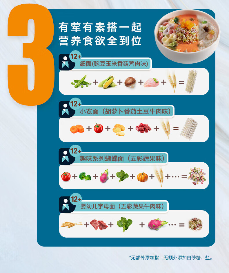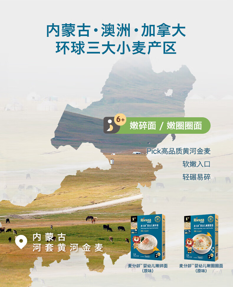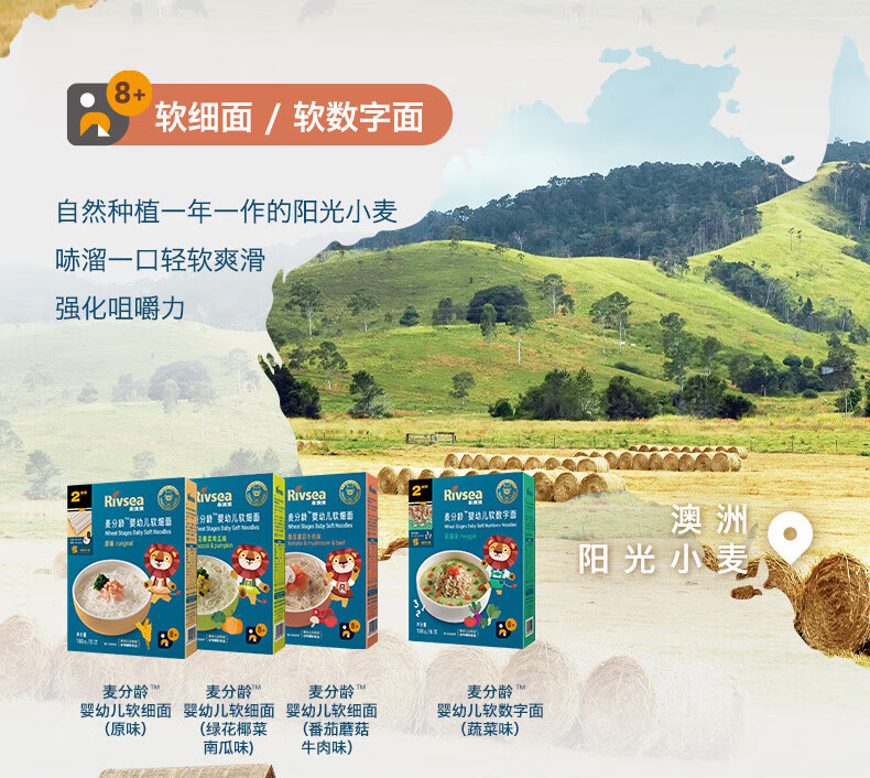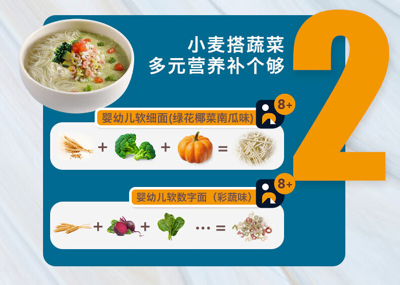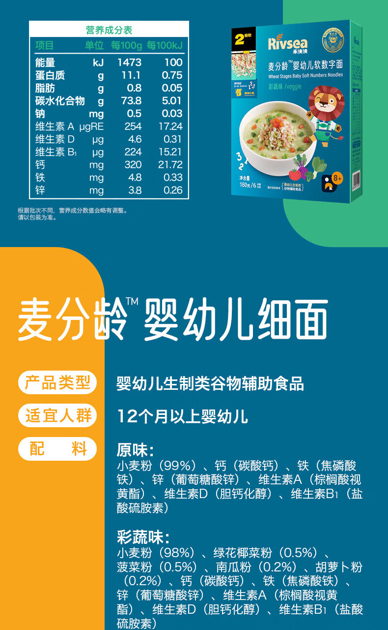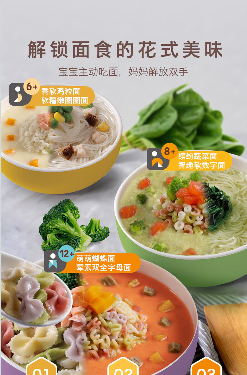 禾泱泱麦分龄婴幼儿面条 宝宝辅食 细面12个月以上 好咀嚼 原味180g