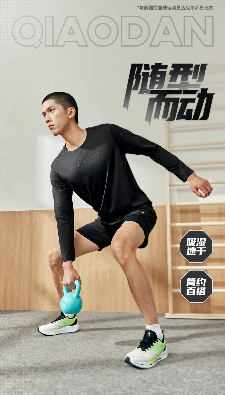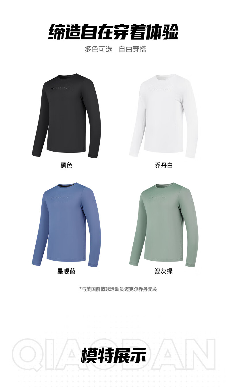 乔丹QIAODAN长袖t恤男秋季透气速干健身跑步专业运动服T恤上衣 乔丹白 S