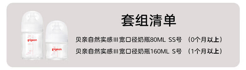 贝亲(Pigeon)新生儿玻璃奶瓶套装(80mlSS号奶嘴+160mlS号奶嘴 ) 0-3个月